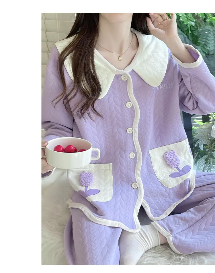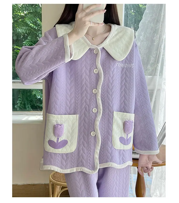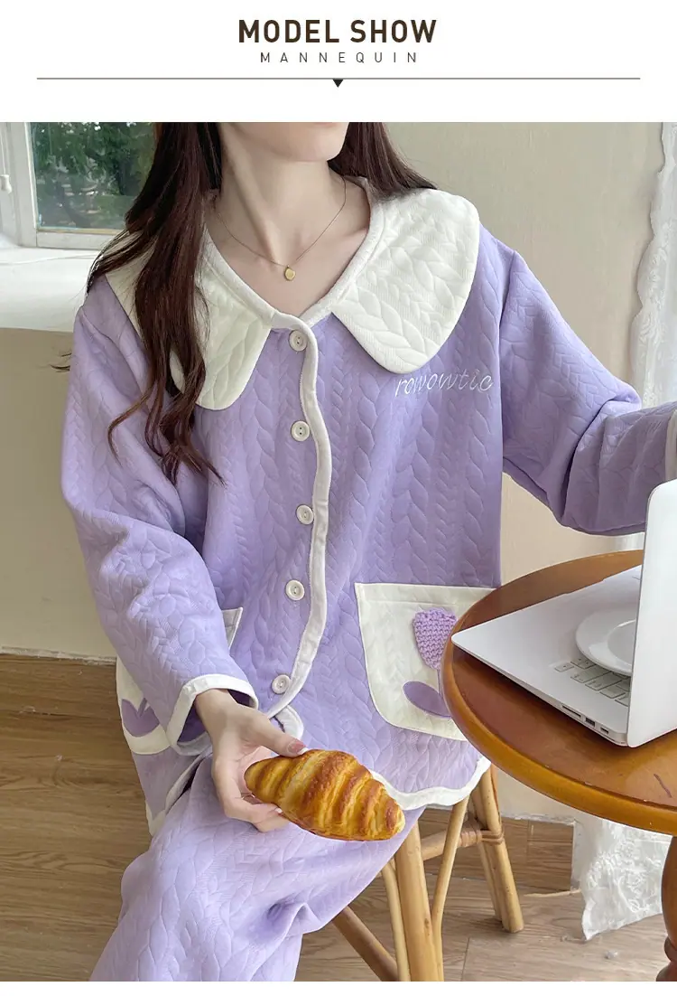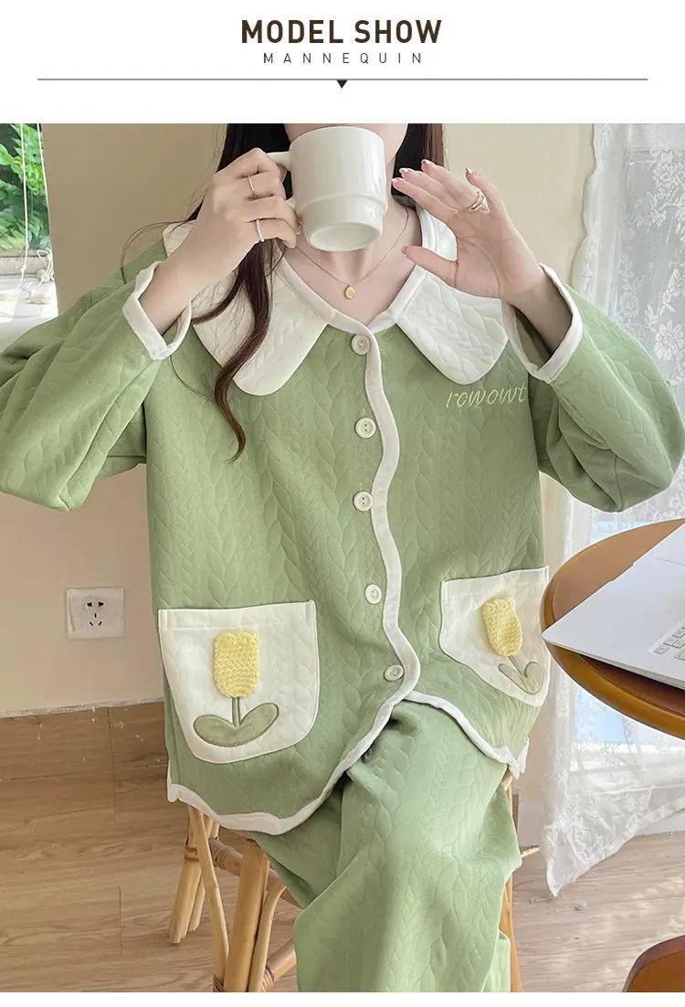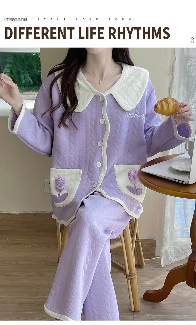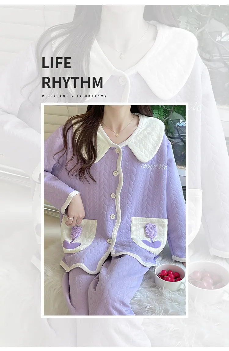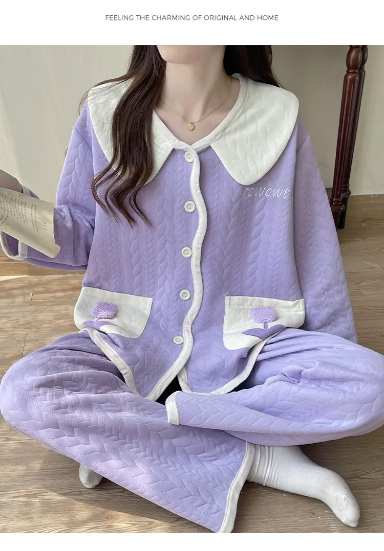 Nuevo pijama de otoño e invierno para mujer, de algodón estilo sándwich, grueso, de manga larga, estilo dulce, cálido, para el hogar, se puede usar al aire libre.