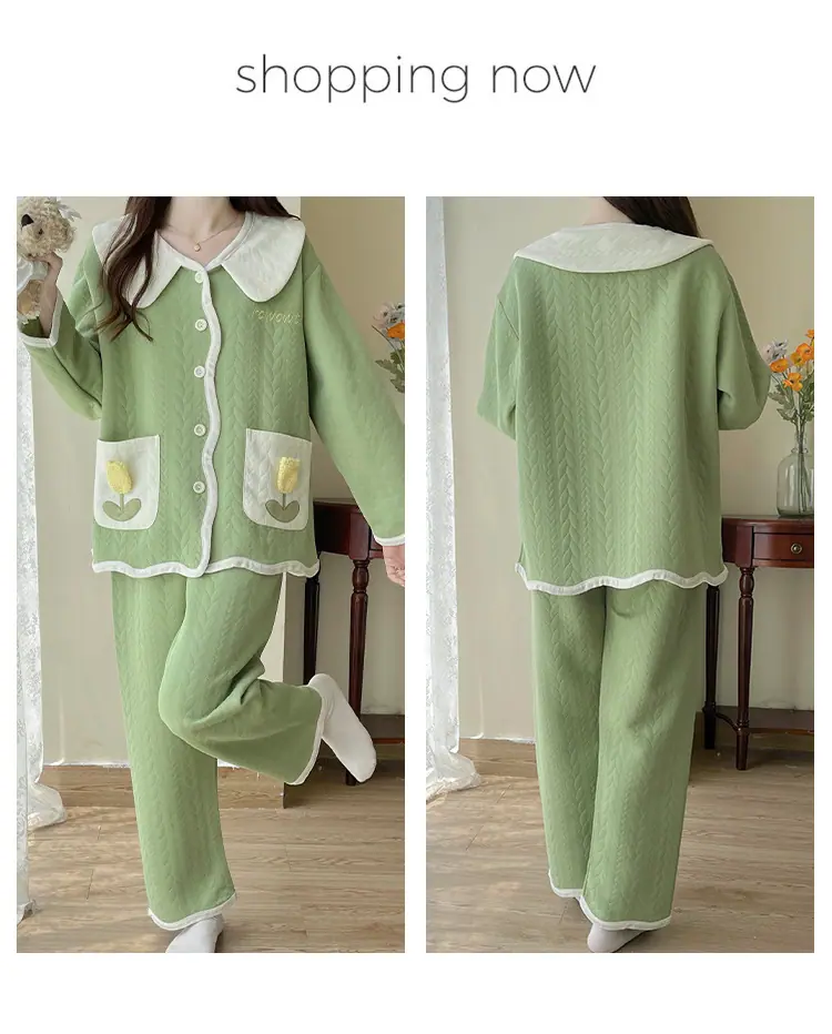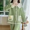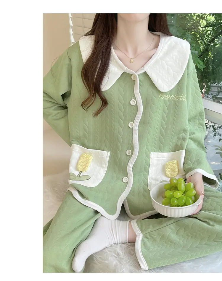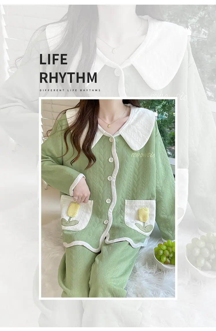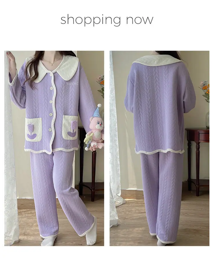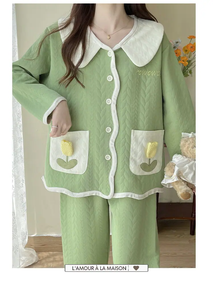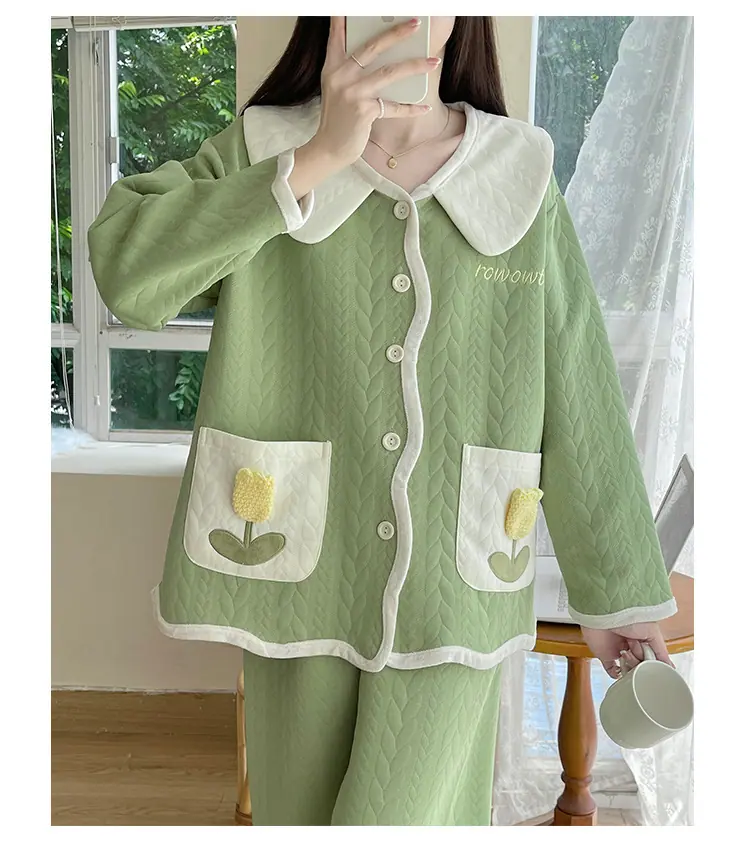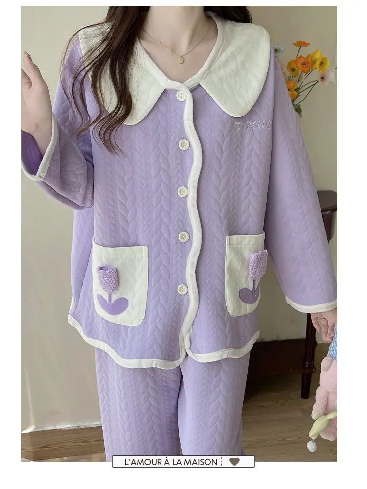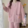 Nuevo pijama de otoño e invierno para mujer, de algodón estilo sándwich, grueso, de manga larga, estilo dulce, cálido, para el hogar, se puede usar al aire libre.
