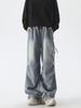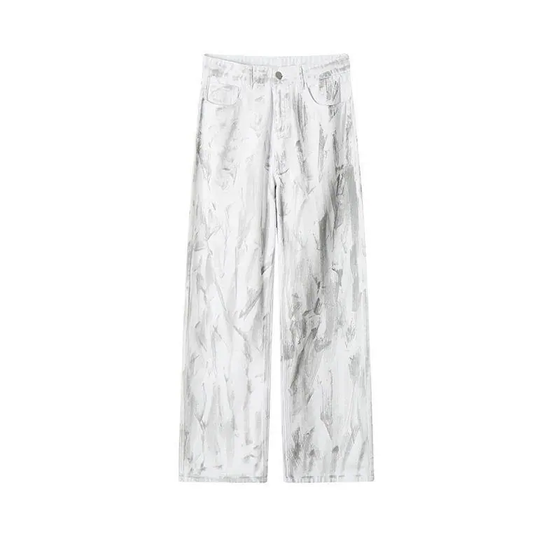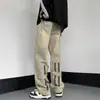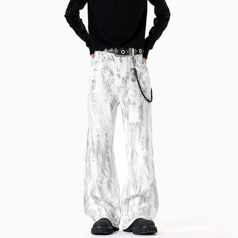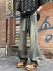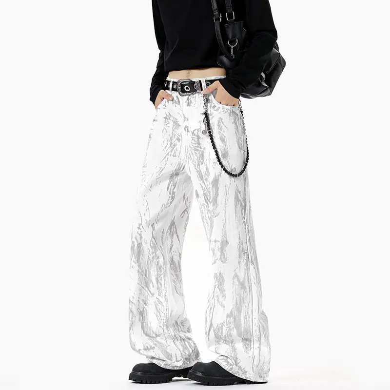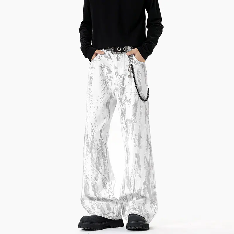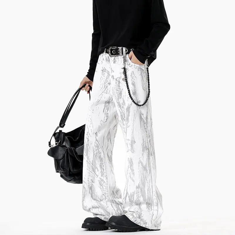 Diseño retro americano jeans blancos tie-dye hombres marca de moda pícaro guapo callejero suelto pierna recta pierna ancha pantalones largos