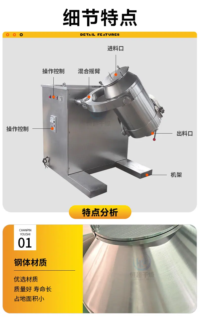Mezclador Vertical de Productos de Soya Mezclador Tridimensional de Glucosa Mezclador de Movimiento Tridimensional de Resina Fenólica