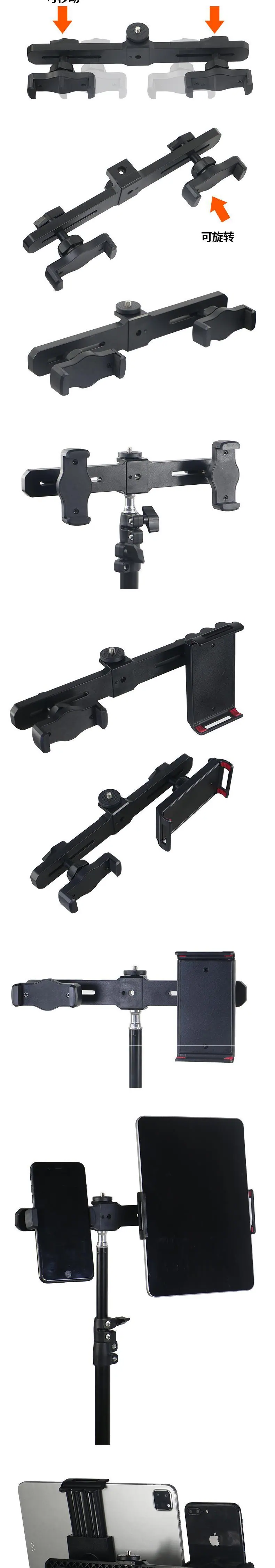 Soporte de Transmisión en Vivo Barra Transversal de Doble Cámara Dos Teléfonos Móviles Adecuado para iPad Tablet Clip Ángulo Ajustable Trípode Selfie