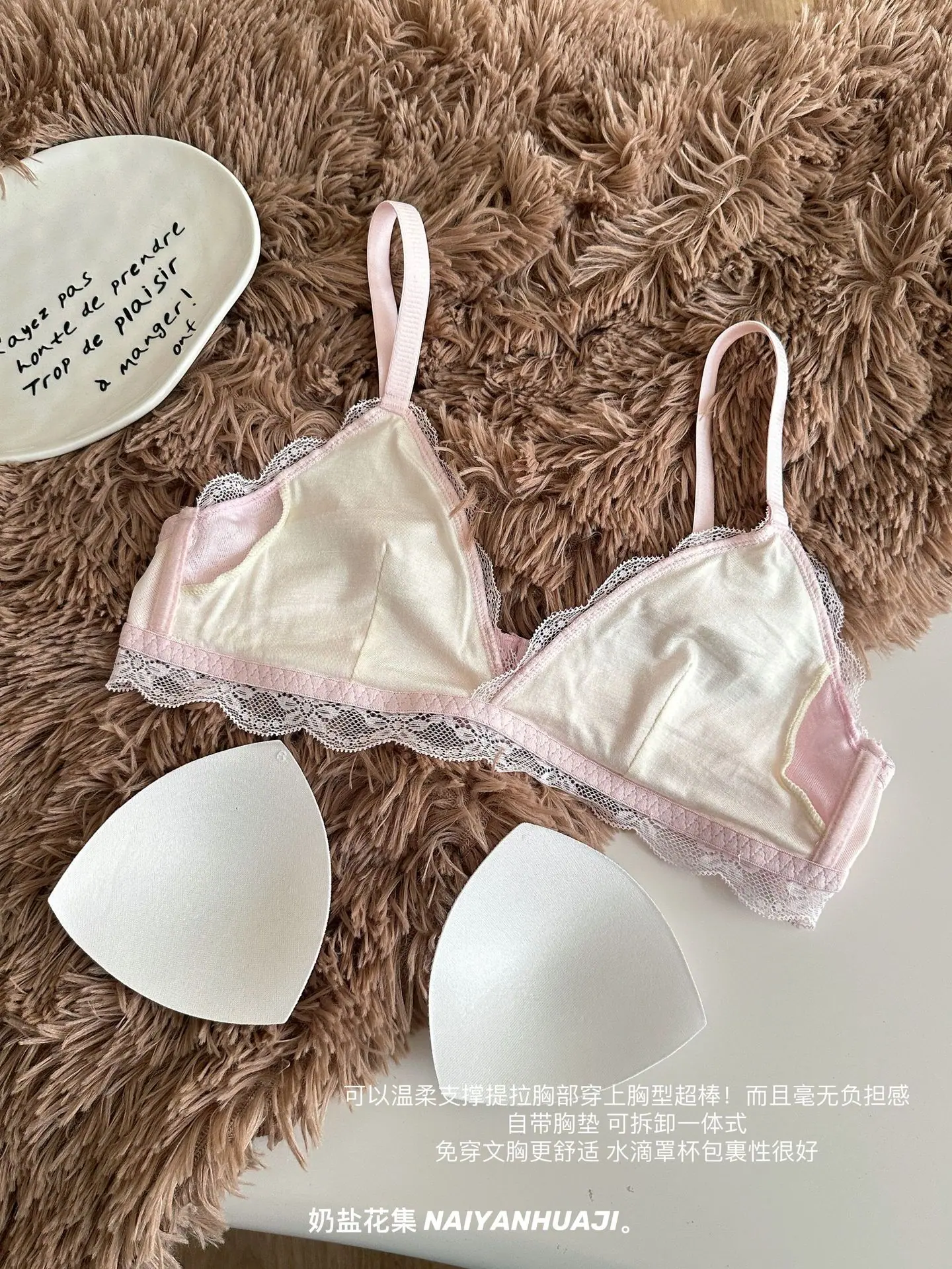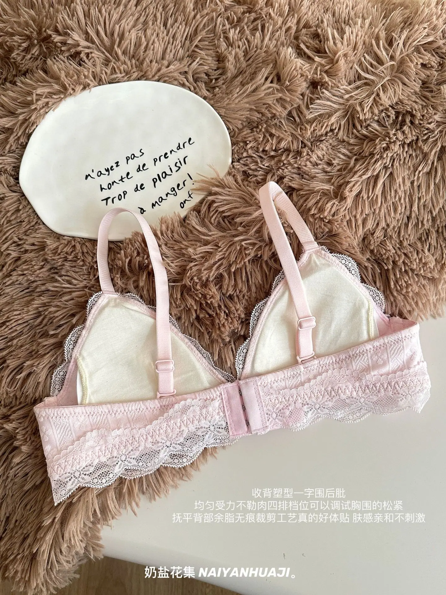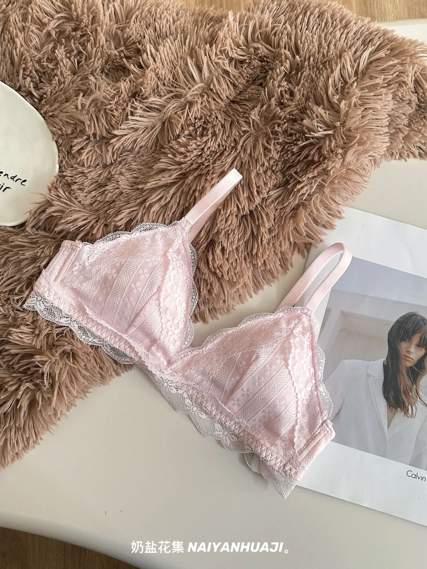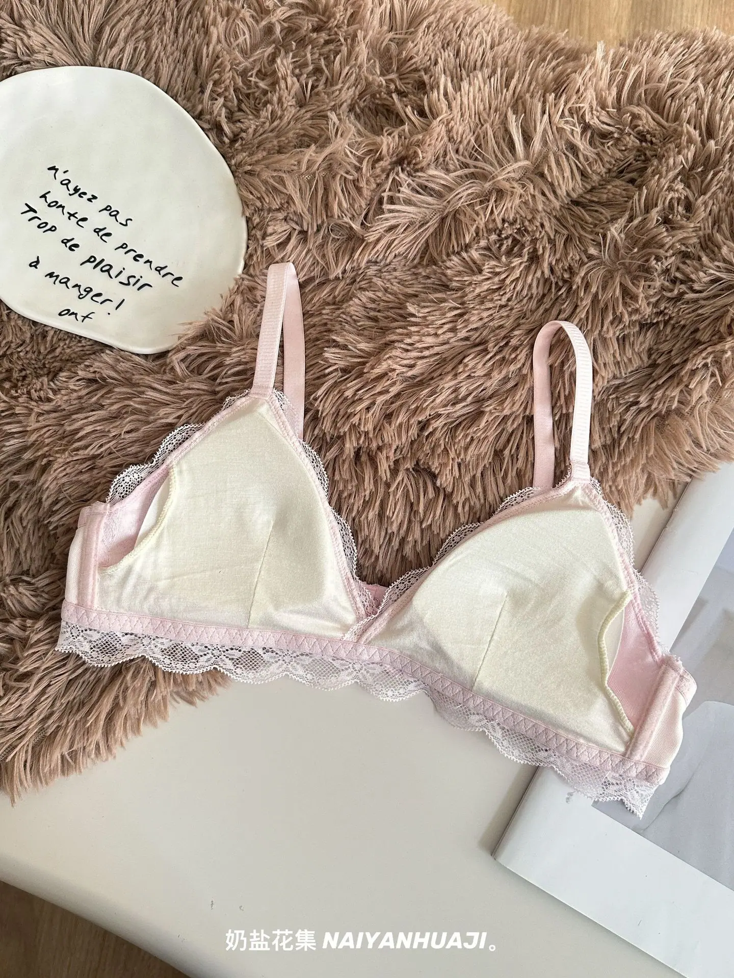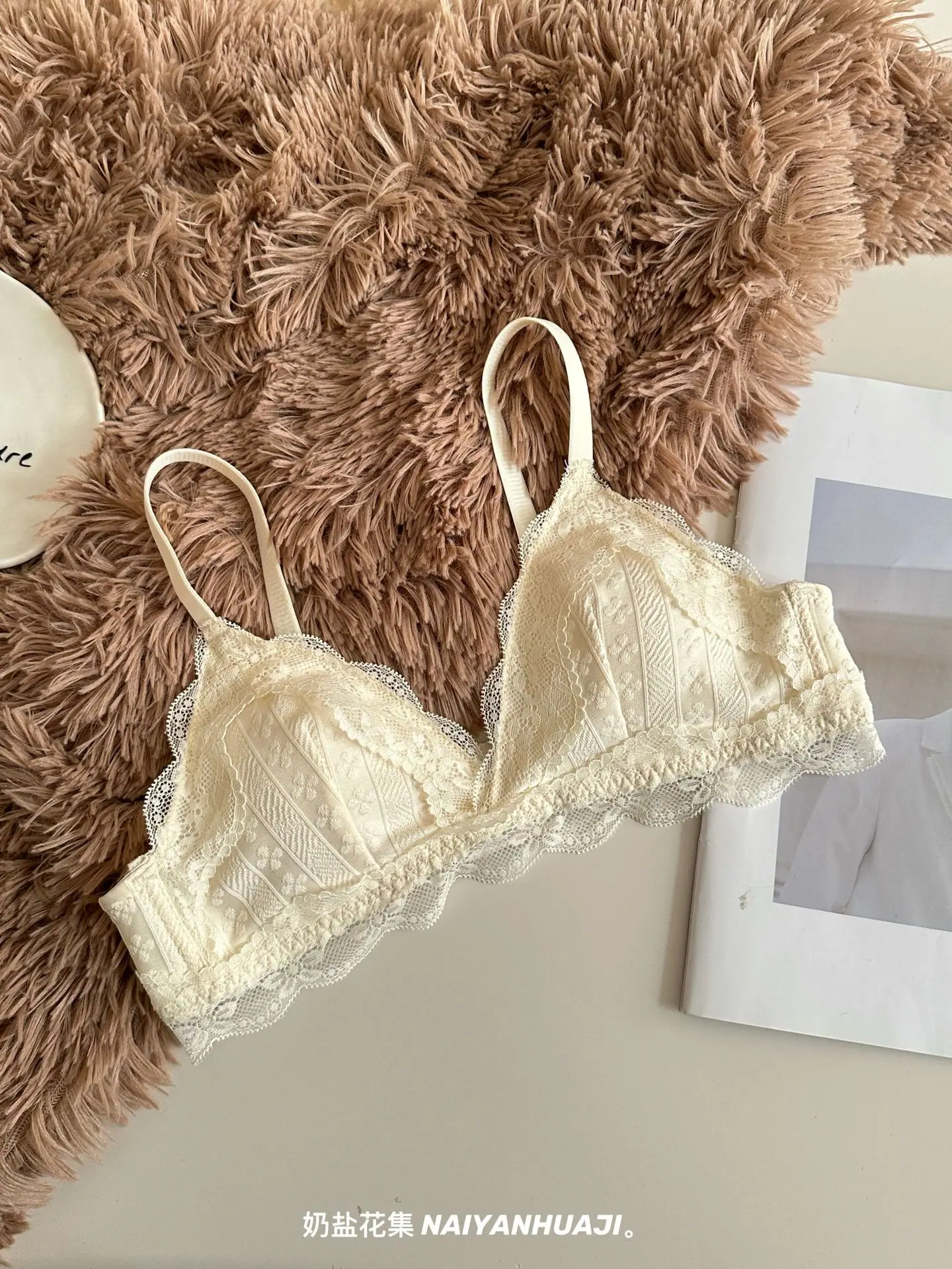 Compra Lencería de Encaje Francés Mujer Pecho Pequeño Push Up Inalámbrico Soporte Lateral Anticaída Cómodo Copa Triangular Fina al por mayor en Joom.pro