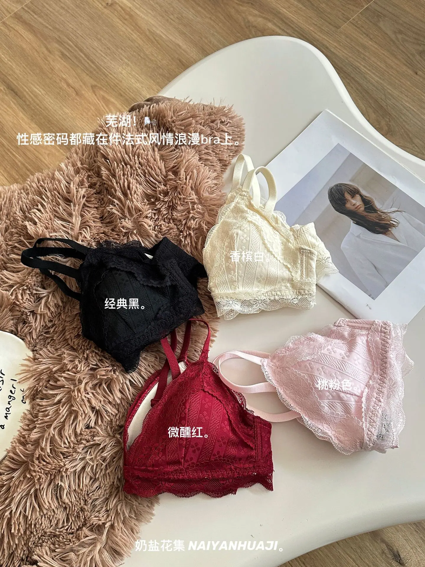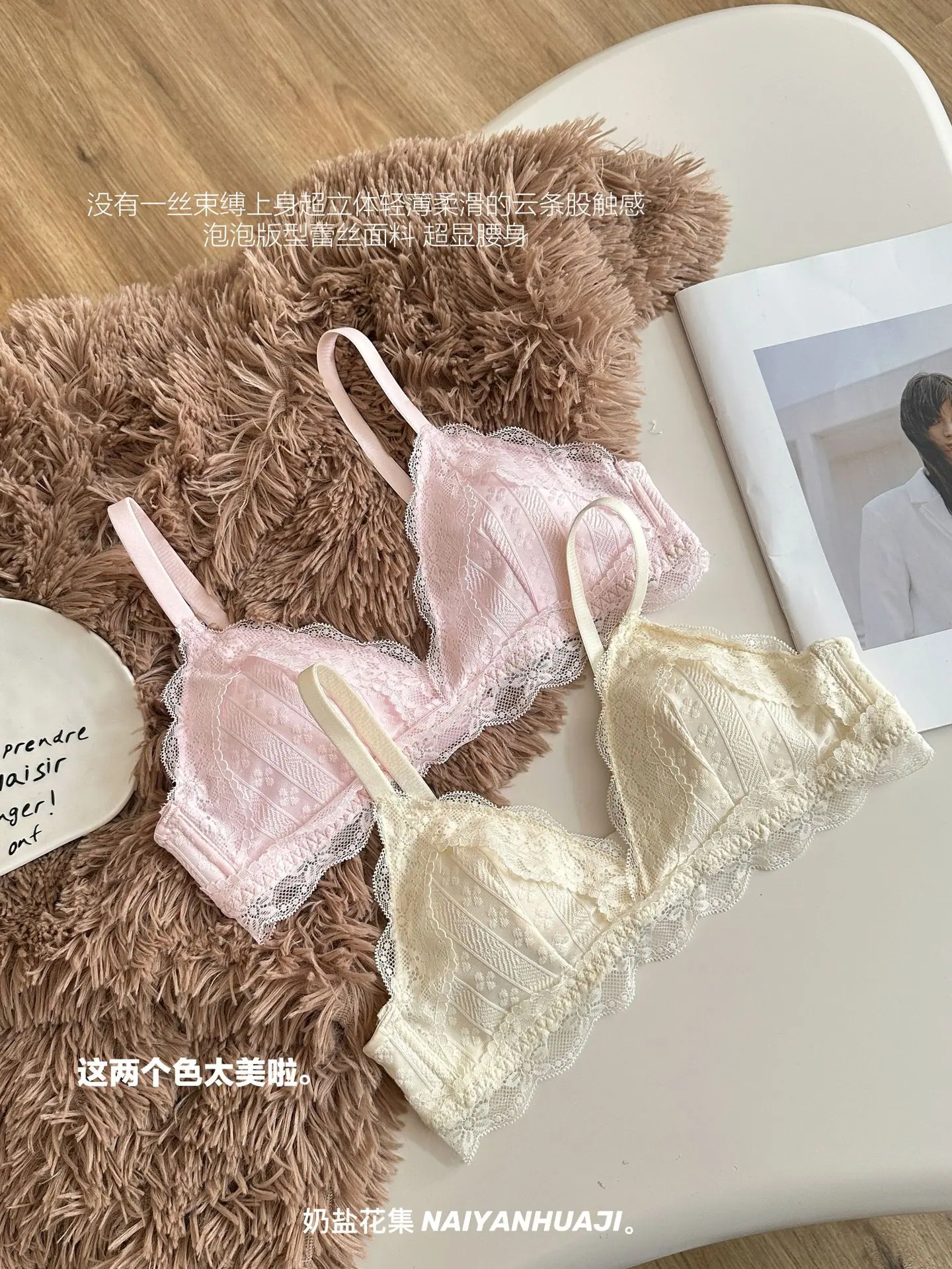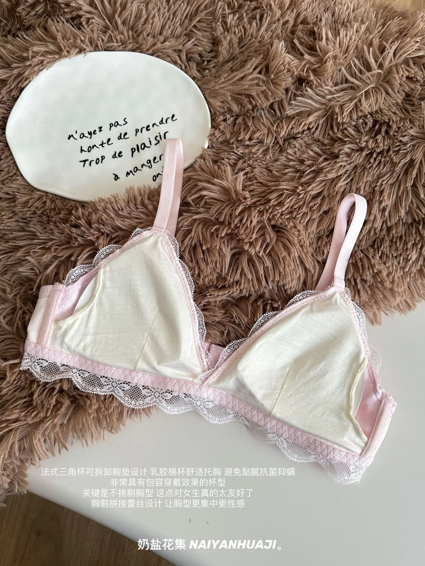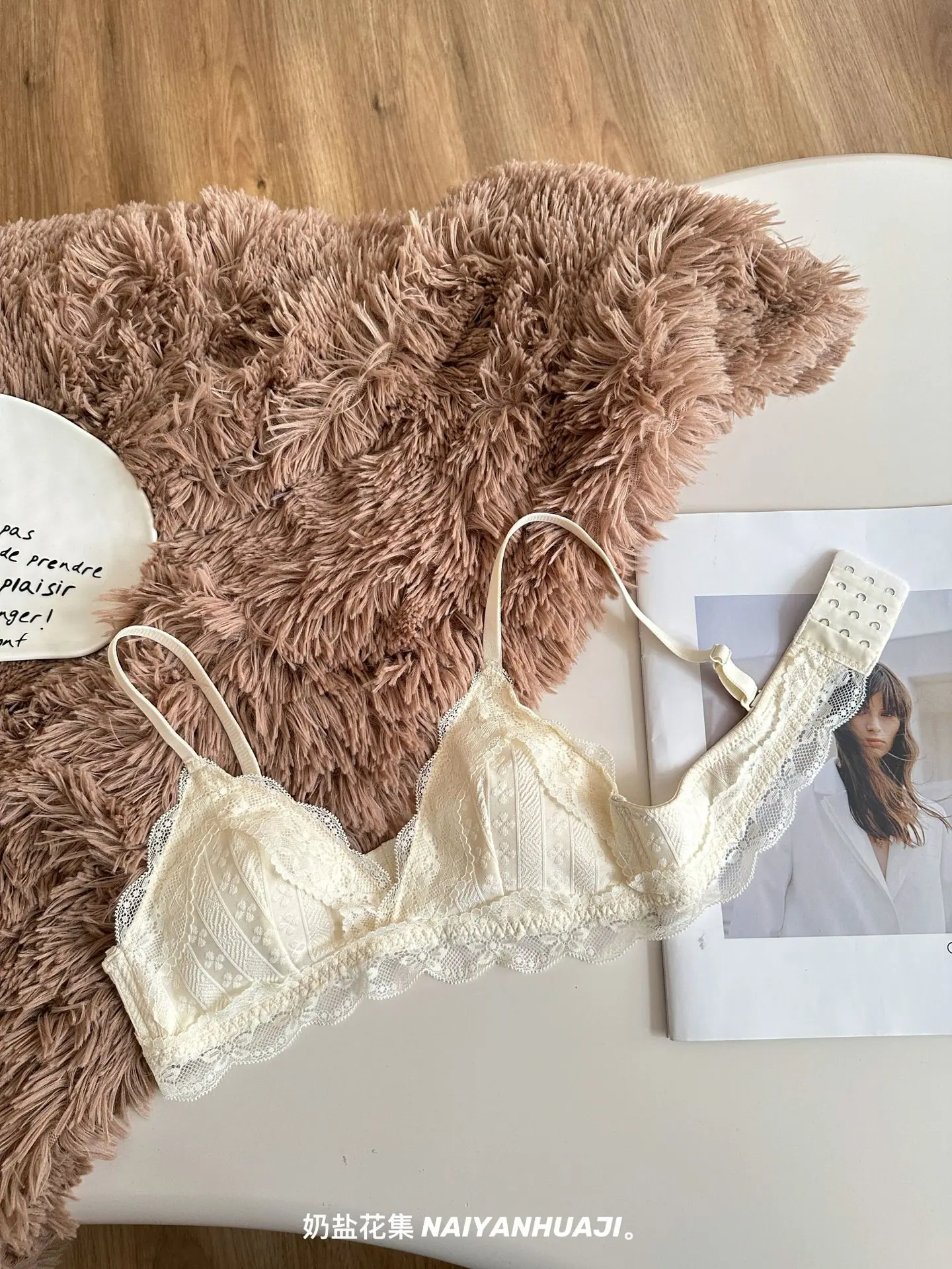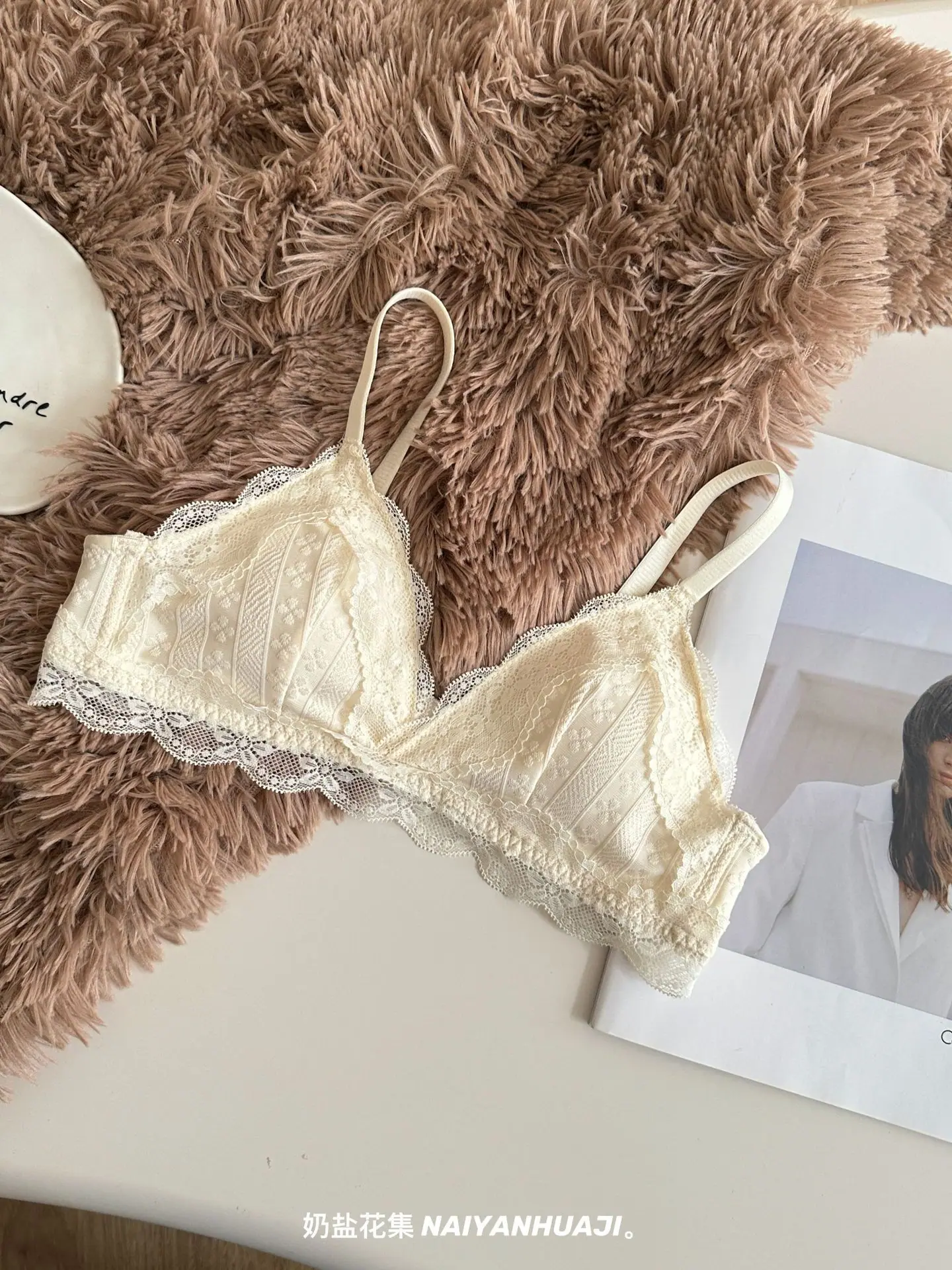 Compra Lencería de Encaje Francés Mujer Pecho Pequeño Push Up Inalámbrico Soporte Lateral Anticaída Cómodo Copa Triangular Fina al por mayor en Joom.pro