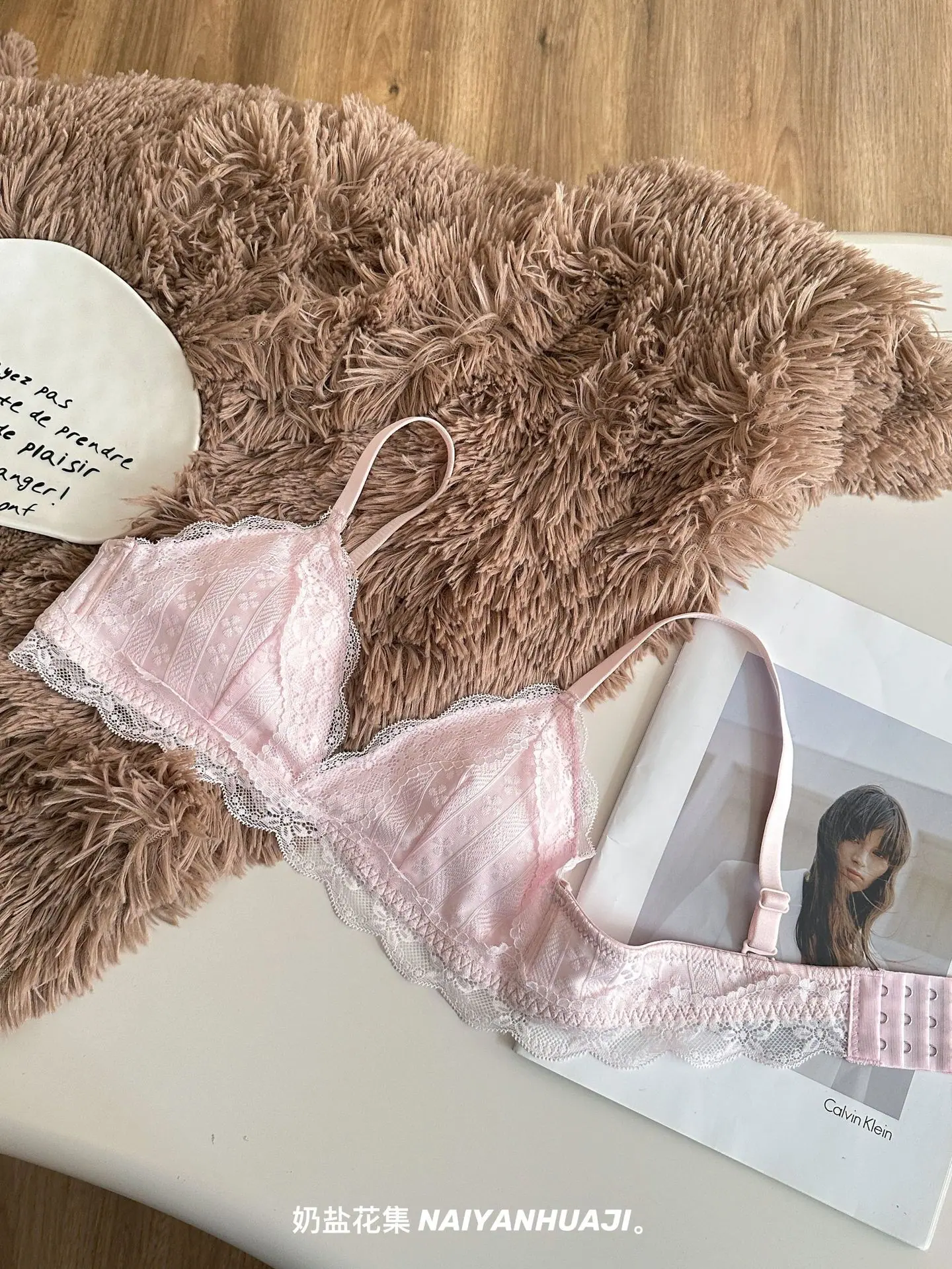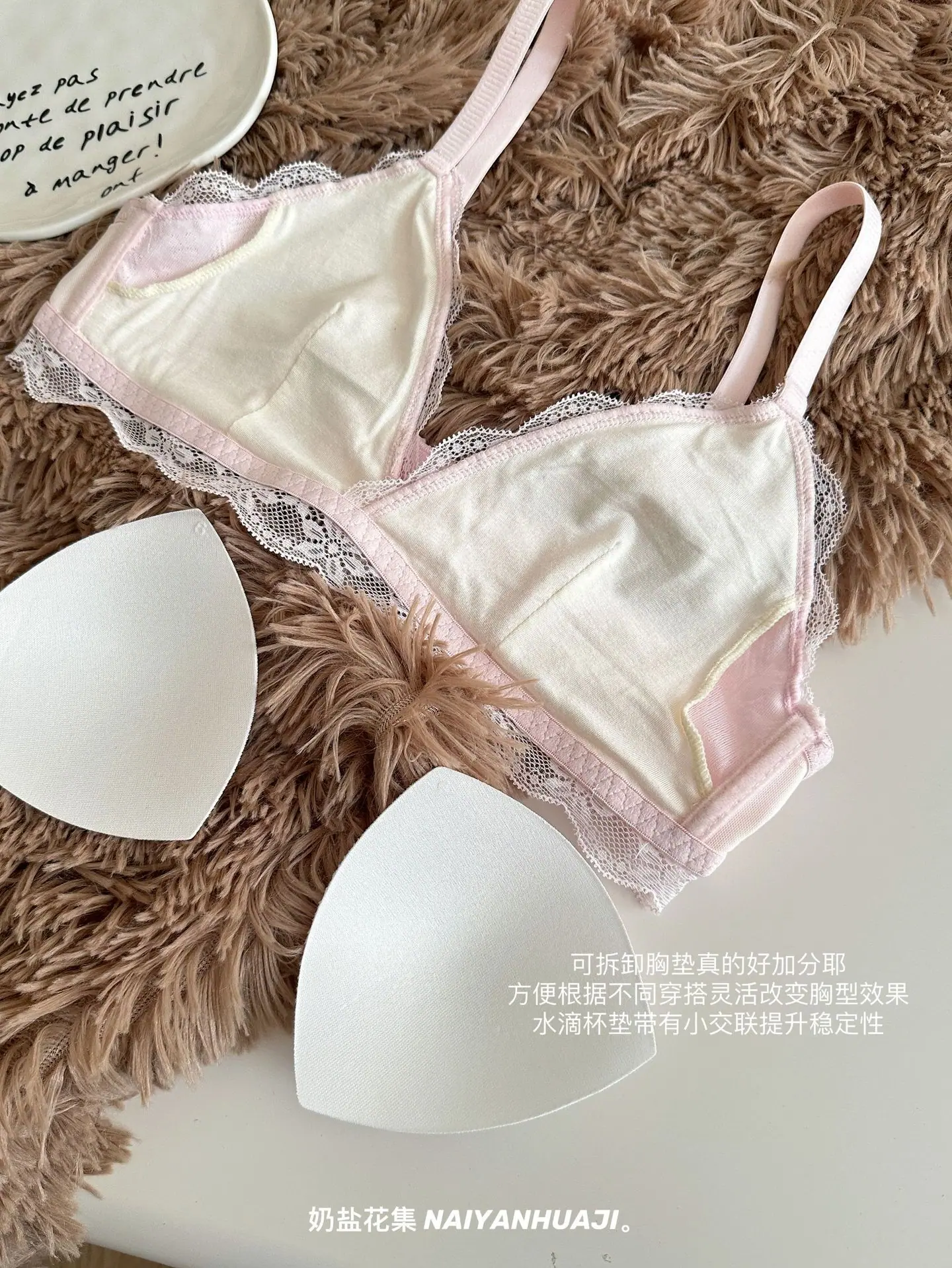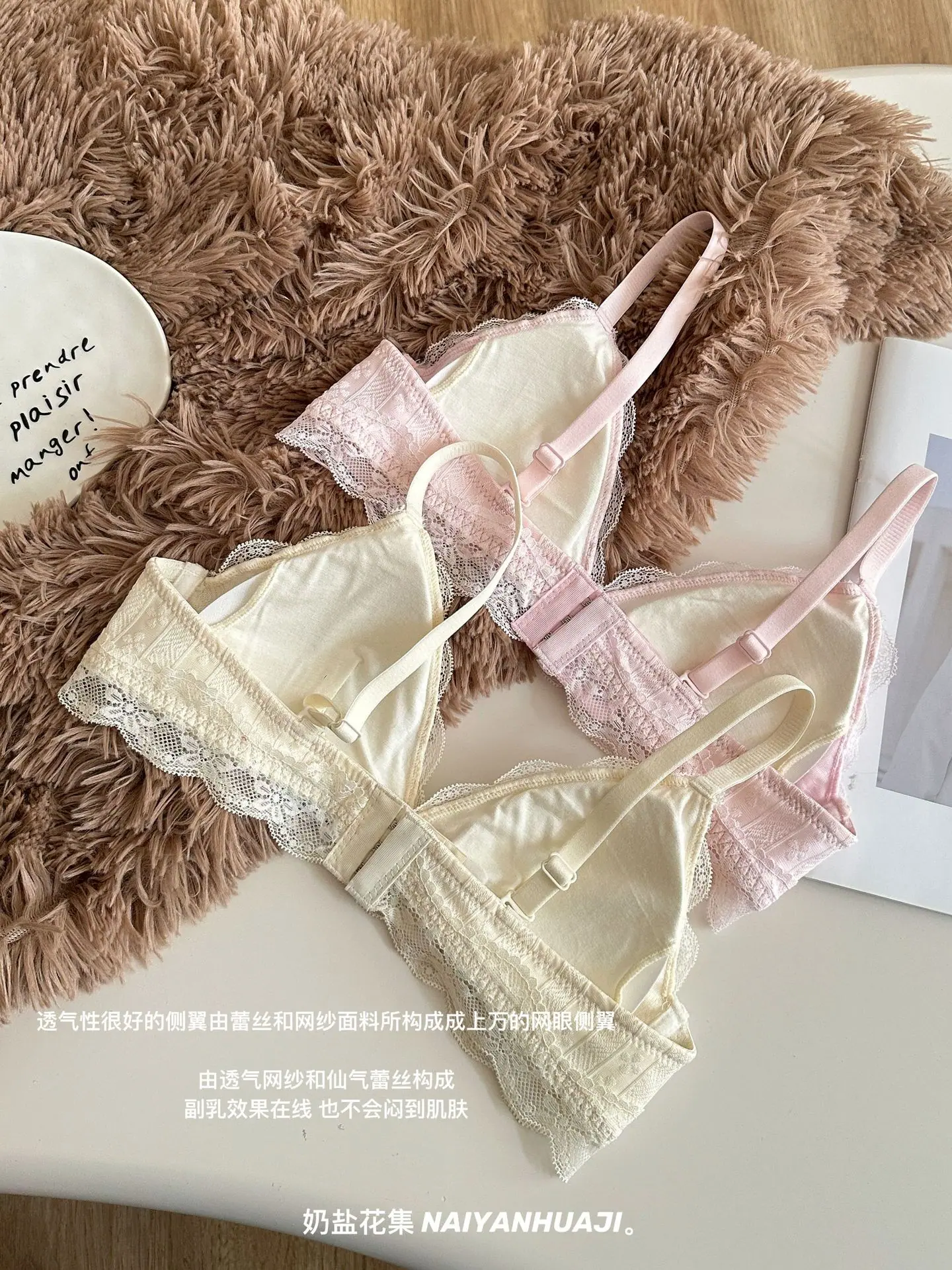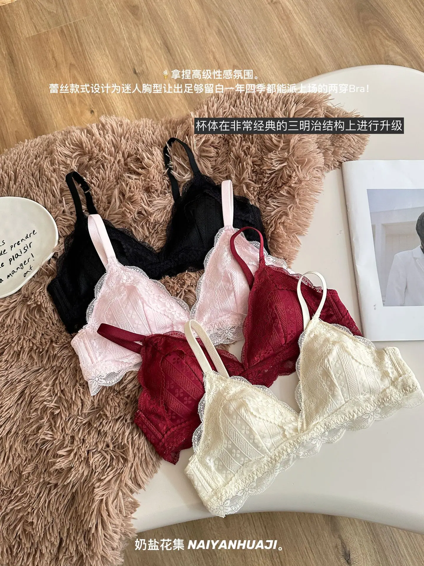 Compra Lencería de Encaje Francés Mujer Pecho Pequeño Push Up Inalámbrico Soporte Lateral Anticaída Cómodo Copa Triangular Fina al por mayor en Joom.pro