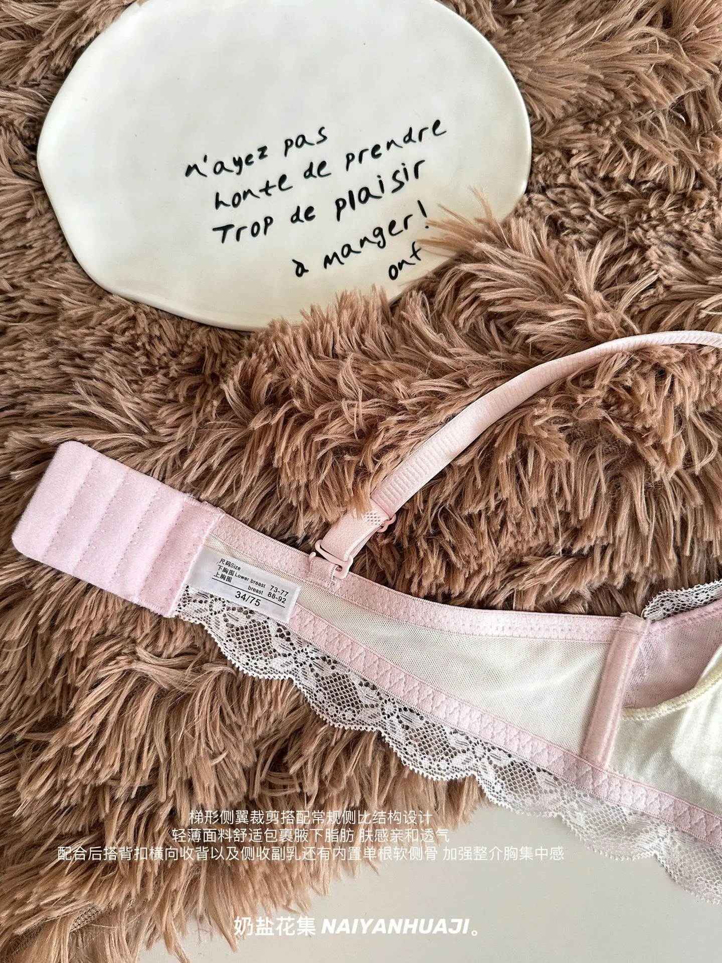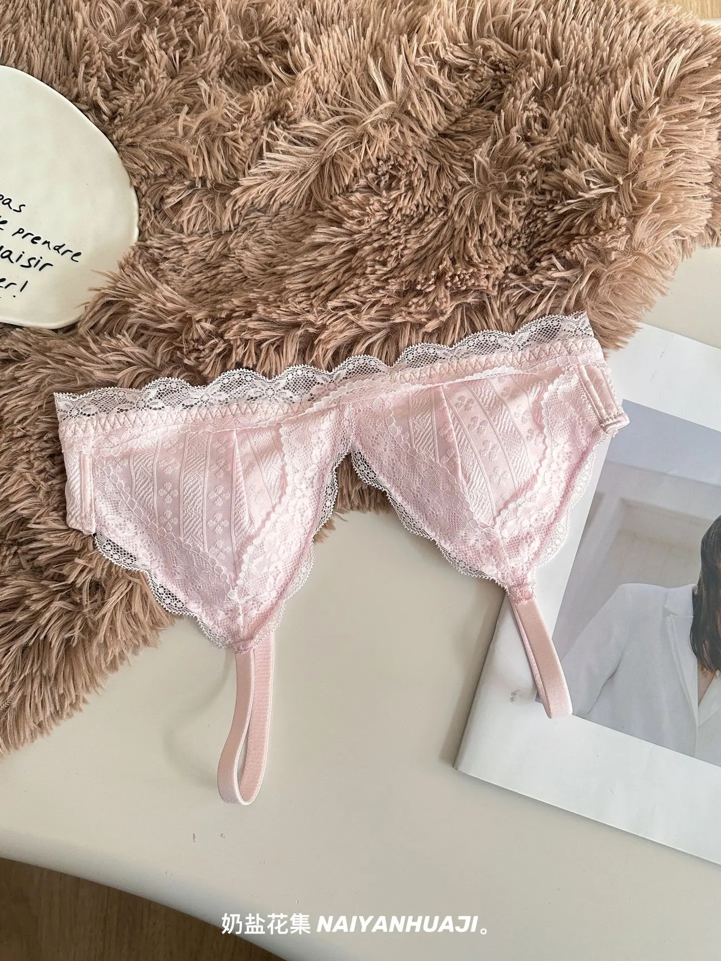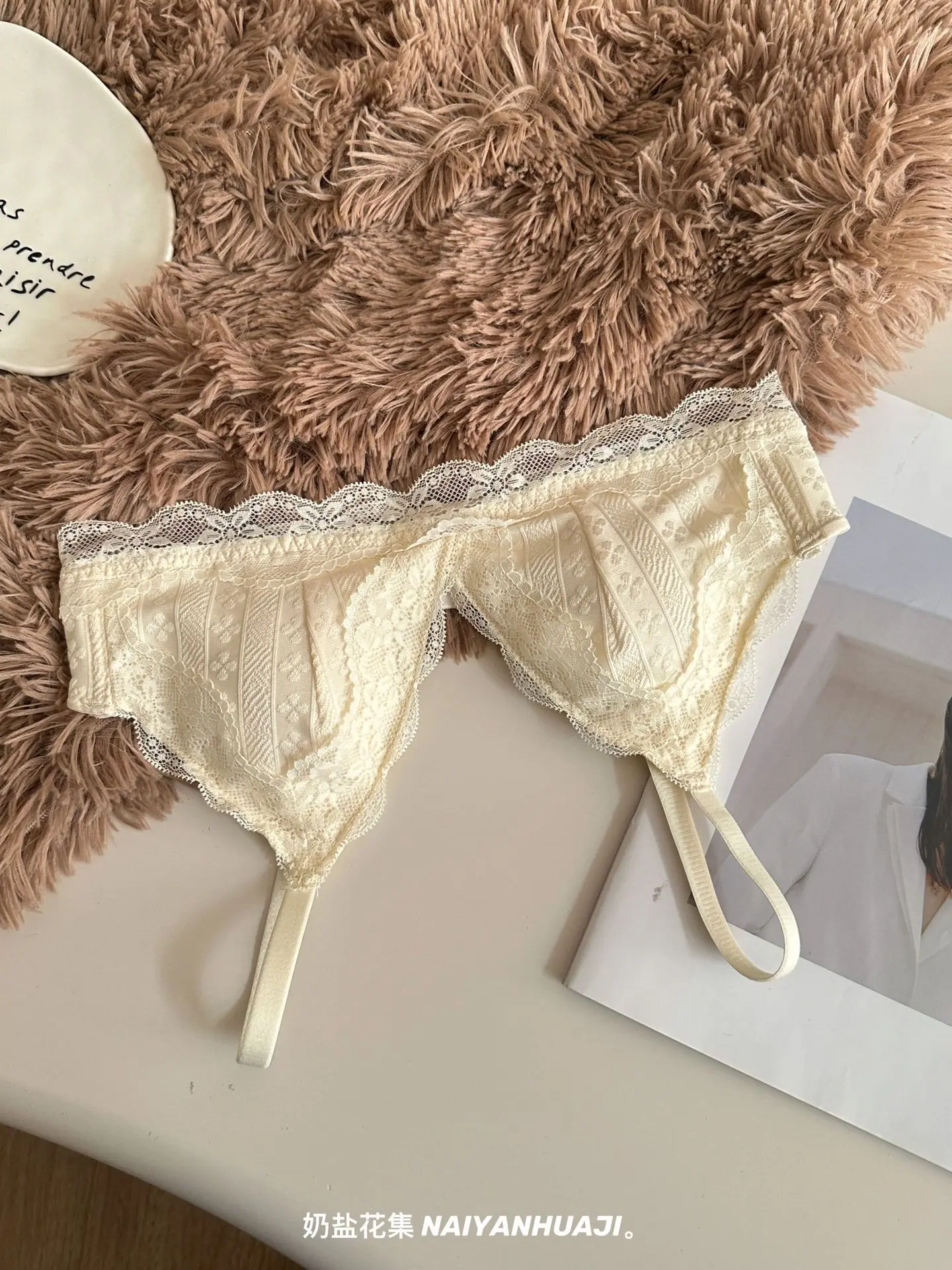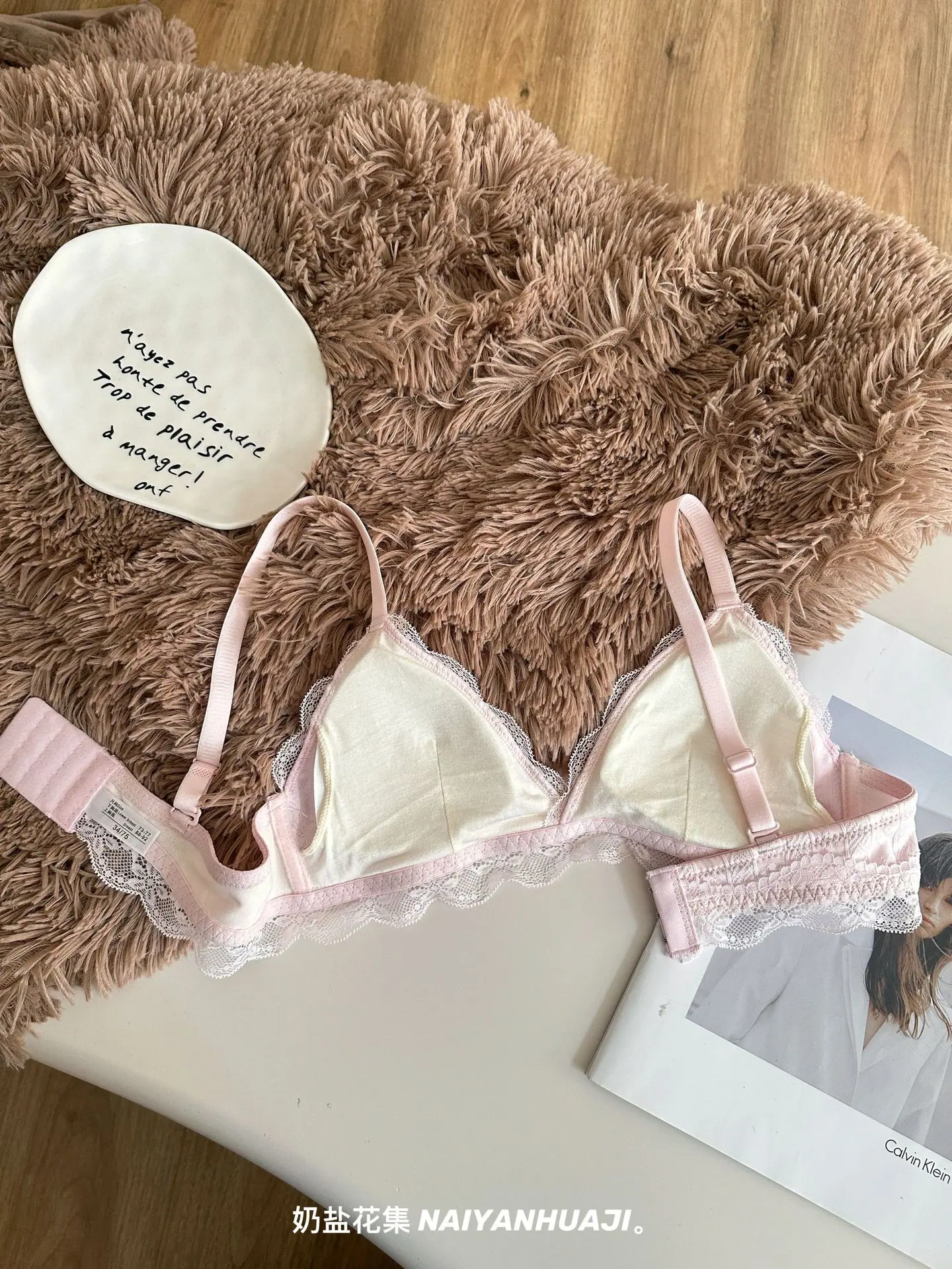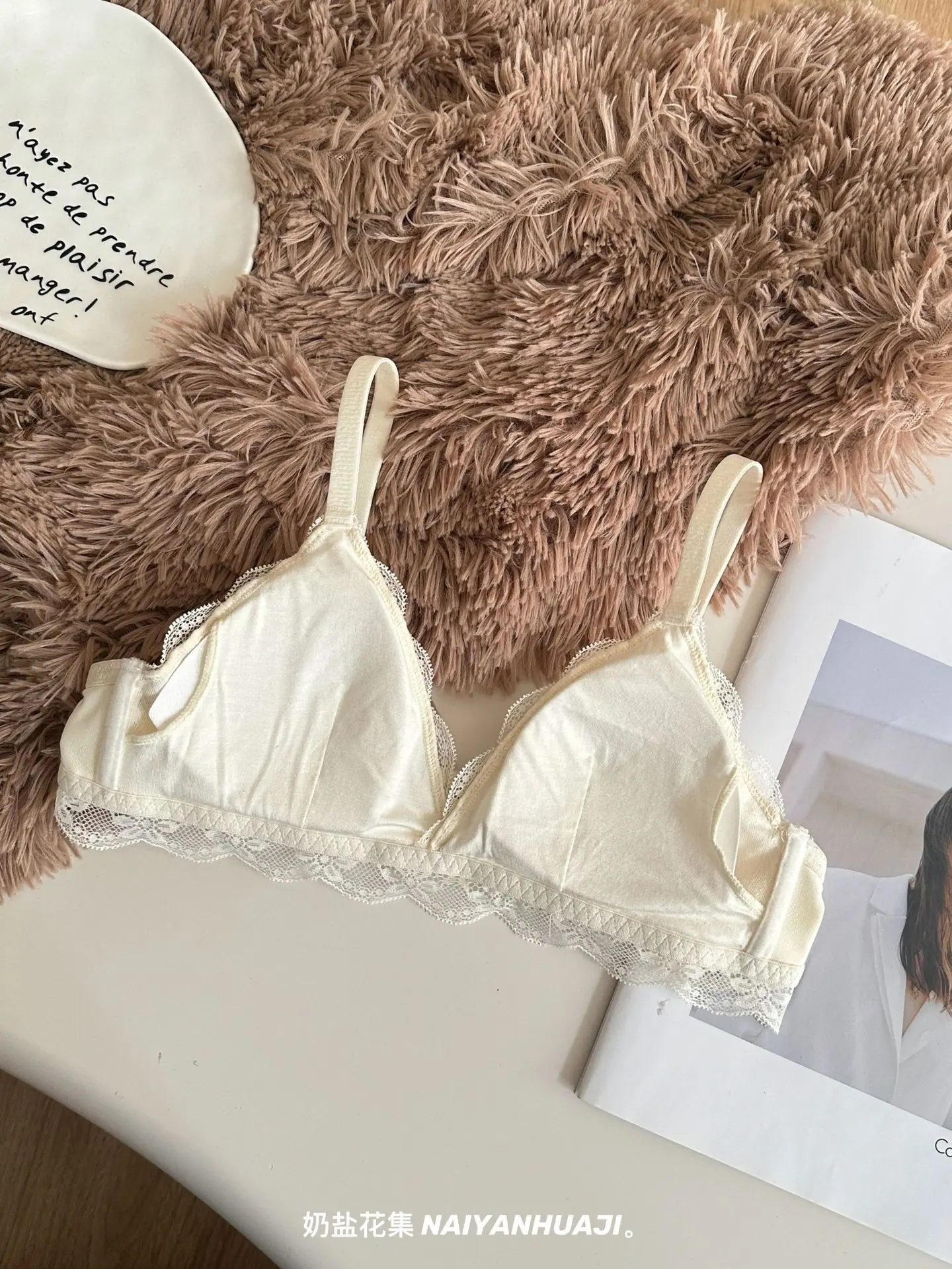 Compra Lencería de Encaje Francés Mujer Pecho Pequeño Push Up Inalámbrico Soporte Lateral Anticaída Cómodo Copa Triangular Fina al por mayor en Joom.pro