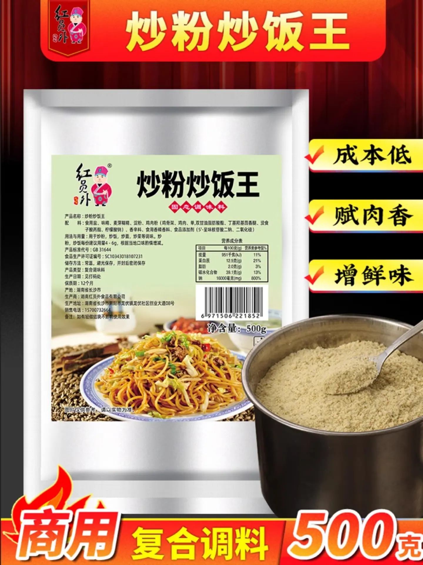 Condimento para Arroz Frito Yuan Rojo Ingredientes Comerciales Guangdong Fideos de Arroz Frito a la Plancha de Hierro Condimento para Fideos de Arroz Empaque