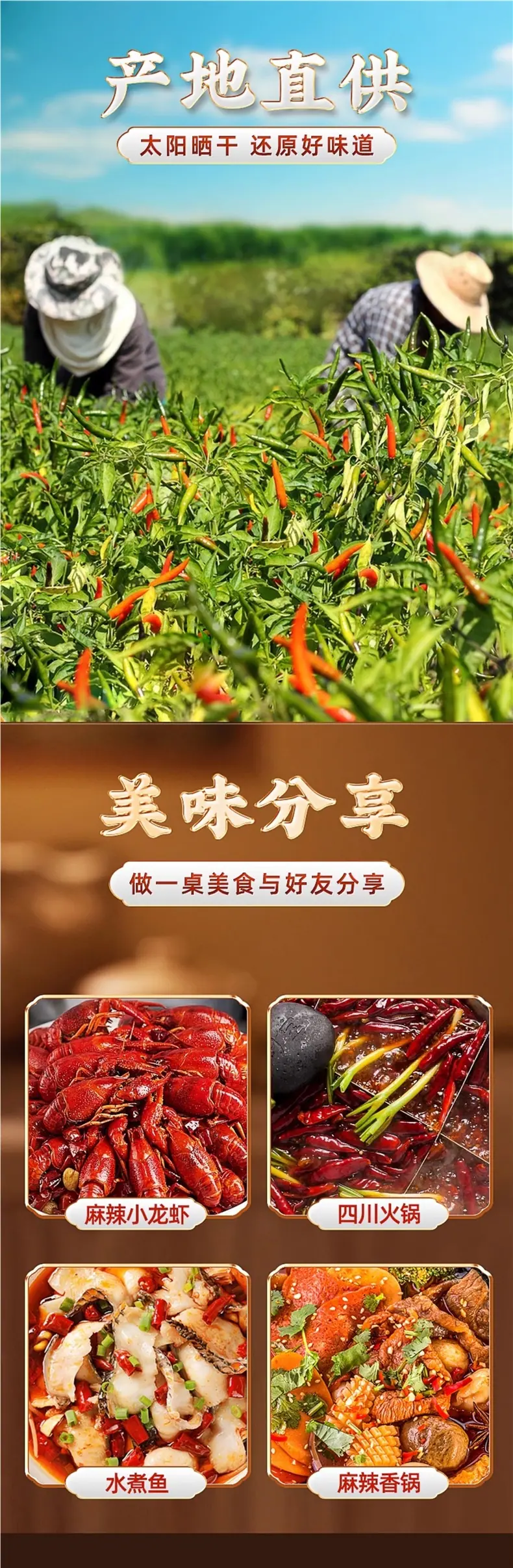 Chile Seco 500g Cosecha Nueva Ligeramente Picante Extra Fragante Especialidad de Granja de Sichuan para el Hogar Chile Seco en Polvo Hojuelas de Chile