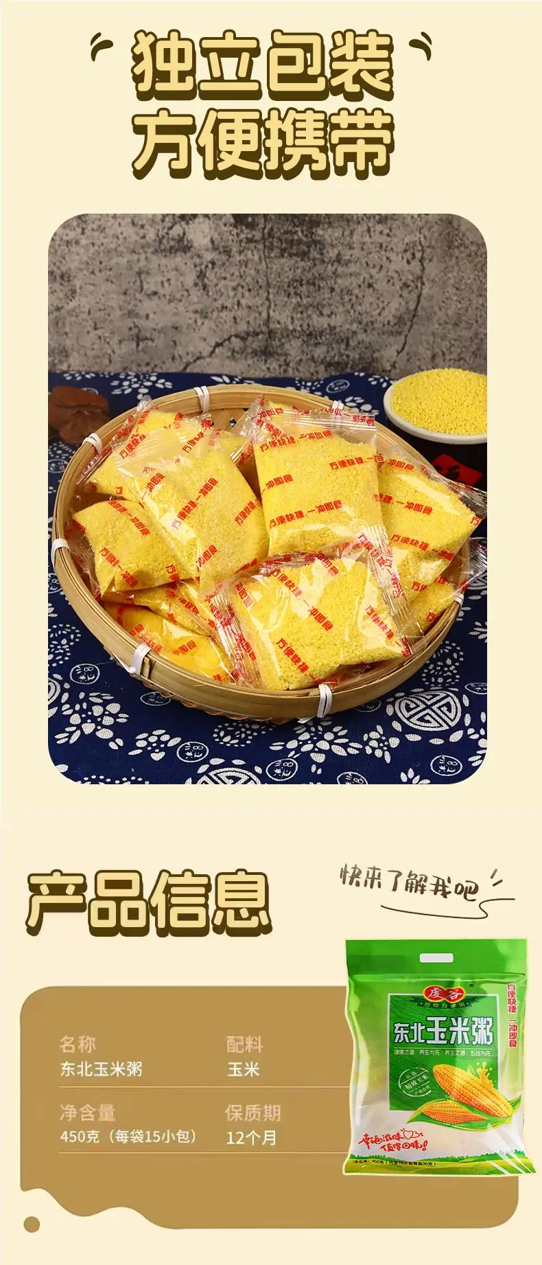 【Tmall】Pure Corn Cereal 450g*1 bag (contains 15 sachets)