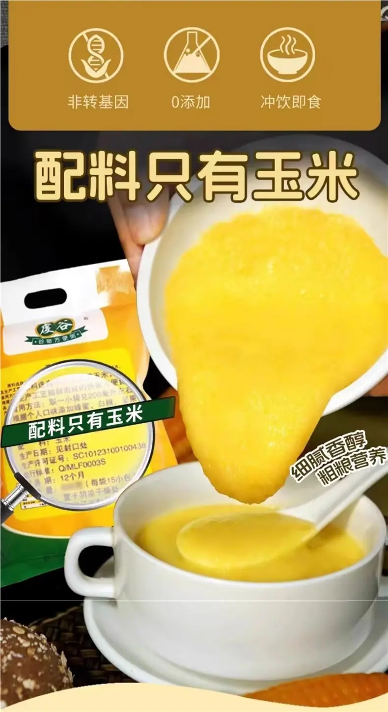 Noreste Pasta Pura de Maíz Bebida Instantánea Lista para Comer Gachas de Maíz Desayuno Sin Azúcar Gachas Instantáneas Bajo Reemplazo de Comida Grasa Granos Gruesos Comida Nutricional