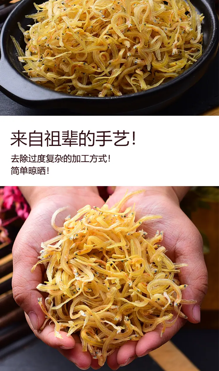 Hermosa Tienda de Mariscos Boquerones Blancos Secos 250g/bolsa También conocidos como Pescado Fideo Snacks de Pescaditos Secos