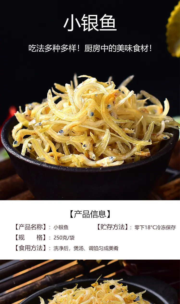 Whitebait 250g*1 bag(250g), Whitebait 250 grams*2 bags(500g), Whitebait 250g*3 bags(750g), Small Silver Fish 250g*5 bags (1.25kg)
