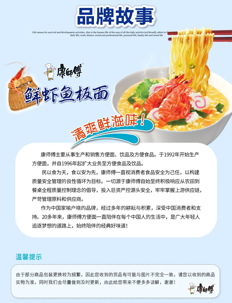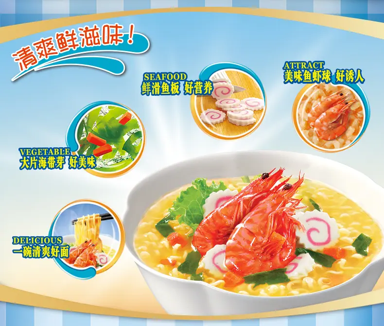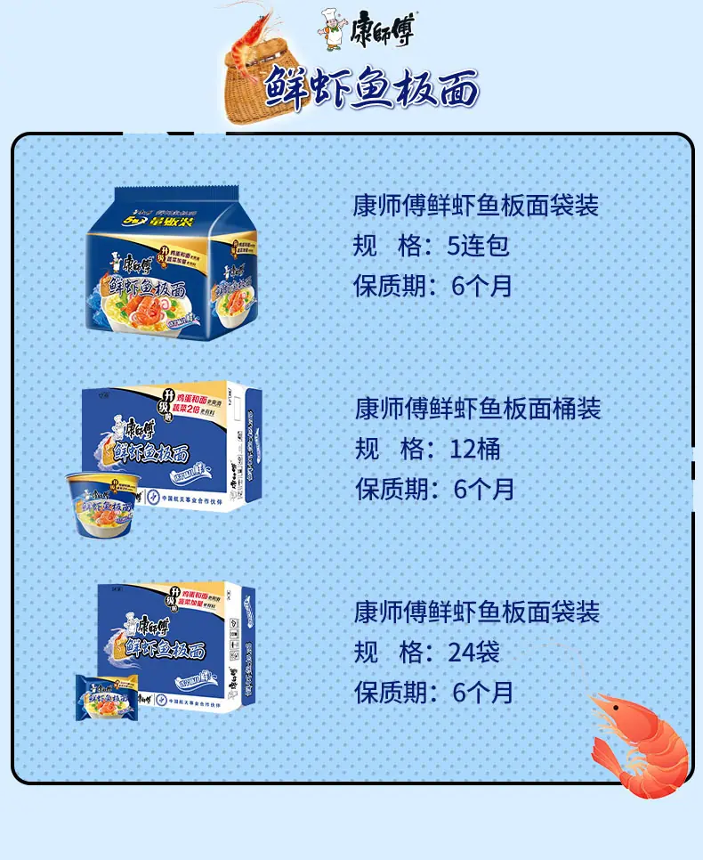 Fideos Instantáneos Master Kong Bolsa Grande Fideos de Camarón Fresco Pastel de Pescado Fideos Instantáneos Sin Cocción Snack Nocturno Relleno Comida Rápida Caja Entera Bolsas Venta al Mayoreo