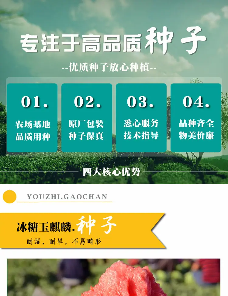 Compra Semillas de Sandía Unicornio Jade de Azúcar de Roca, Maduración Temprana y Vigorosa Pulpa Roja, Semillas de Sandía Crujientes y Jugosas en Tierras de Cultivo y Huertos al por mayor en Joom.pro