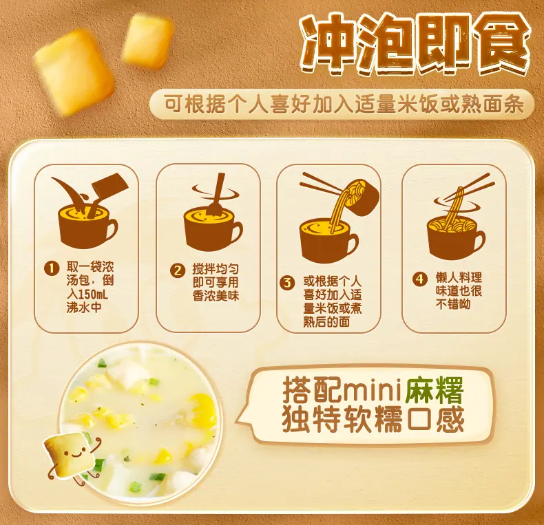Ay Mochi Sabor Maíz Sopa Borscht de Champiñones Estilo Occidental Paquete de Sopa Instantánea para Comida Preparación Instantánea
