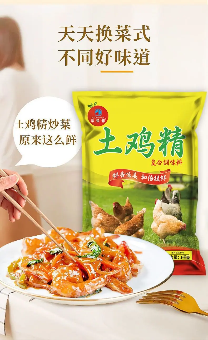 Esencia de Pollo Huayinchun Polvo de Pollo Fresco y Espeso 1000g Condimento Fuerte de Pollo Condimento para Saltear Glutamato Monosódico Polvo de Condimento Comercial