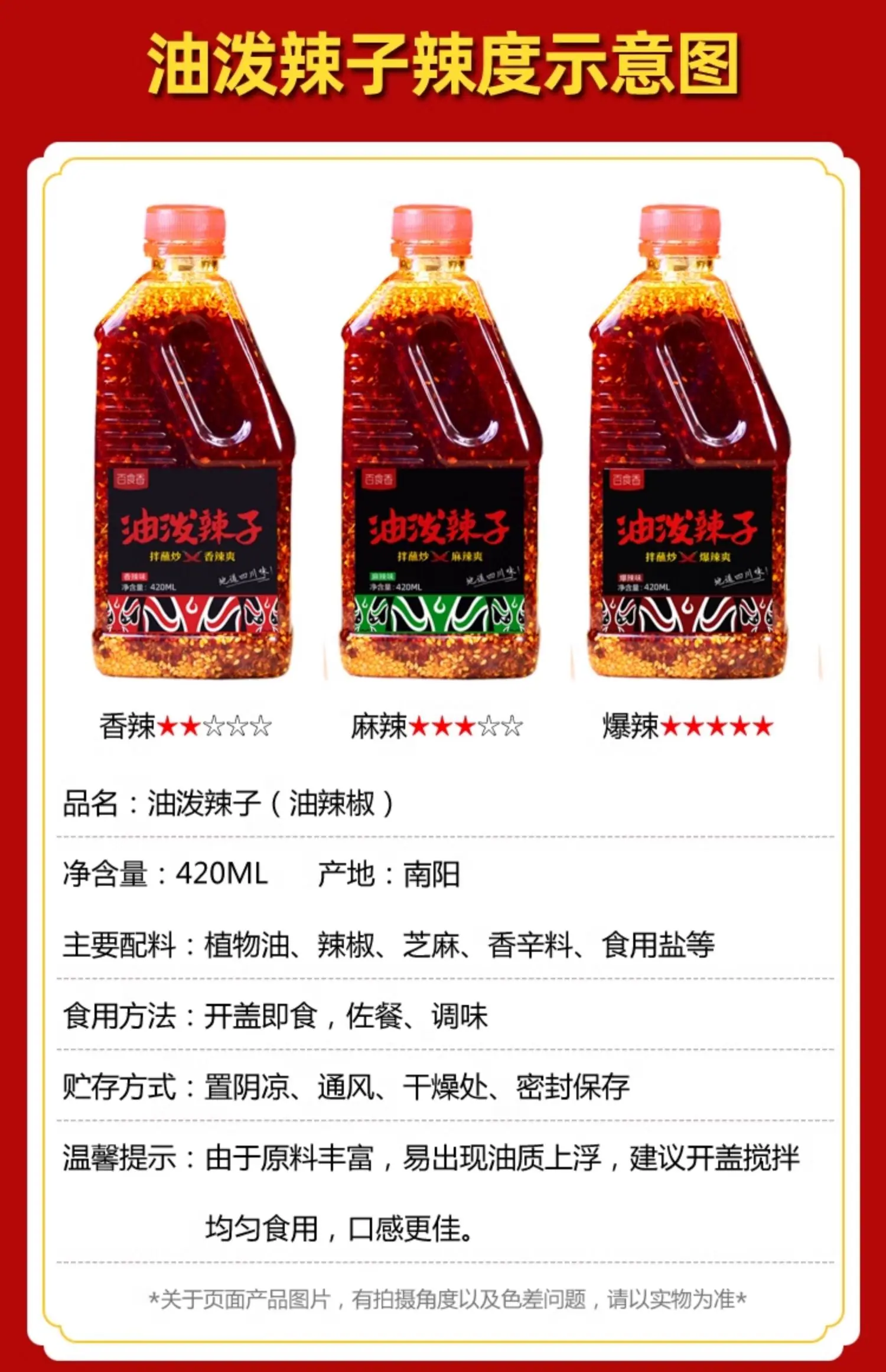 Spicy flavor 420ml*1 bottle, Spicy flavor 420ml*1 bottle, Spicy flavor 420ml*1 bottle, Spicy red oil 420ml*1 b...