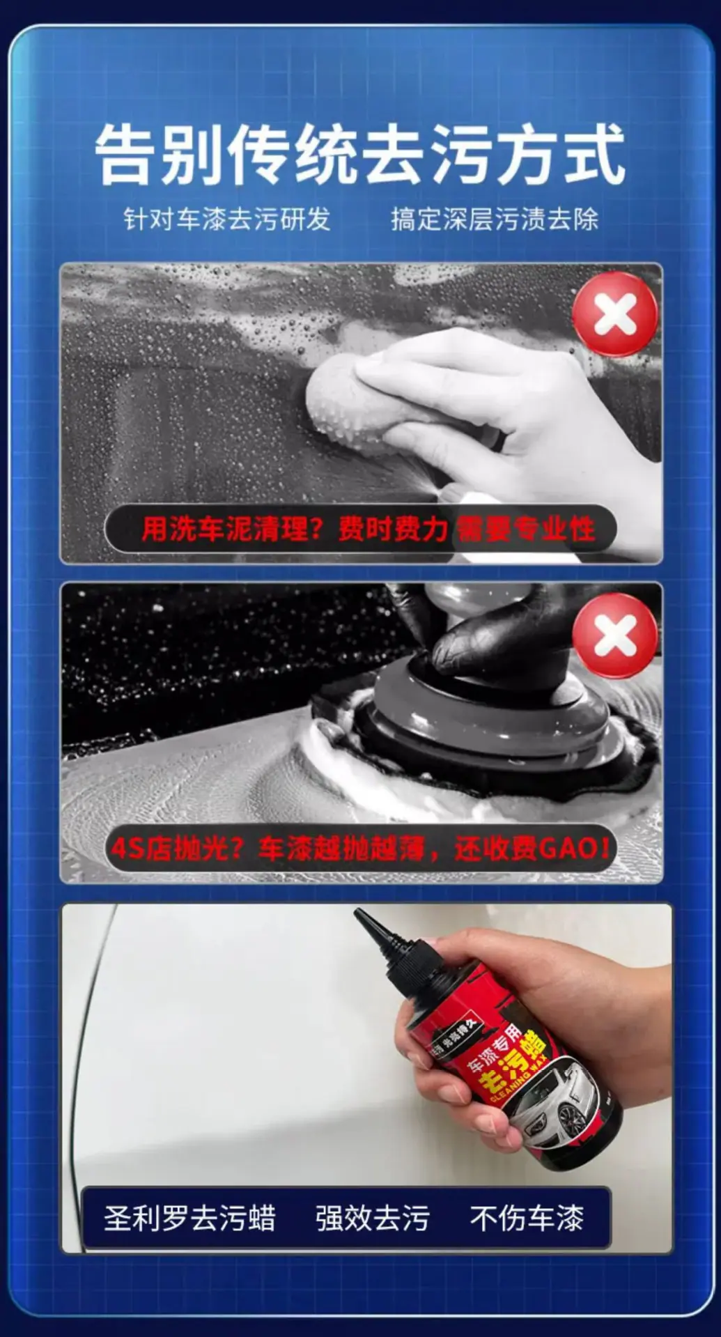 Cera descontaminante para autos cera de pulido fuerte agente limpiador de goma laca para manchas de agua en la superficie de la pintura puntos negros pulido encerado agente de cuidado
