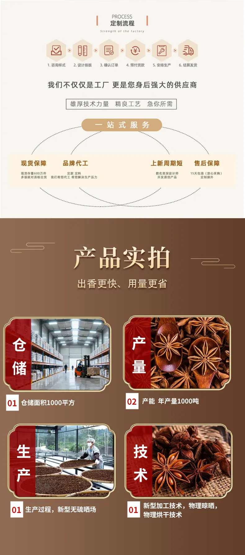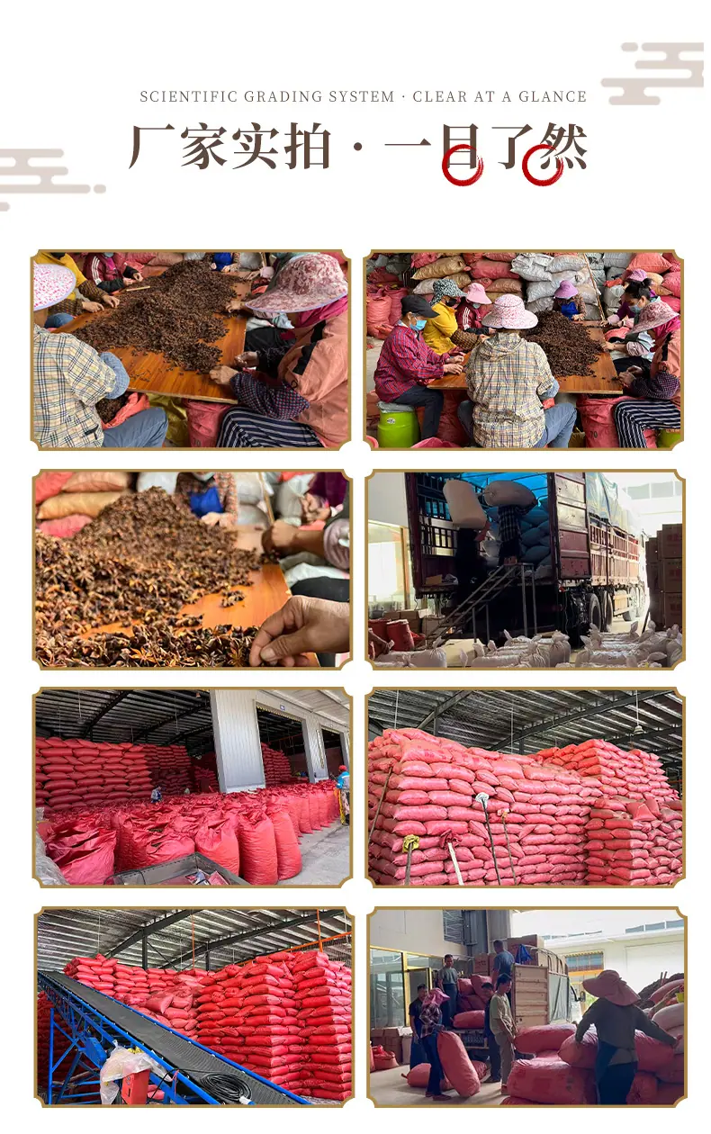 Guangxi Anís Estrella sin Azufre Salmuera Estofada Cadena Alimentaria Fábrica Especial de Alimentos Materia Prima Condimento Especias Base para Olla Caliente