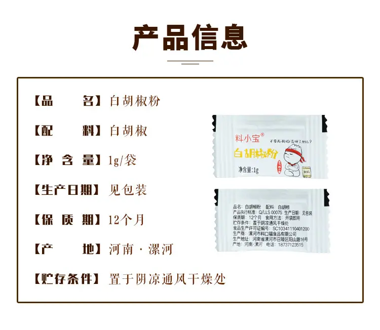 White pepper powder 1g*50 packets, White pepper powder 1g*100 packets, White pepper powder 1g*200 packets, Whi...