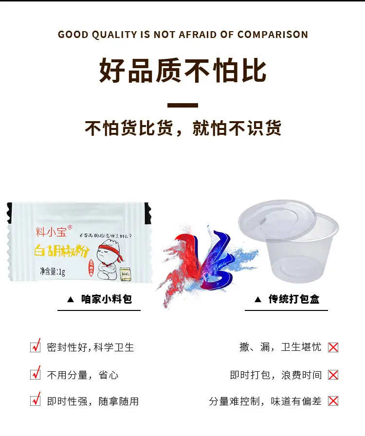Sobrecitos Individuales de Pimienta Blanca en Polvo 1g Condimento de Pimienta Empaque Pequeño Conveniente Barbacoa Bistec Parrilla Salteado Condimento