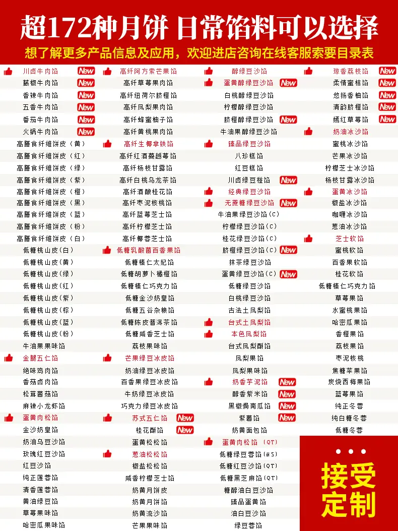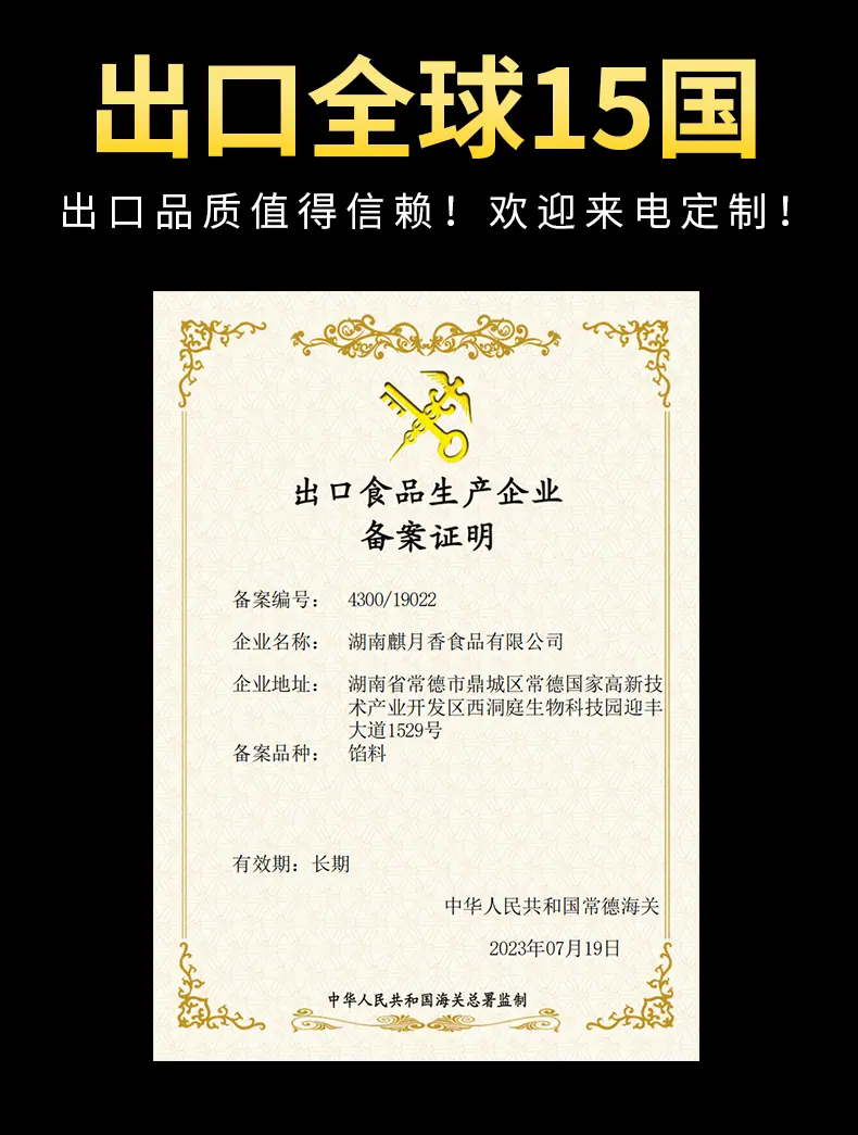 Qi Yue Xiang Relleno de Yema de Huevo Salada y Carne Deshebrada Relleno para Pastel de Luna Bajo en Azúcar Pasta de Frijol Rojo Relleno de Natilla Relleno para Bola de Arroz Glutinoso Sésamo Negro Comercial