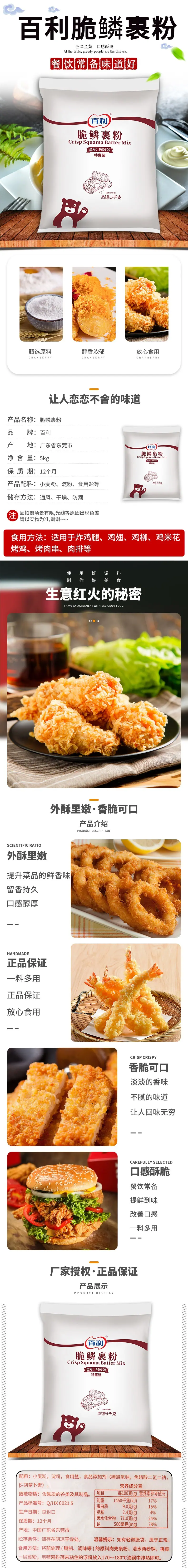 Bai Li Polvo para Rebozado Crujiente 5kg Paquete Comercial para Pollo Frito, Polvo para Rebozar Alitas de Pollo, Polvo para Pollo Frito Crujiente Sustituto de Pan Rallado