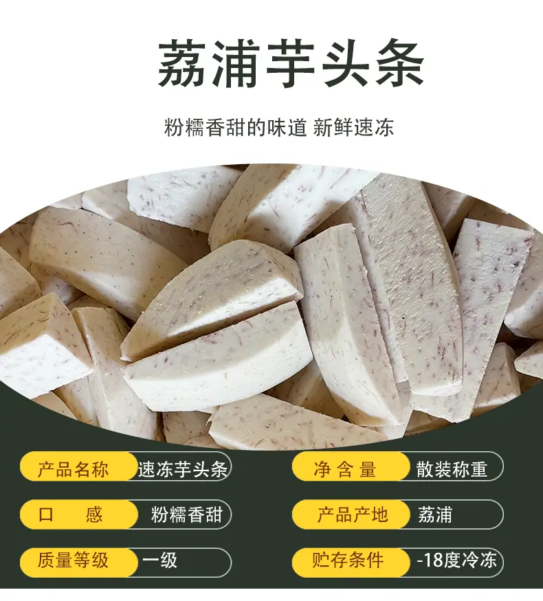 Tiras de Taro de Lipu de Guangxi Recién Cortadas Congeladas Rápidamente Tiras de Taro Tienda de Té con Leche Catering Ingredientes para Hornear Venta al por Mayor