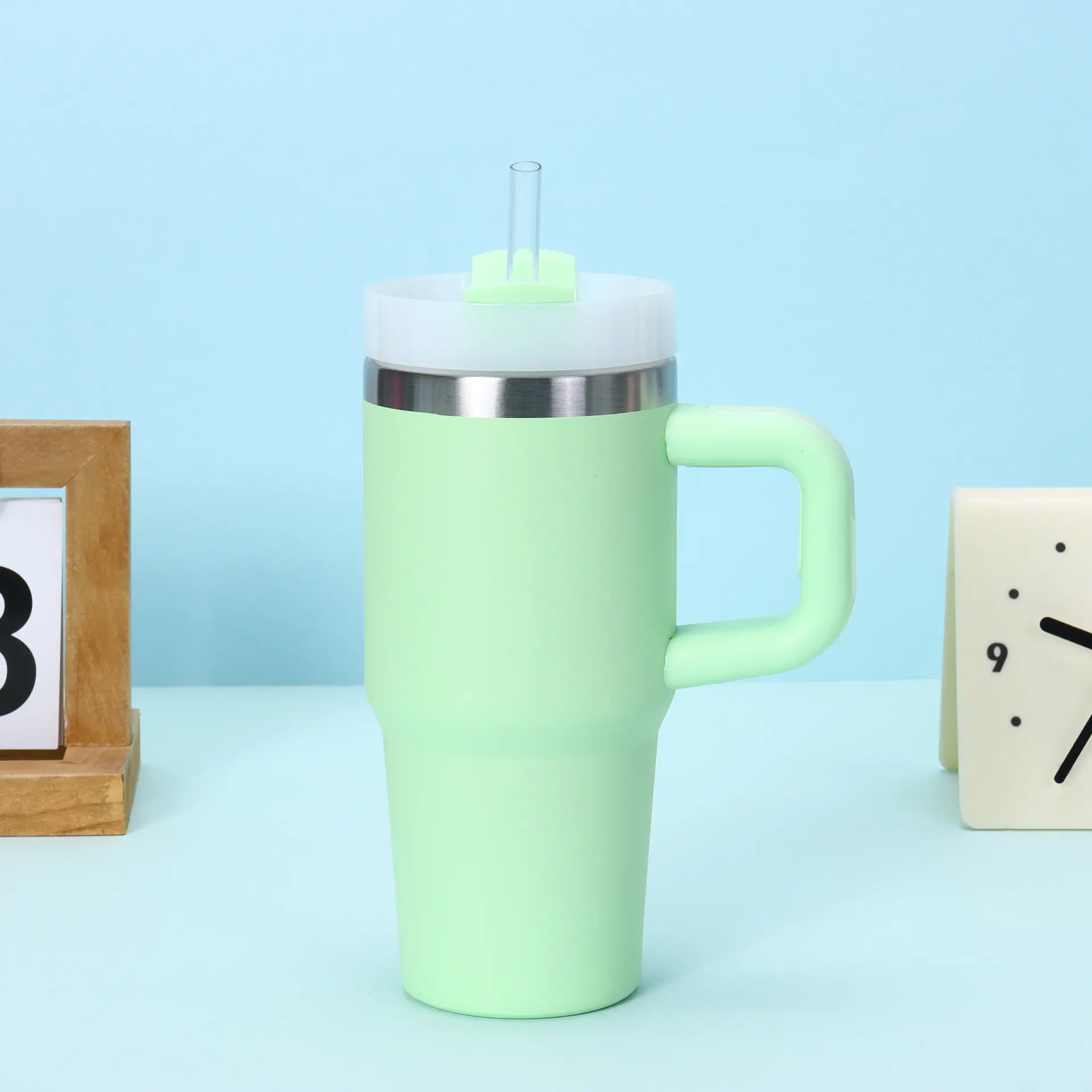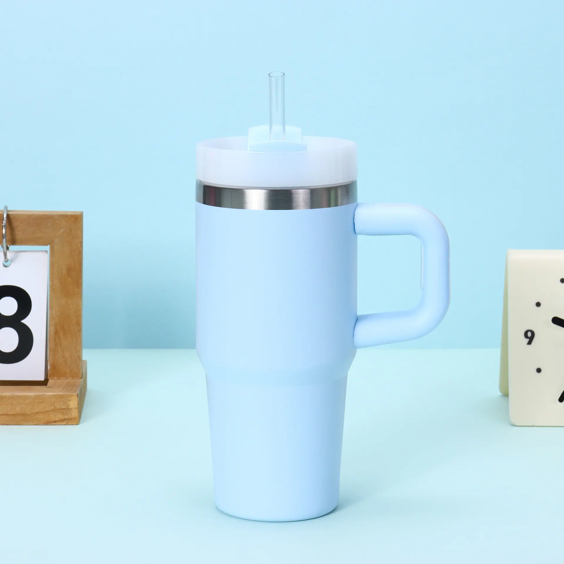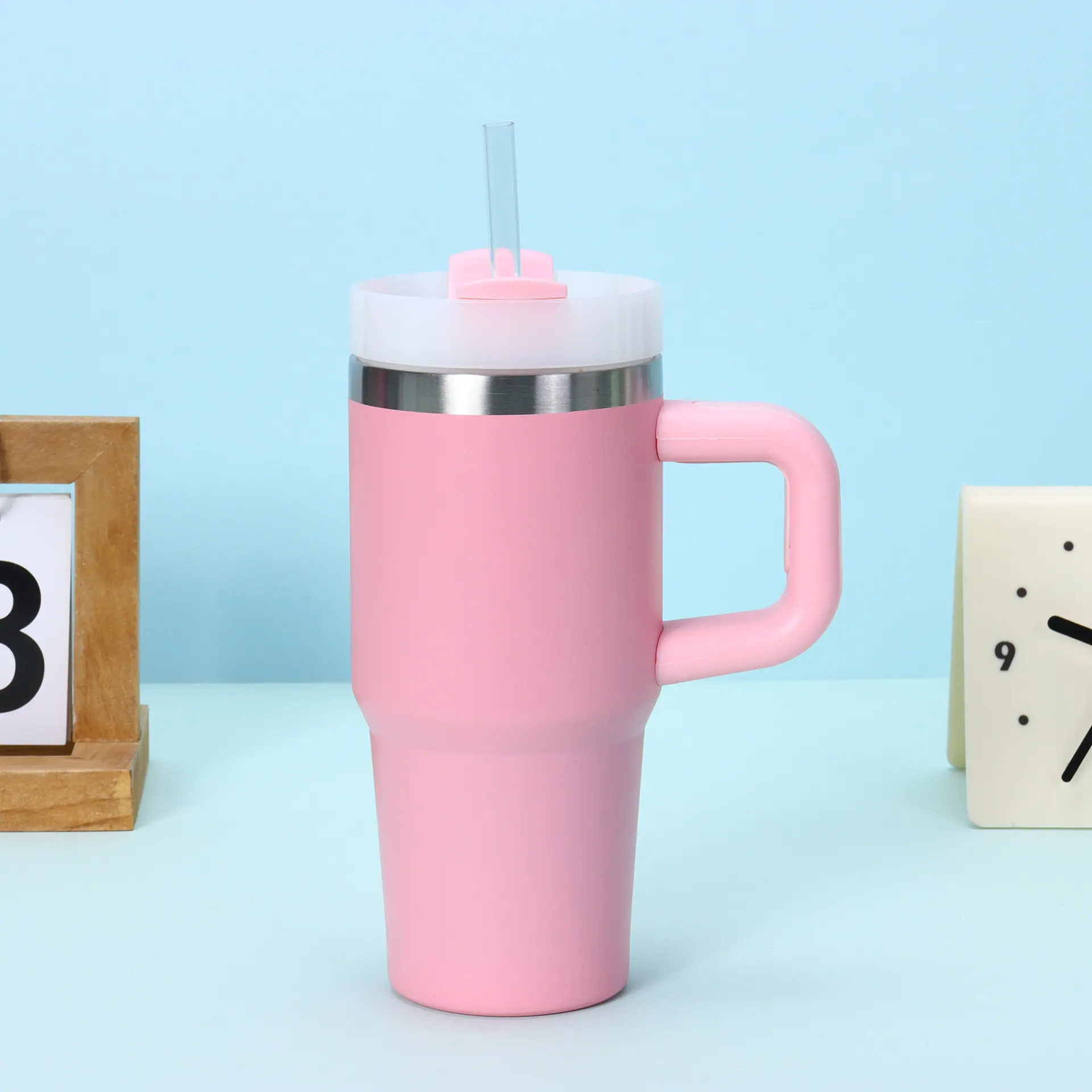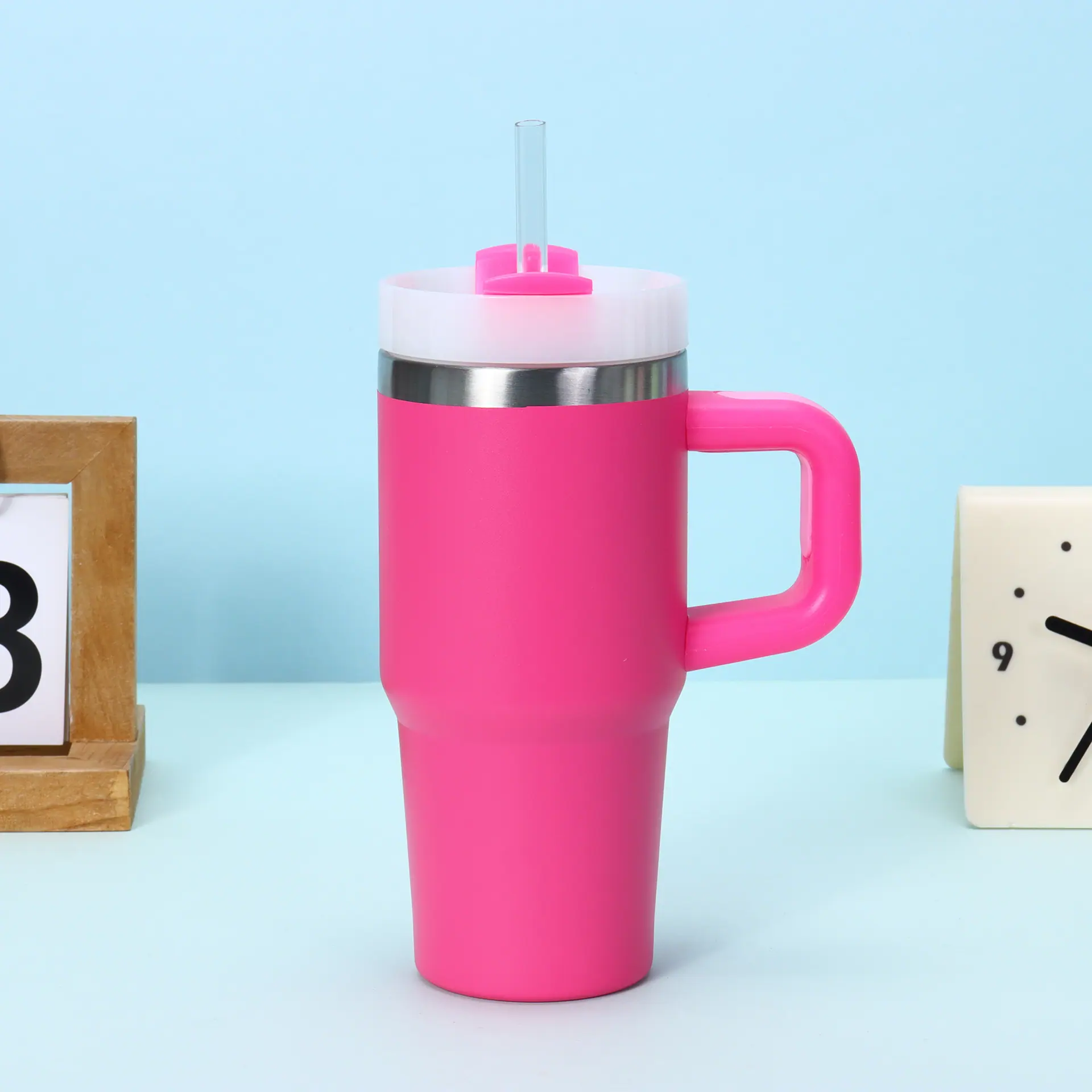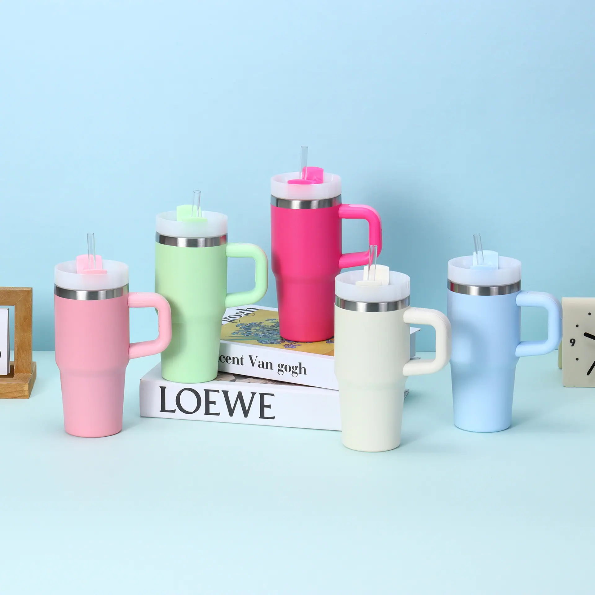Nueva taza de hielo con asa de 14 oz taza termo de acero inoxidable 304 taza para cerveza fría taza portátil con pajita venta al por mayor