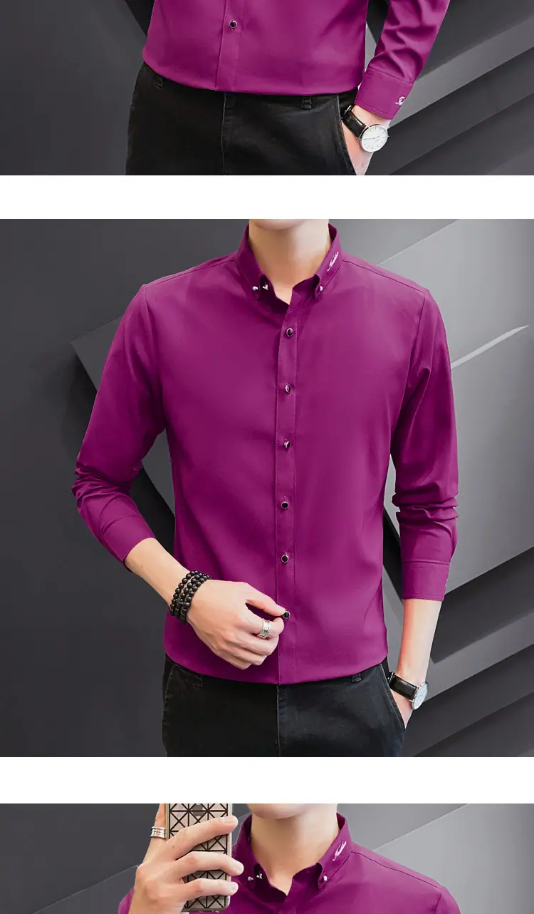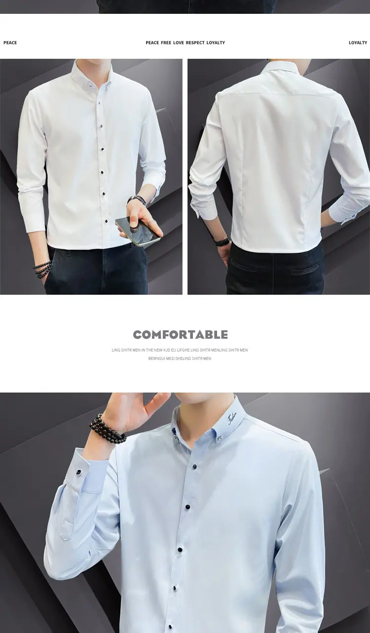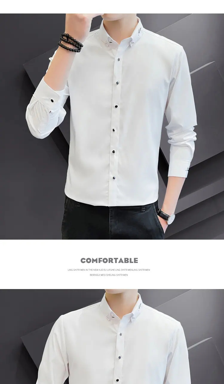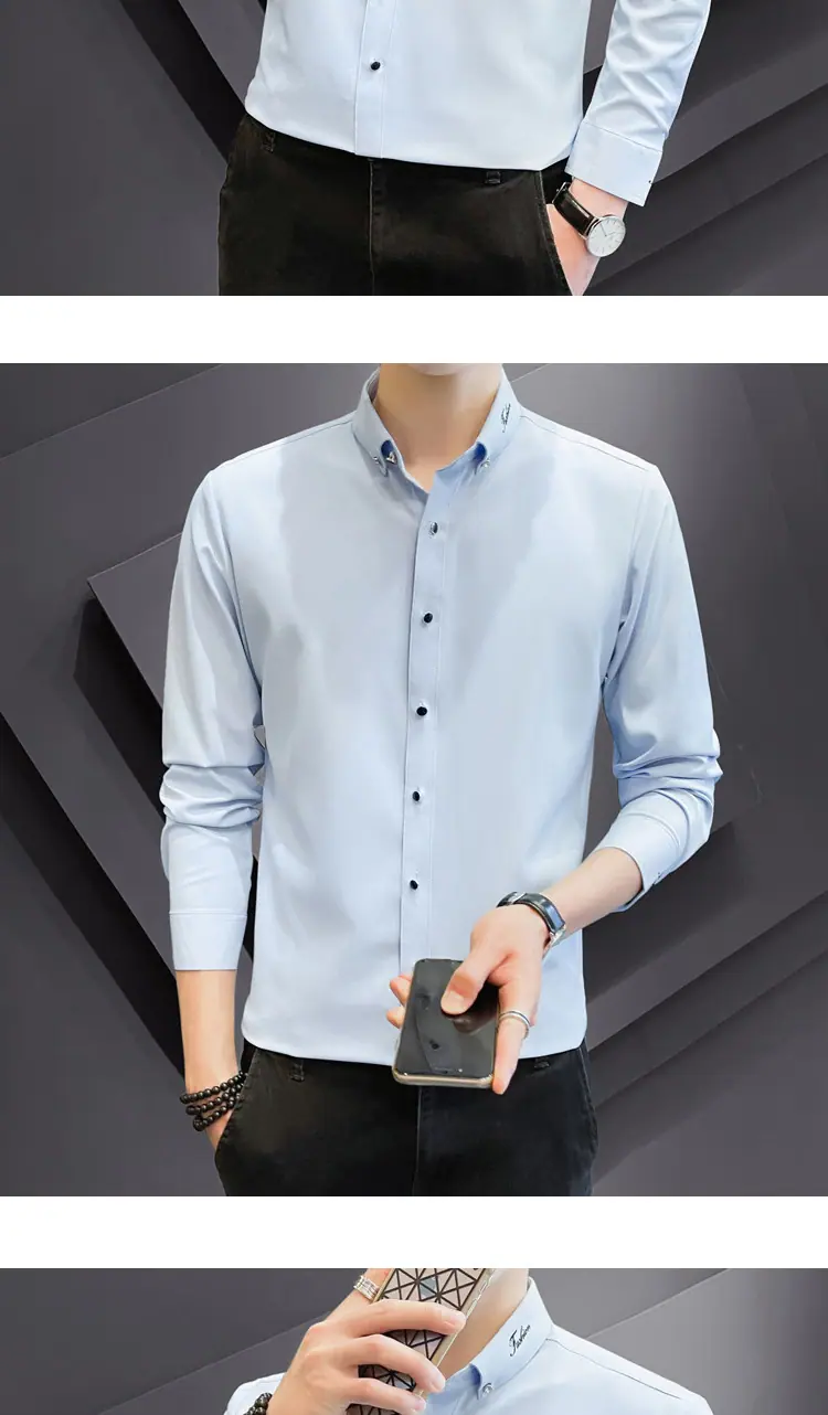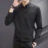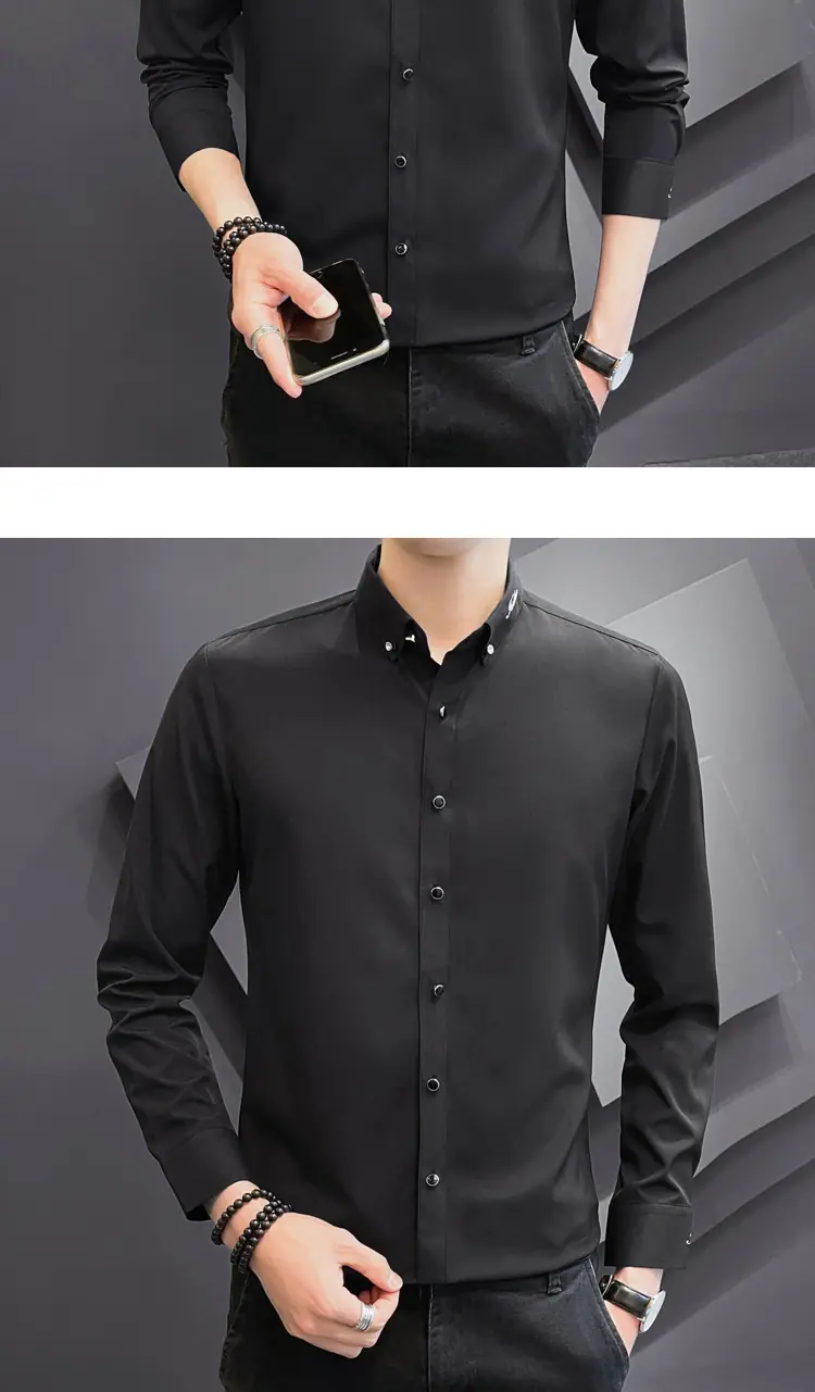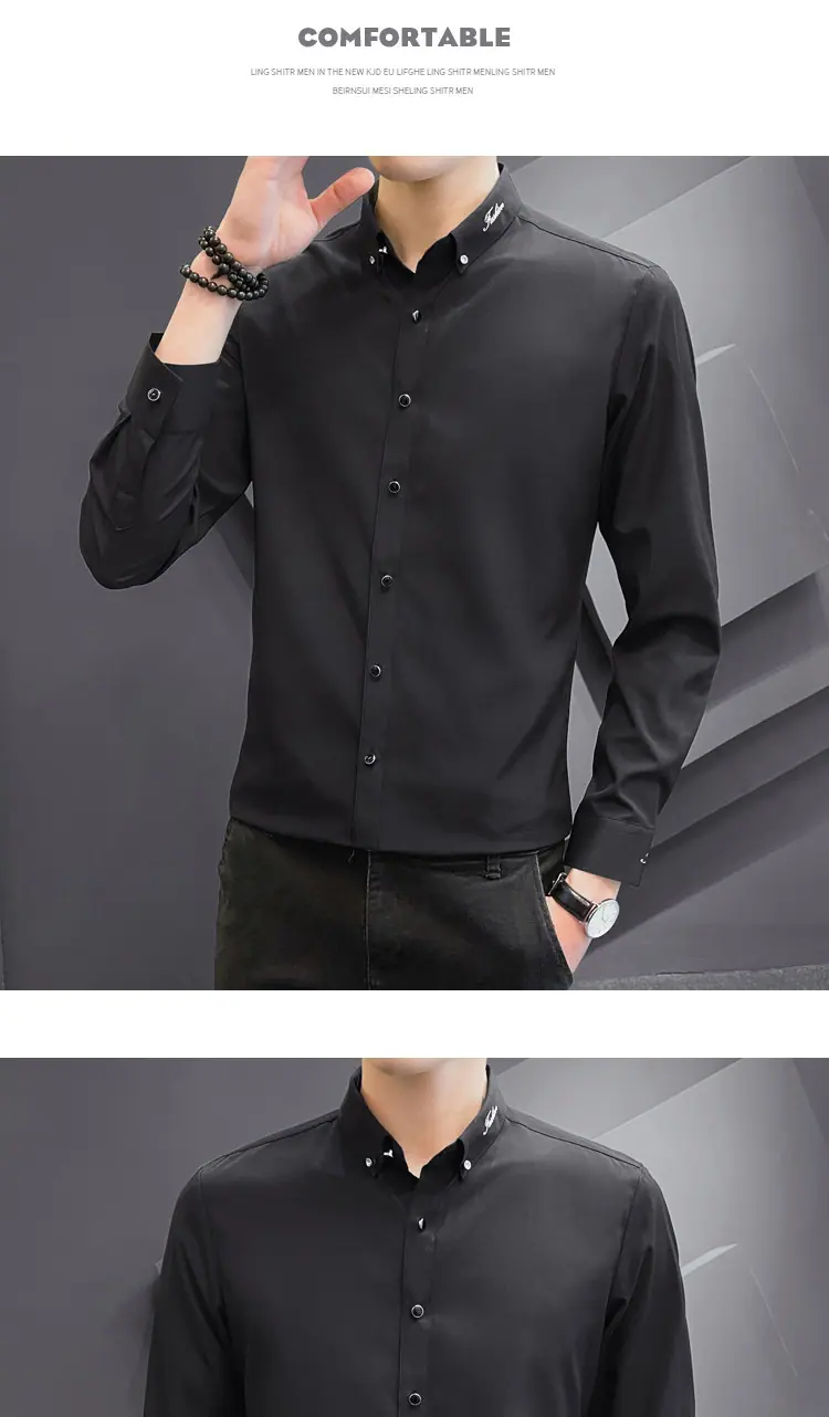 Camisa de Hombre Nueva Transfronteriza 2025 Manga Larga Estilo Coreano Moda Elástica Ajustada Moderna Guapo Bordada Casual