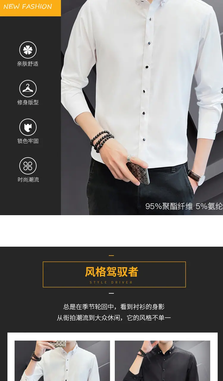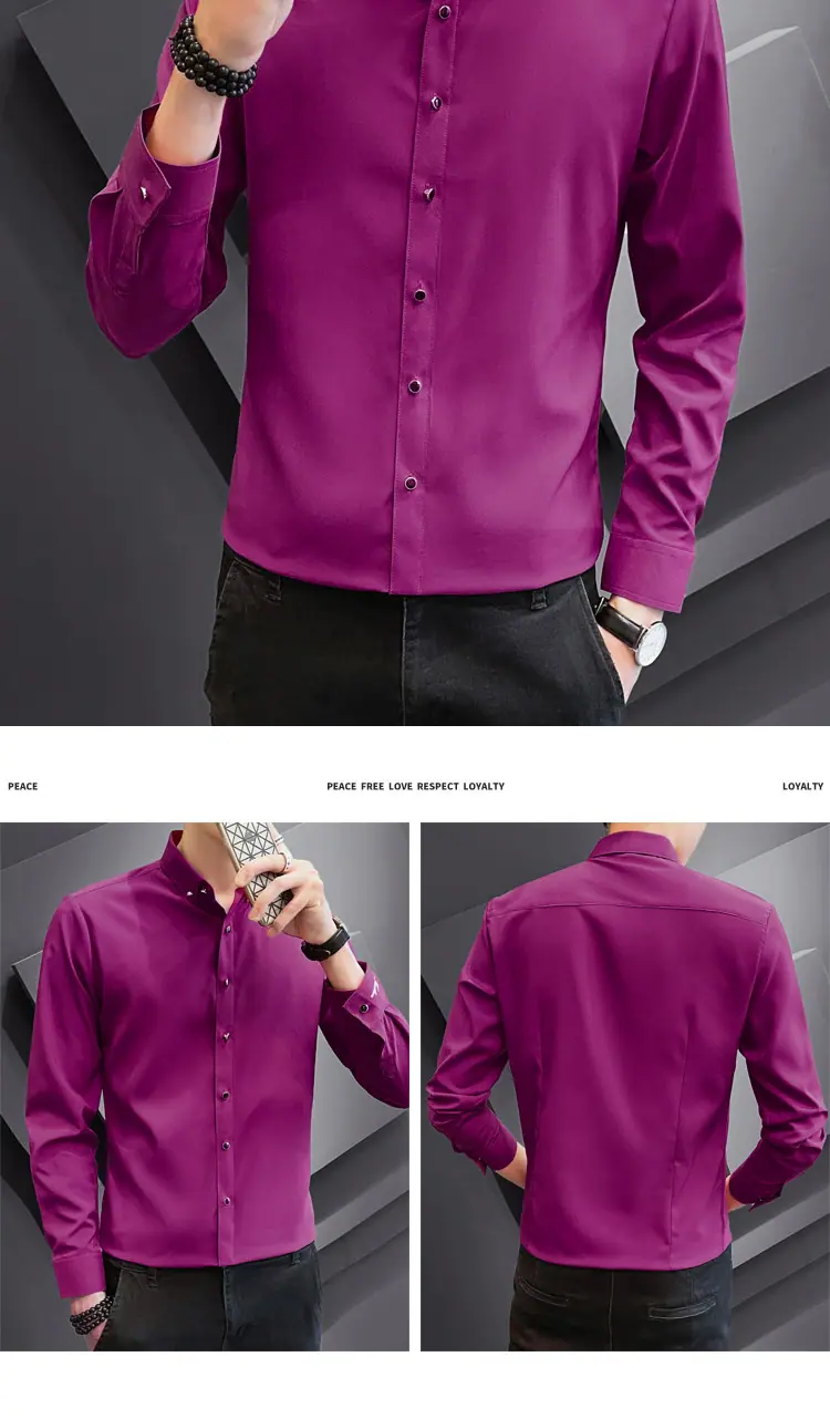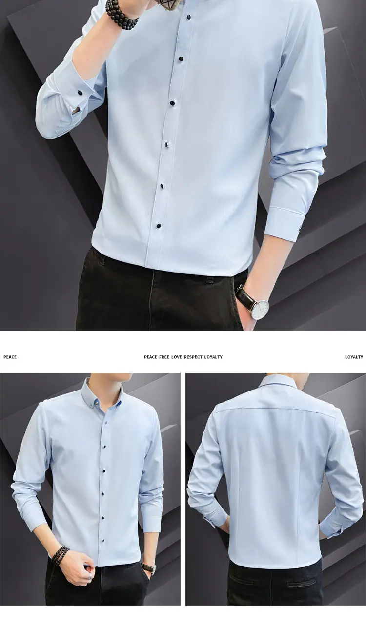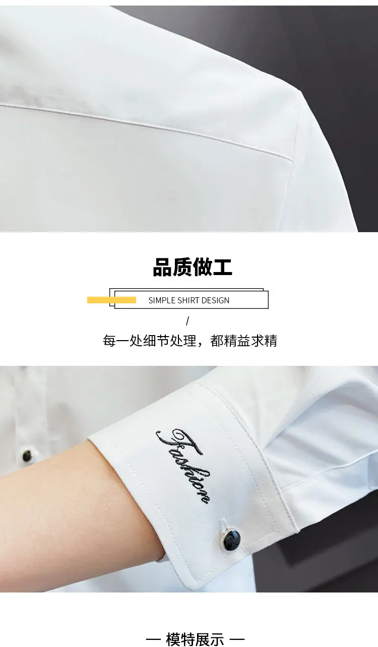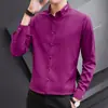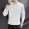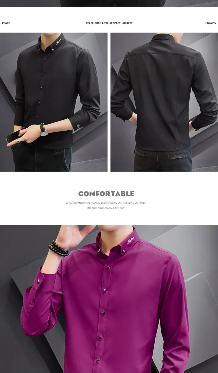 Camisa de Hombre Nueva Transfronteriza 2025 Manga Larga Estilo Coreano Moda Elástica Ajustada Moderna Guapo Bordada Casual
