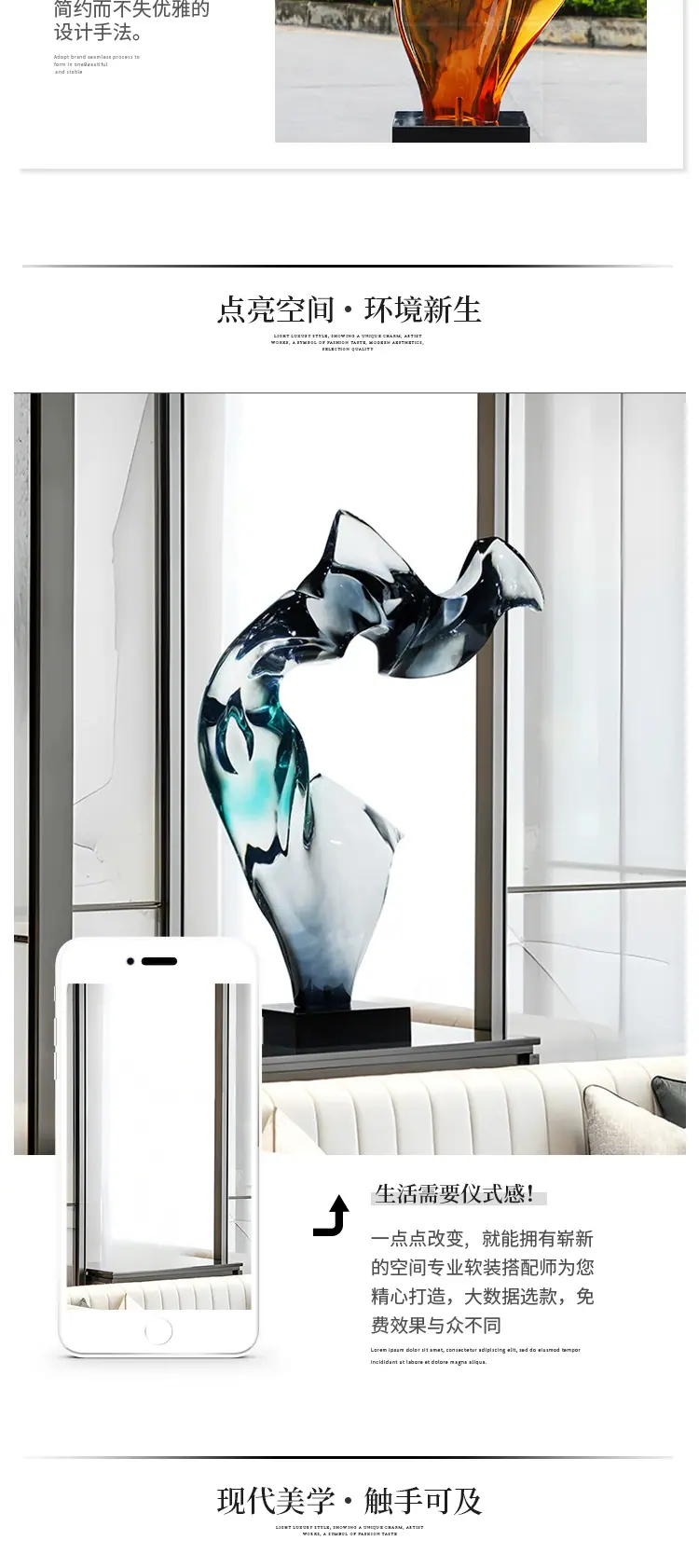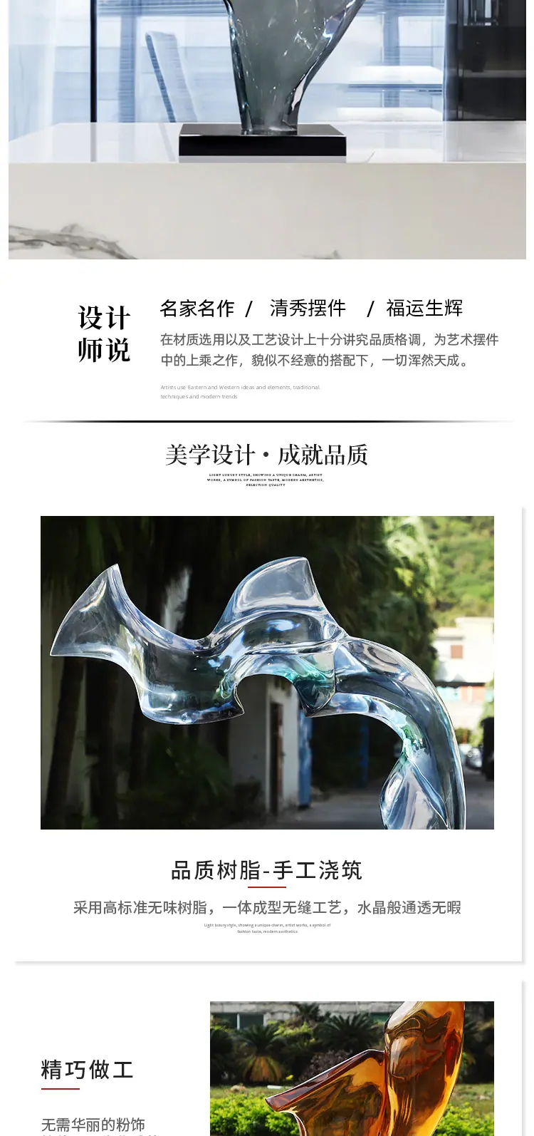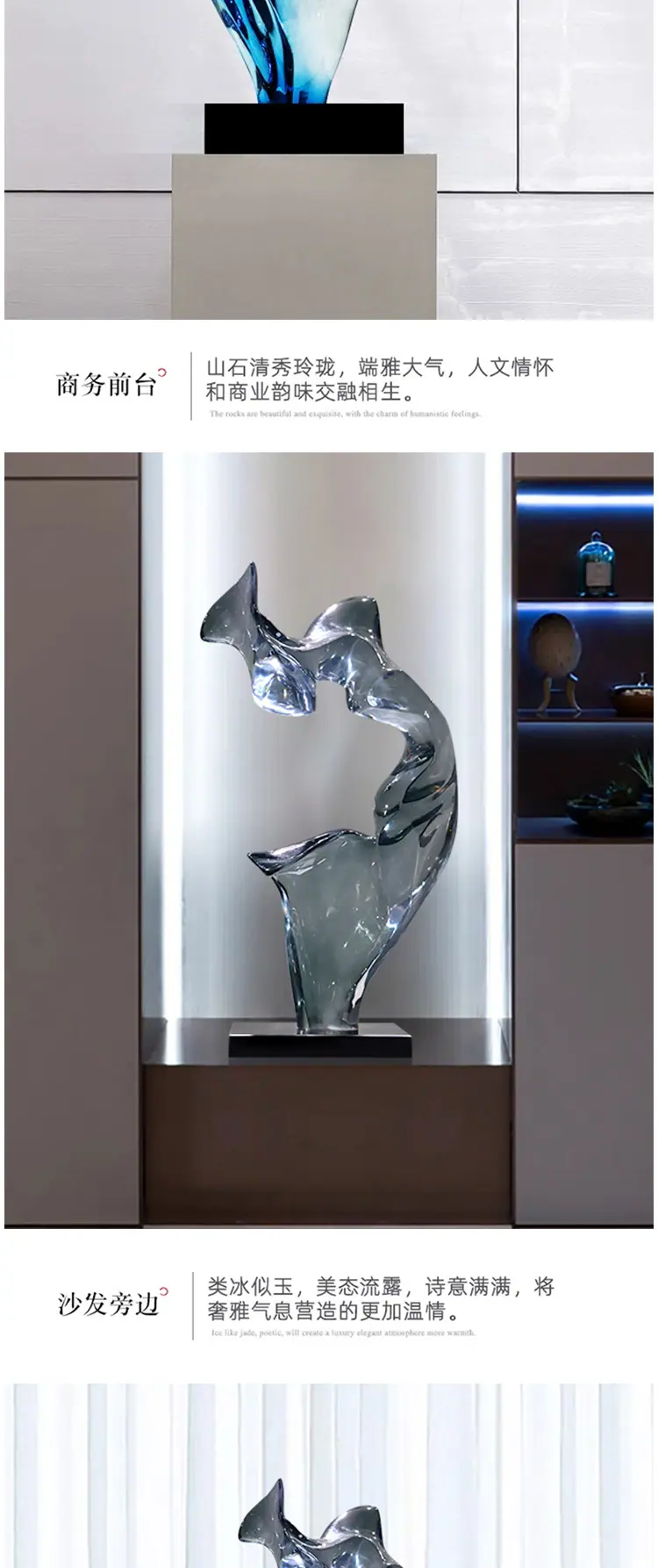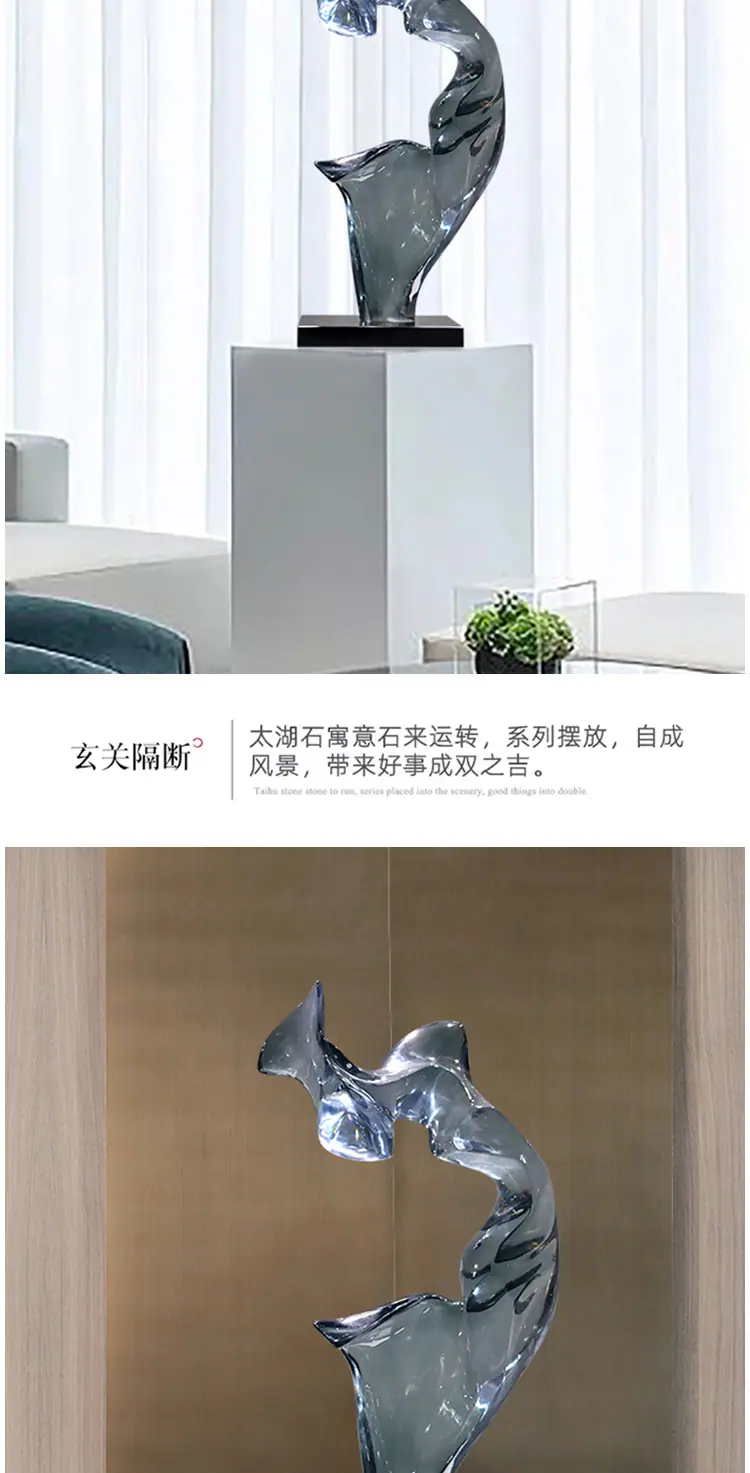Escultura Artesanal de Resina Transparente Arte Abstracto Hotel Villa Sala de Estar Adornos de Escritorio Decoración Suave Decoración Creativa