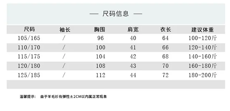 M-105(change to XS), L-110(replace S), XL-115(change to M), 2XL-120((change to L)), 3XL-125((change to XL)