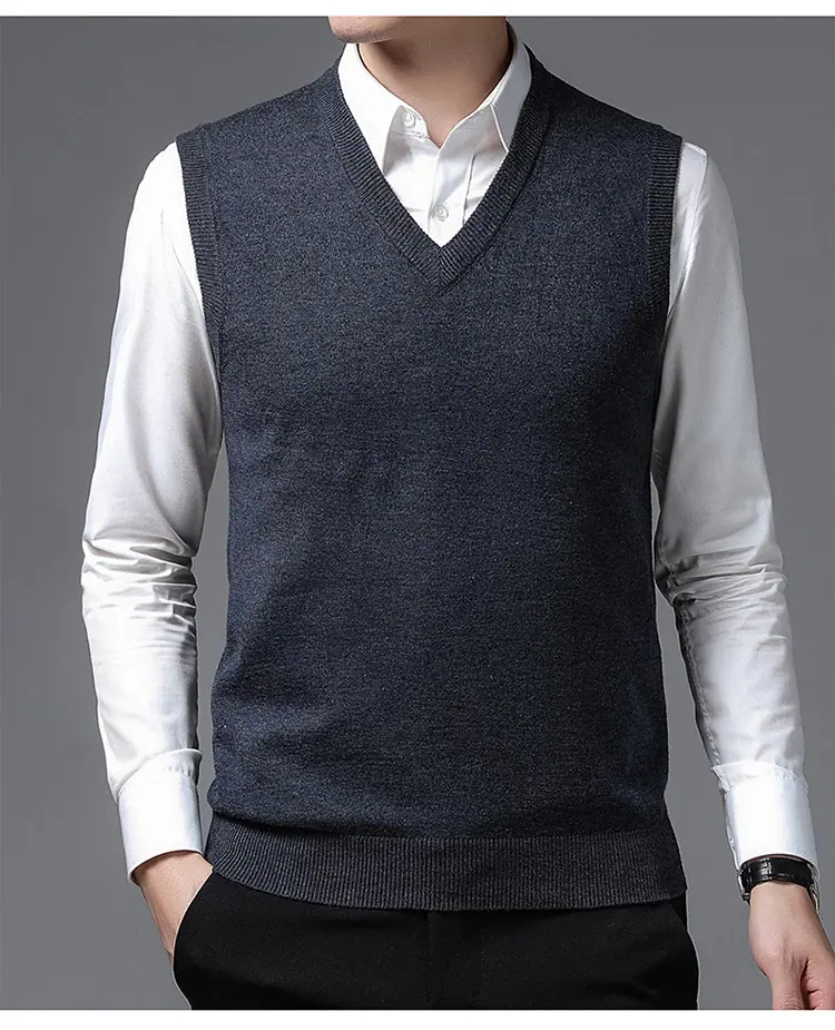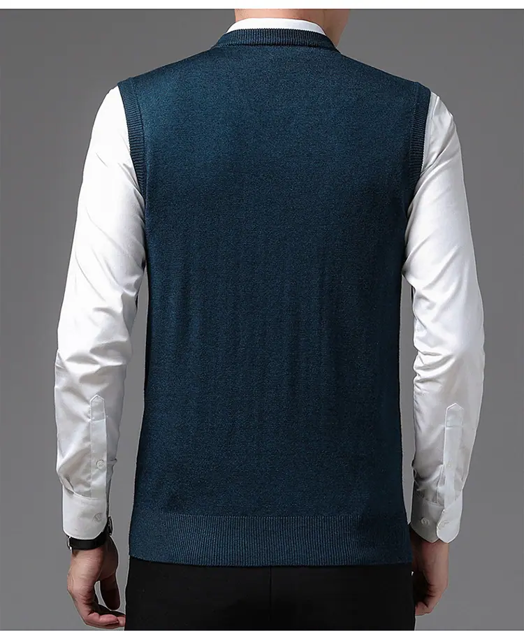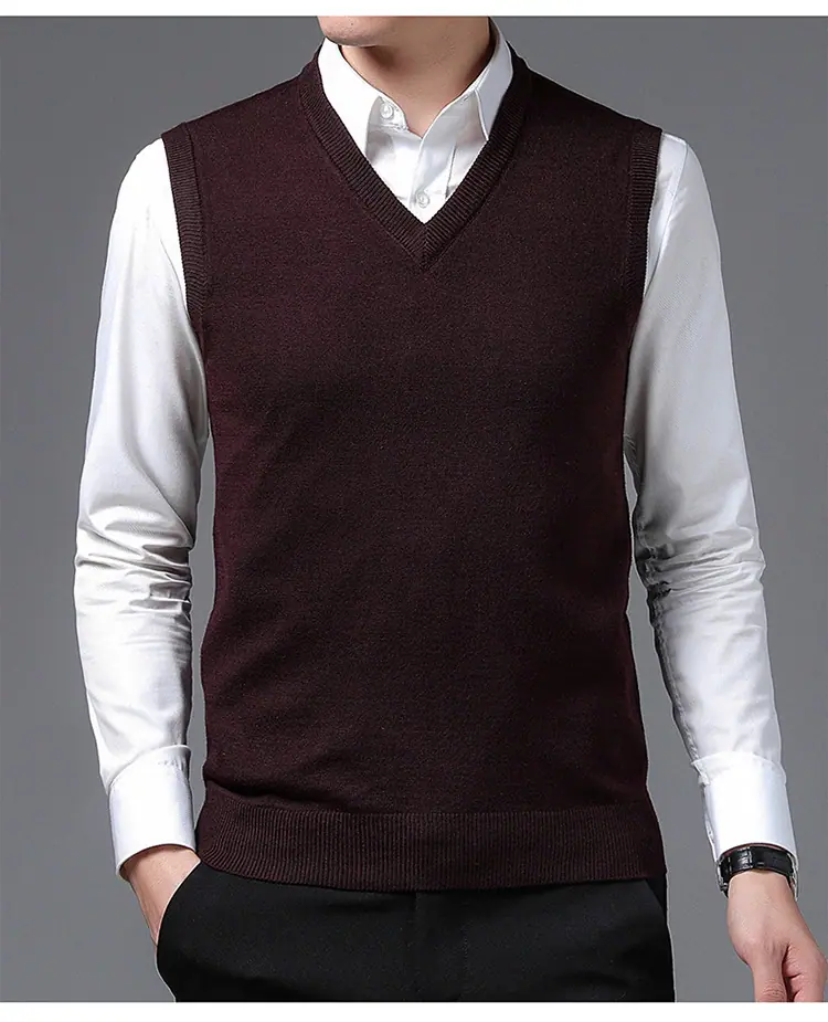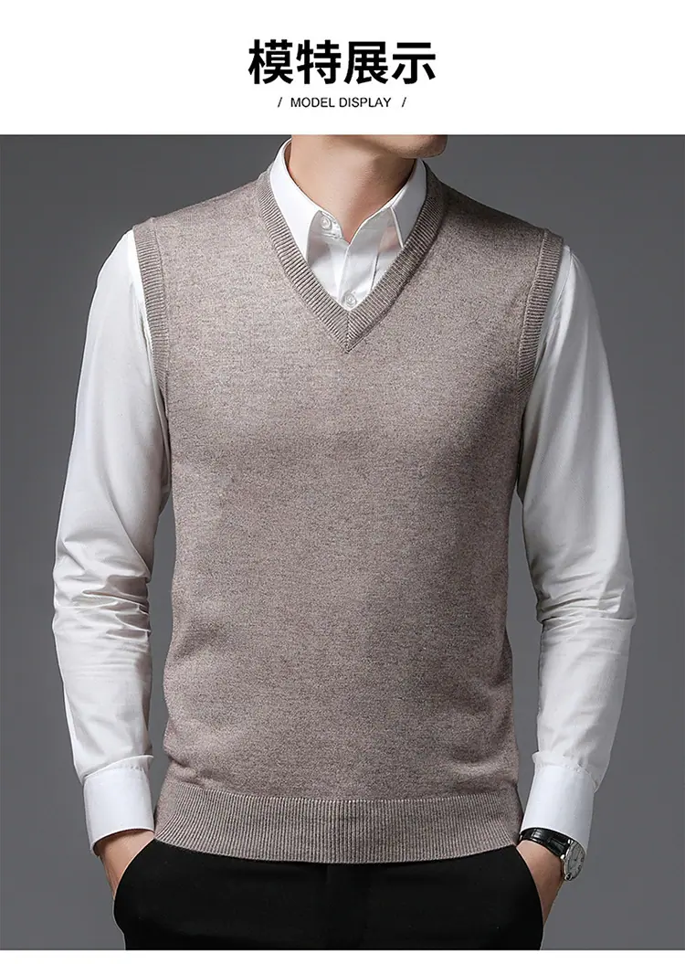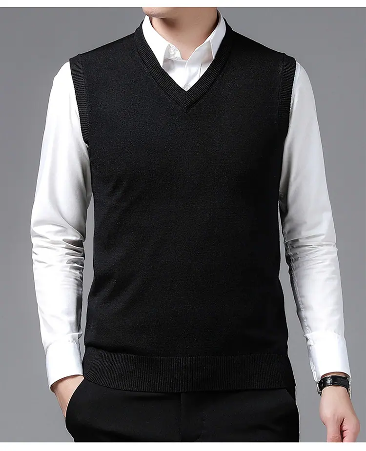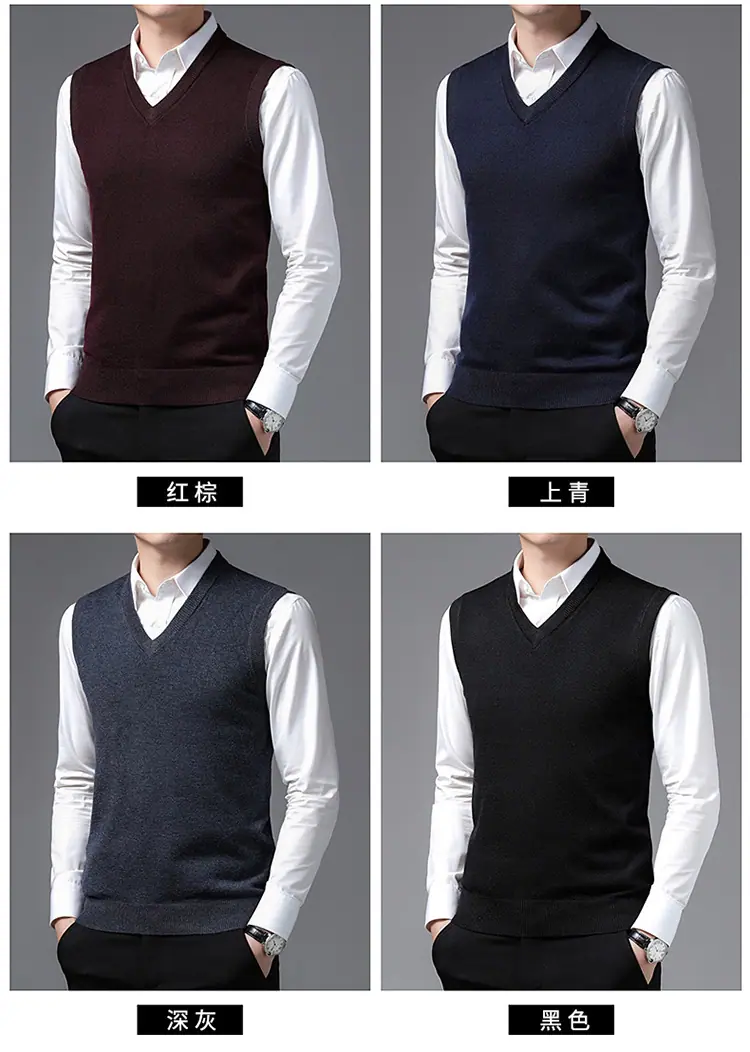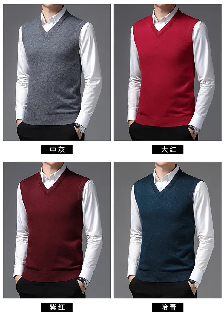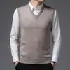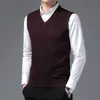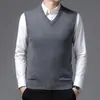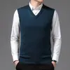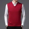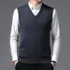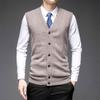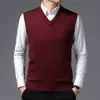 Chaleco de punto para hombre con cuello en V para otoño e invierno, suéter para hombre de mediana edad y talla grande, chaleco de punto casual sin mangas