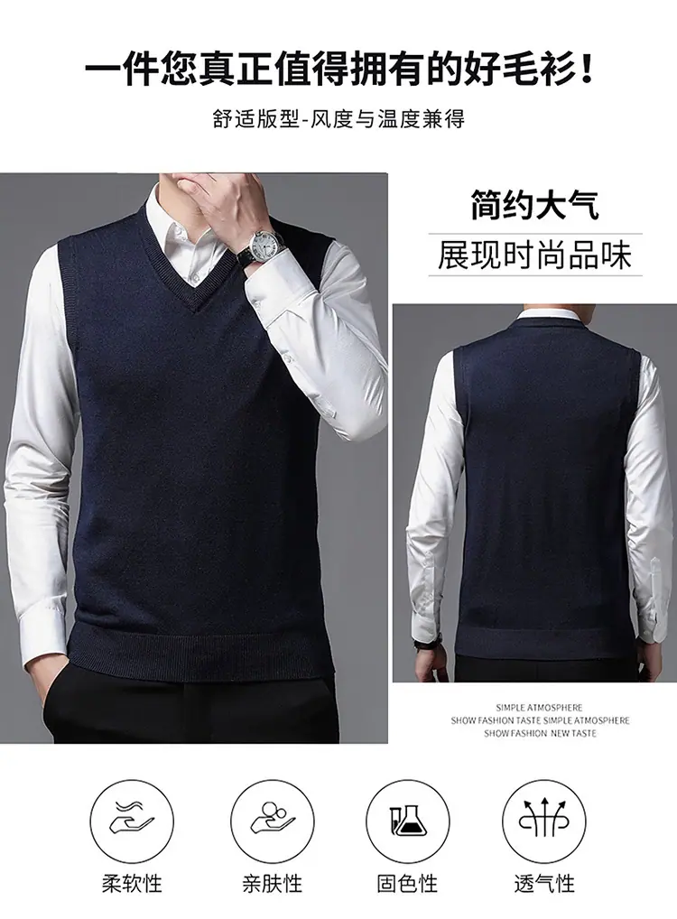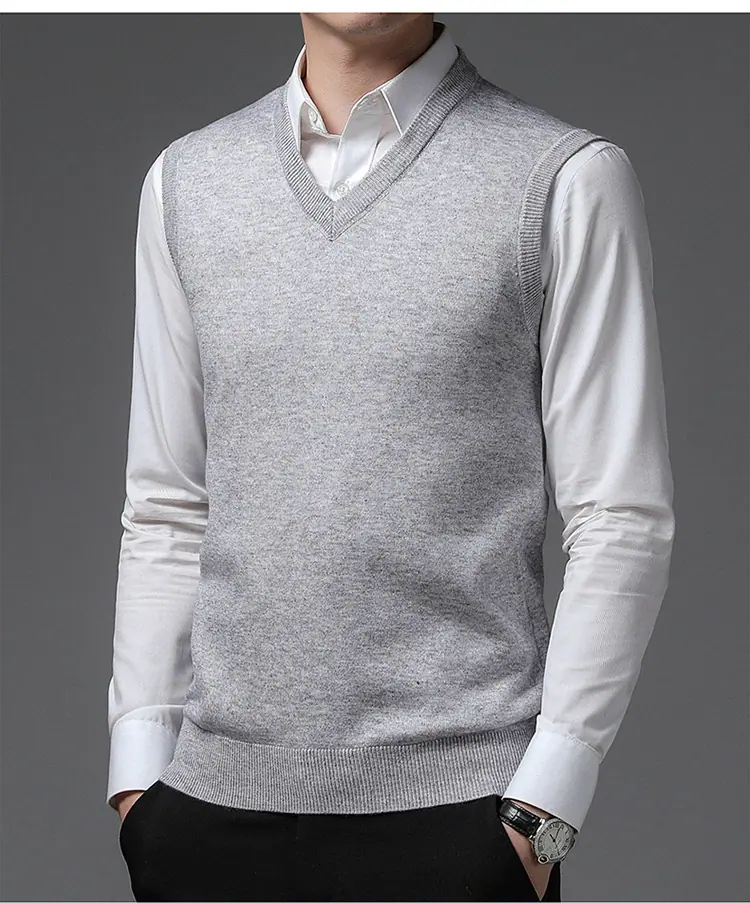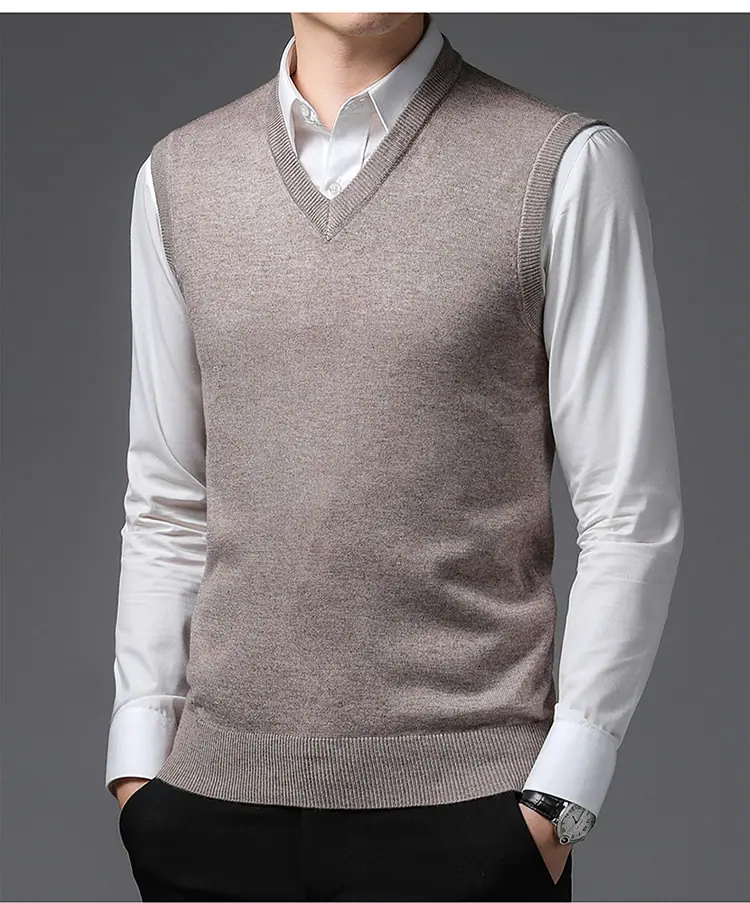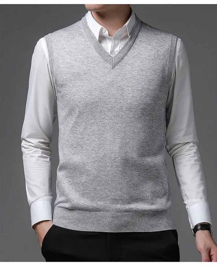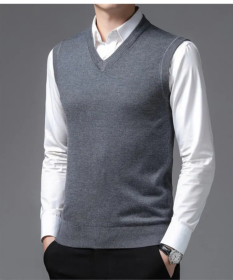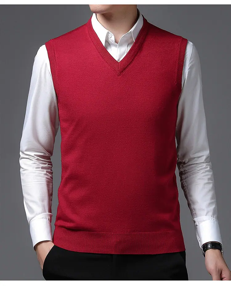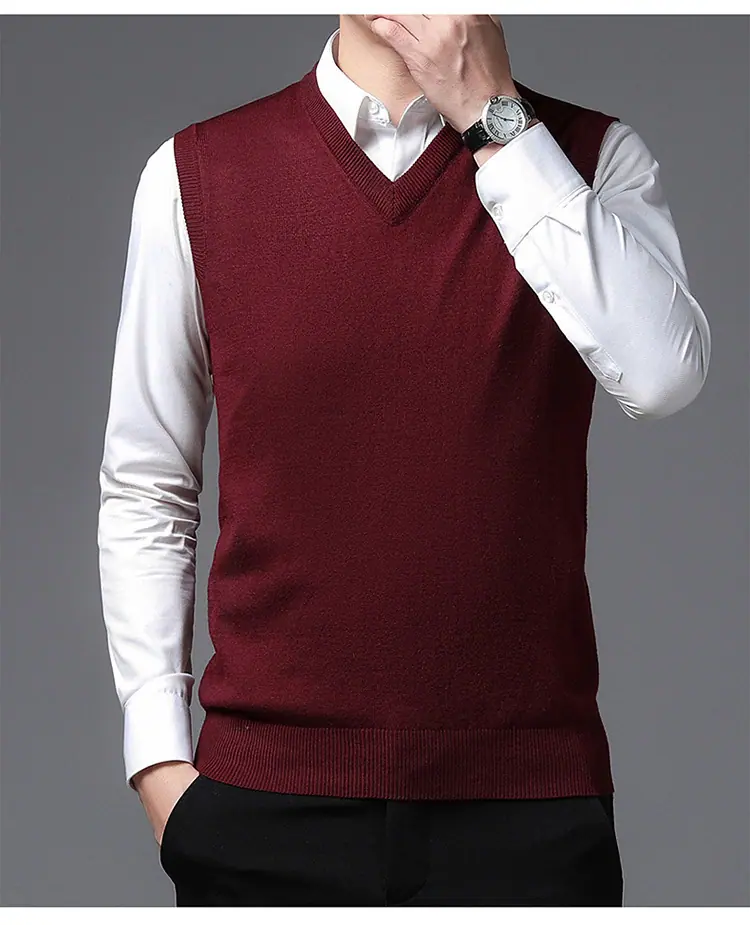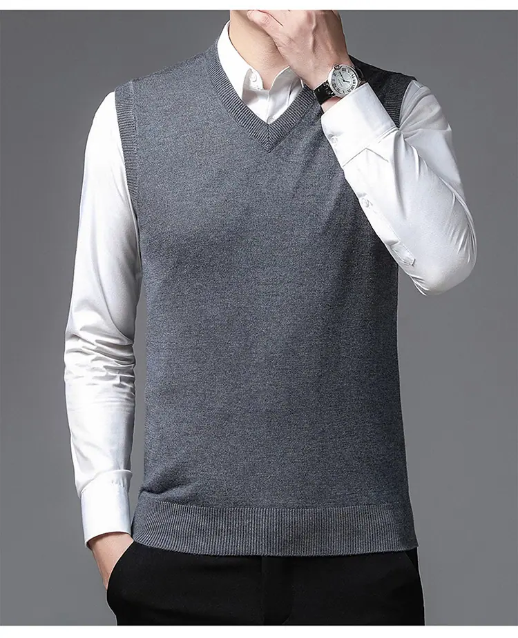 Chaleco de punto para hombre con cuello en V para otoño e invierno, suéter para hombre de mediana edad y talla grande, chaleco de punto casual sin mangas