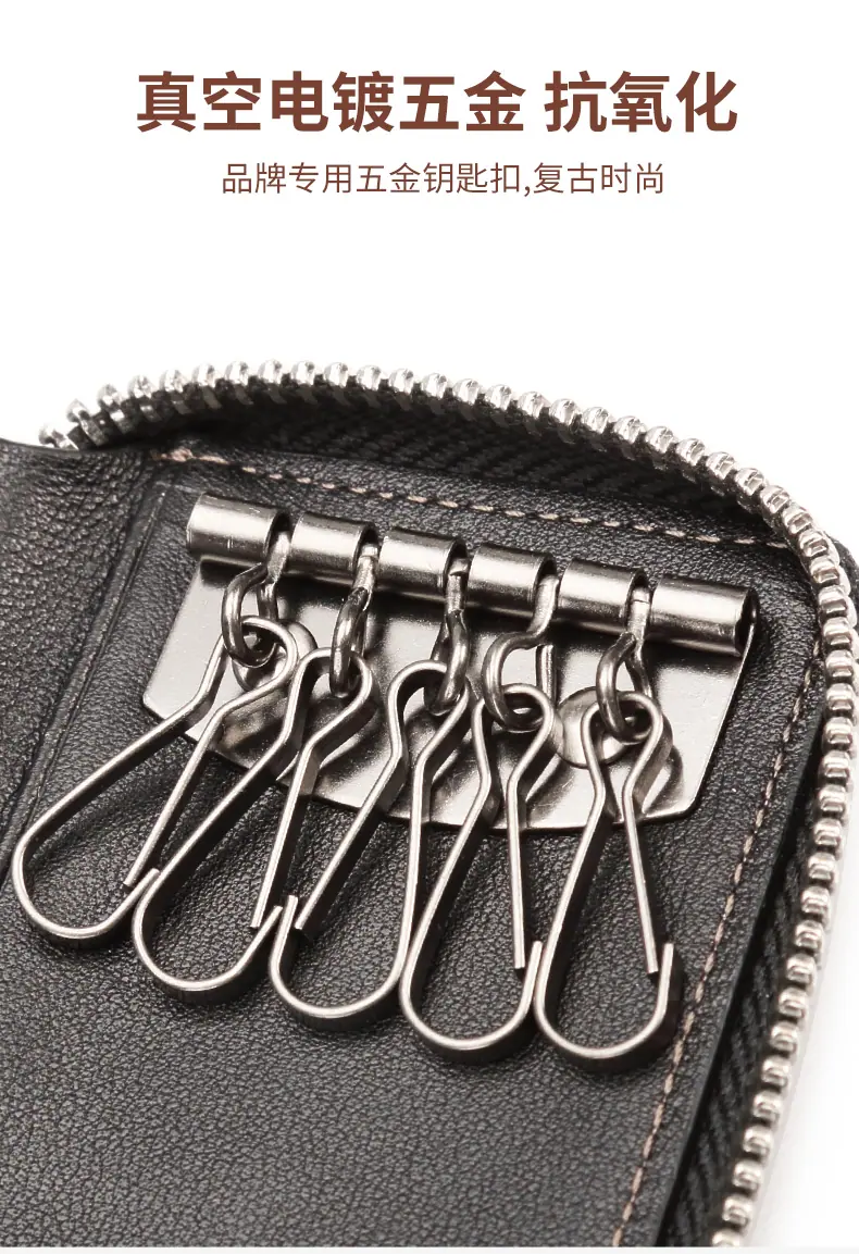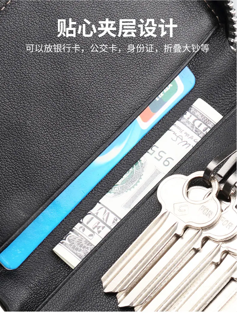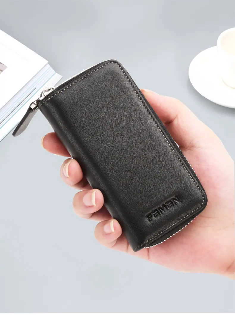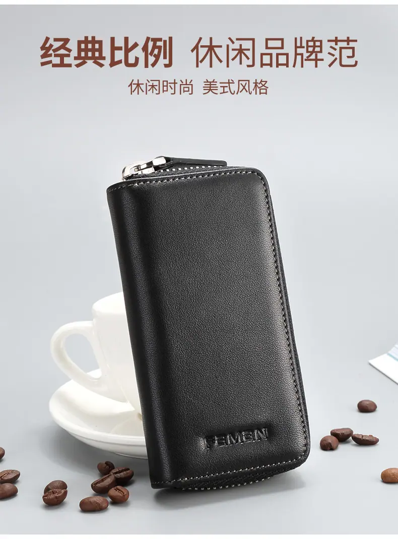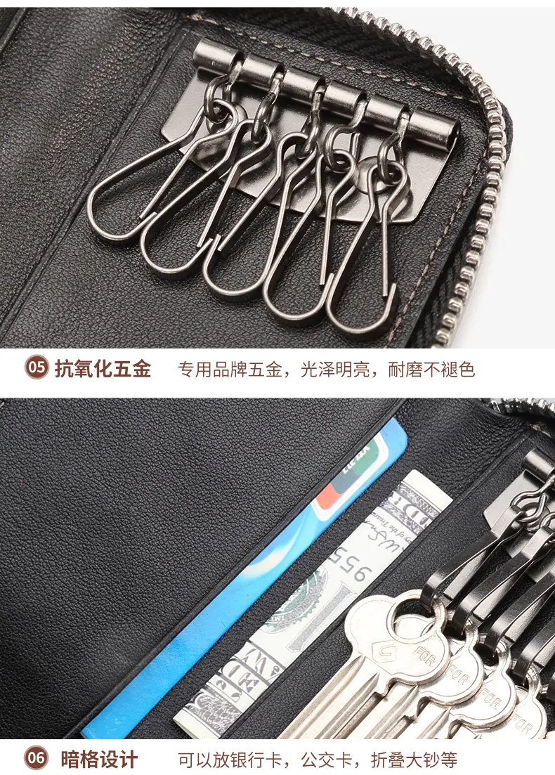 Bolsa para Llaves de Hombre de Cuero Genuino con Cremallera Bolsa para Llaves de Coche Vintage de Piel de Vaca Multifuncional de Gran Capacidad Bolsa para Llaves Monedero