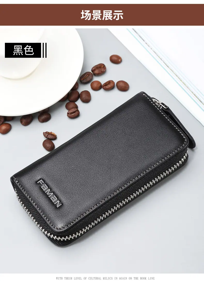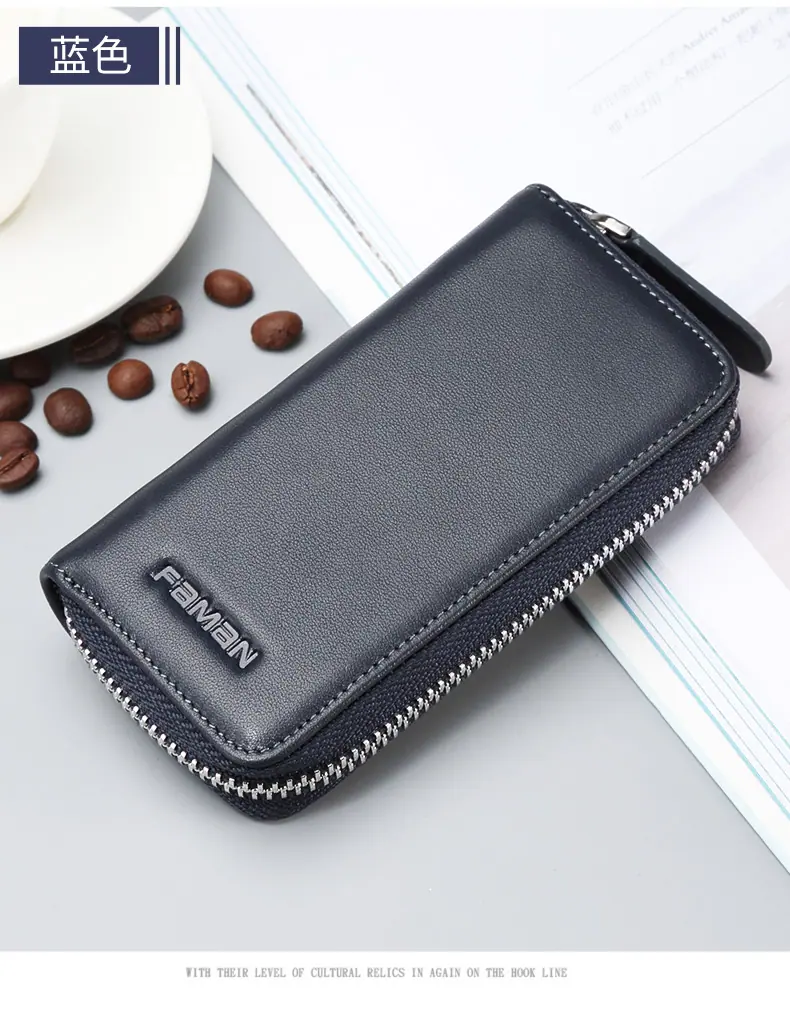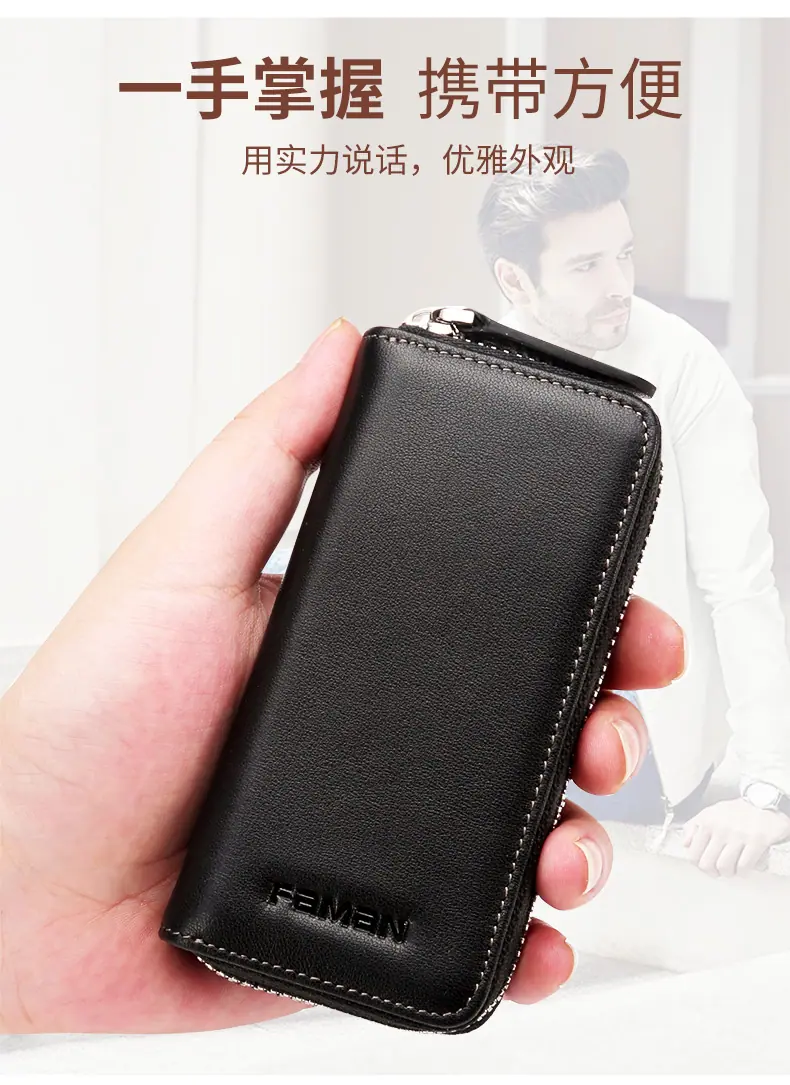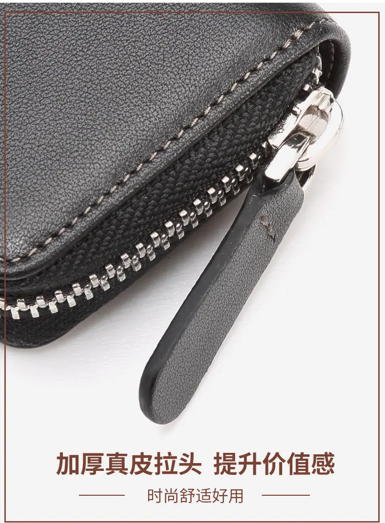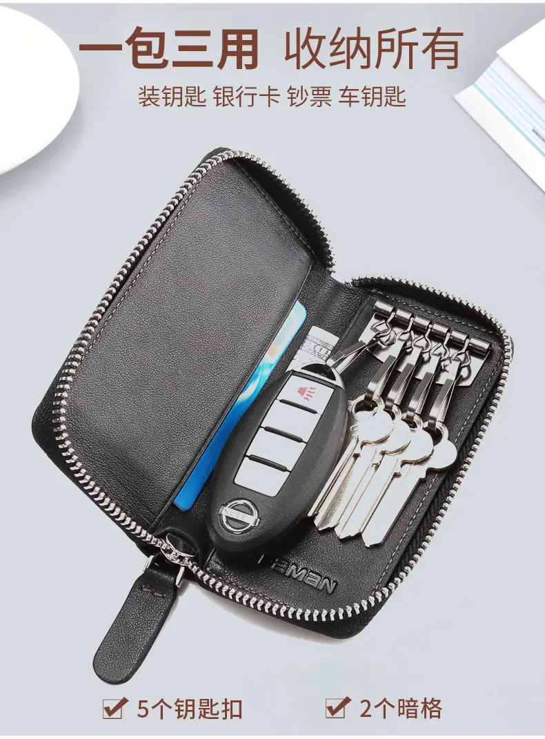 Bolsa para Llaves de Hombre de Cuero Genuino con Cremallera Bolsa para Llaves de Coche Vintage de Piel de Vaca Multifuncional de Gran Capacidad Bolsa para Llaves Monedero