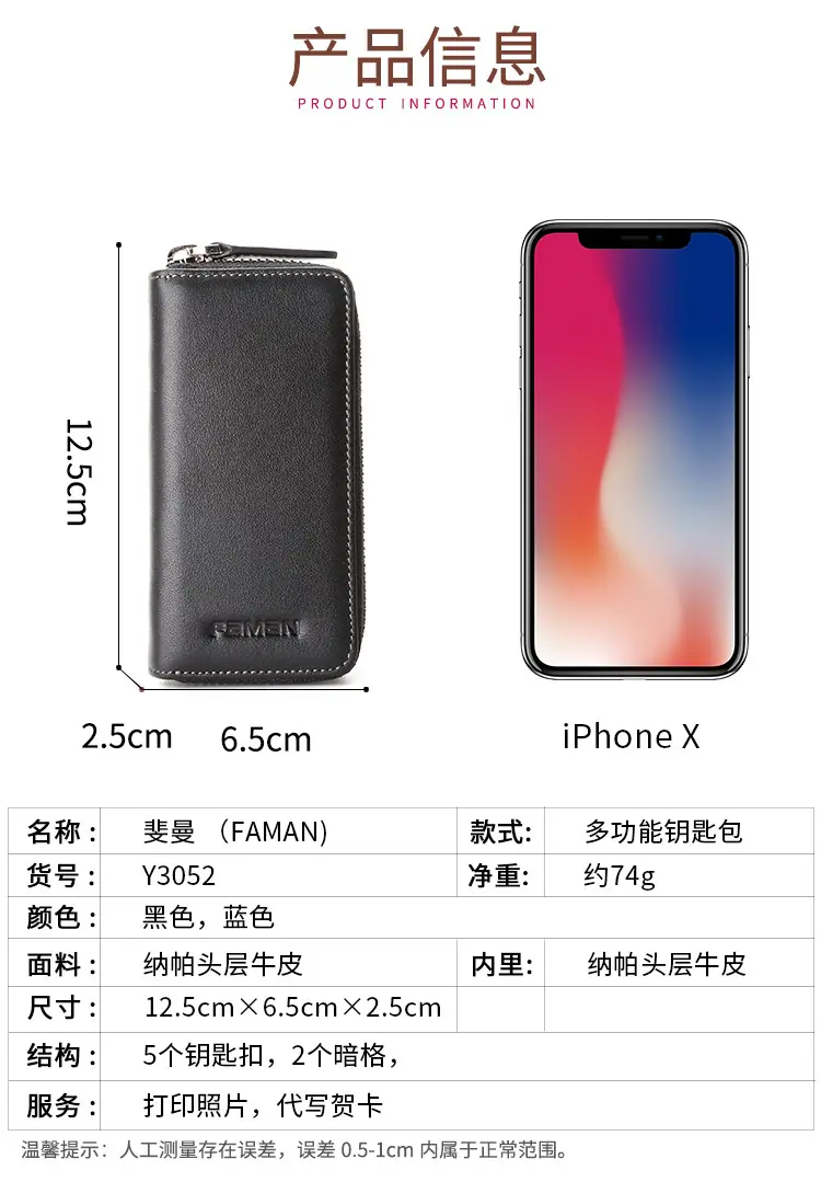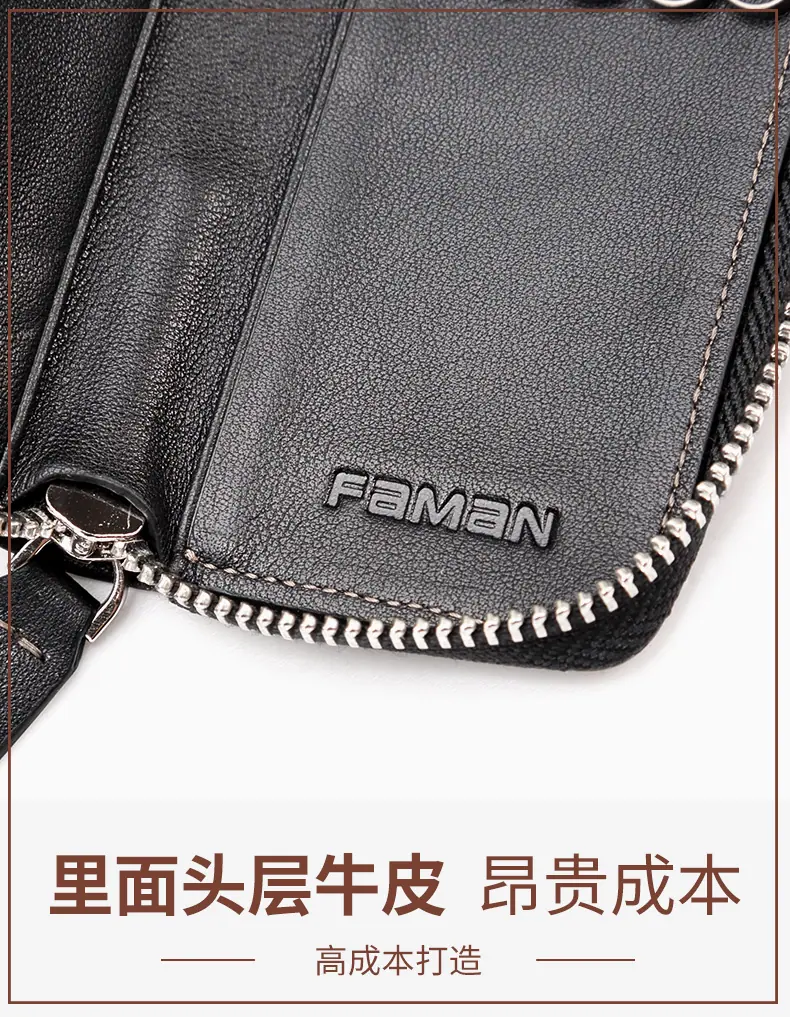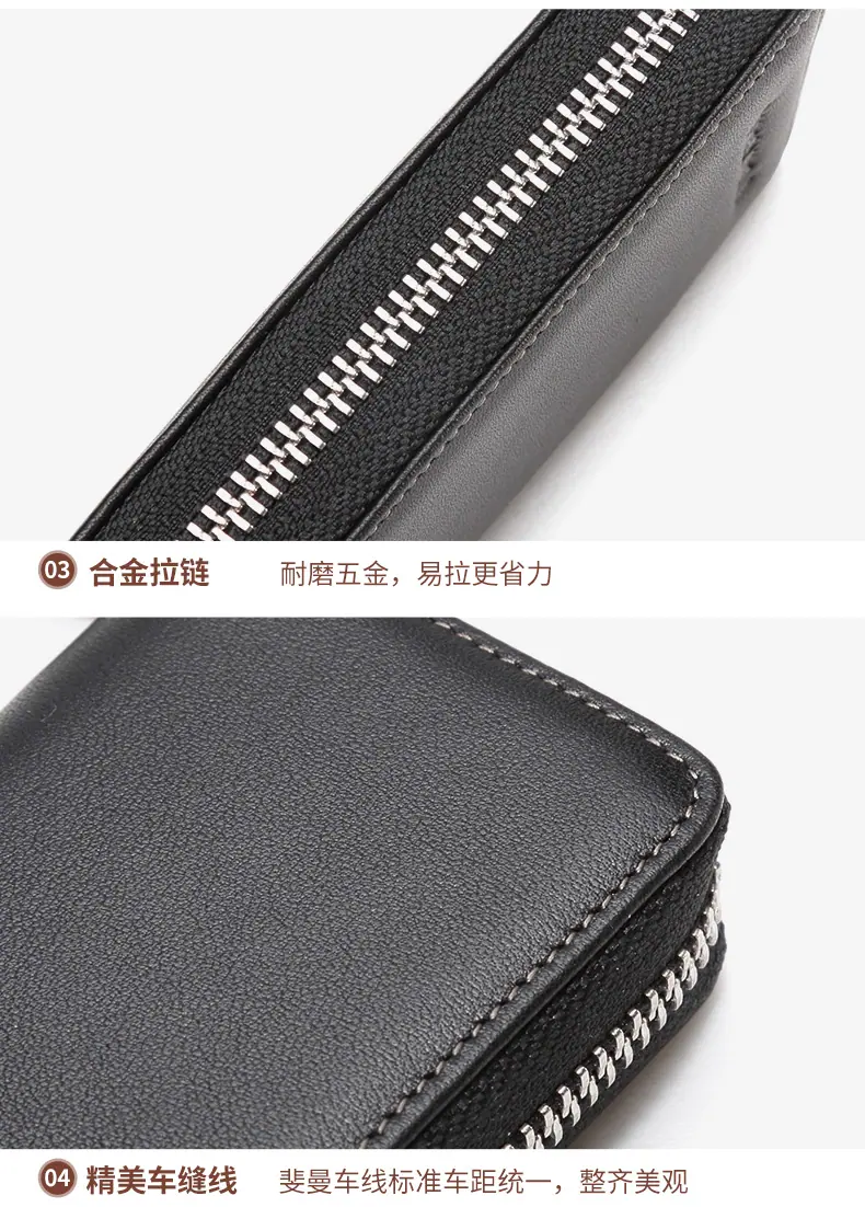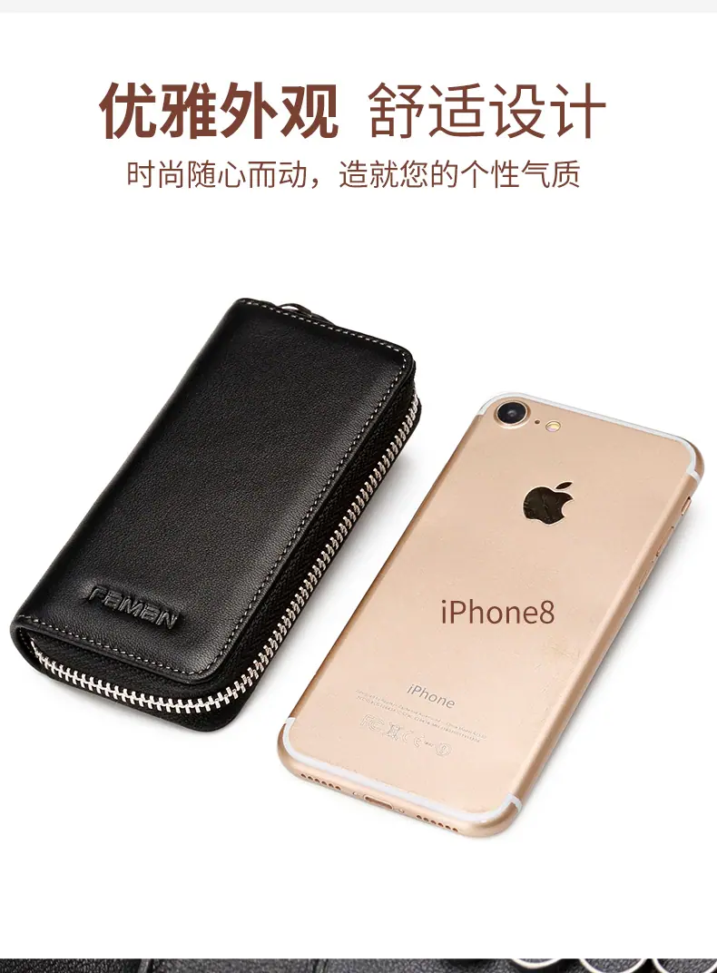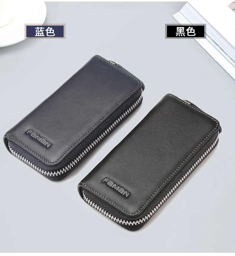 Bolsa para Llaves de Hombre de Cuero Genuino con Cremallera Bolsa para Llaves de Coche Vintage de Piel de Vaca Multifuncional de Gran Capacidad Bolsa para Llaves Monedero