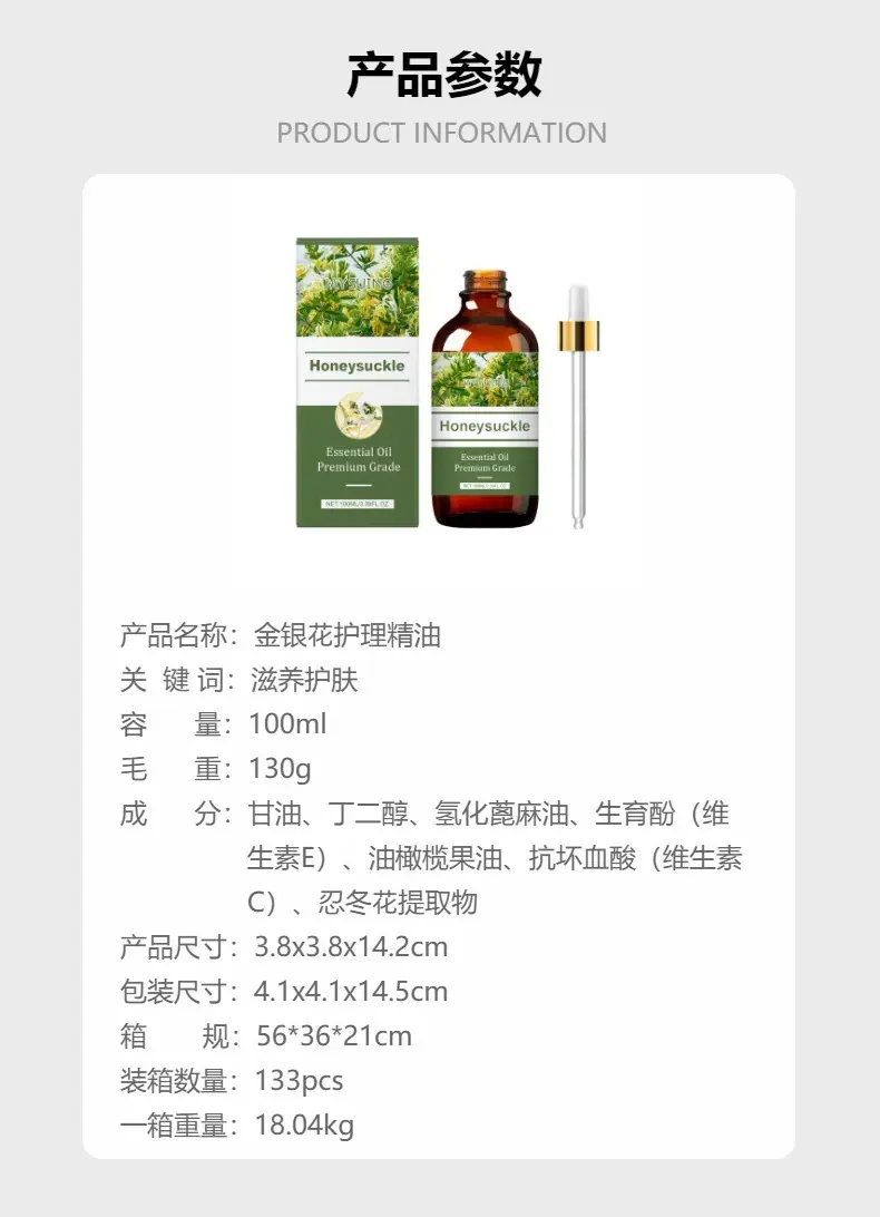 Jaysuing Aceite Esencial para el Cuidado de Madreselva Facial Nutritivo Hidratante Alisador de Cabello Cuidado Multifuncional Aceite Esencial Líquido