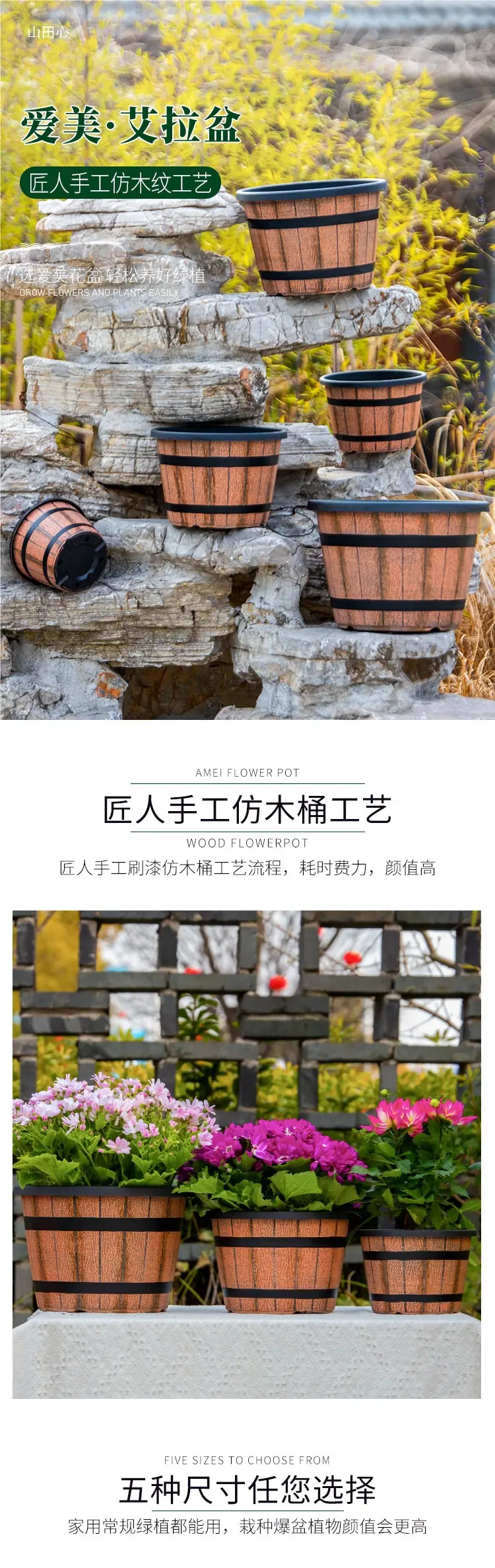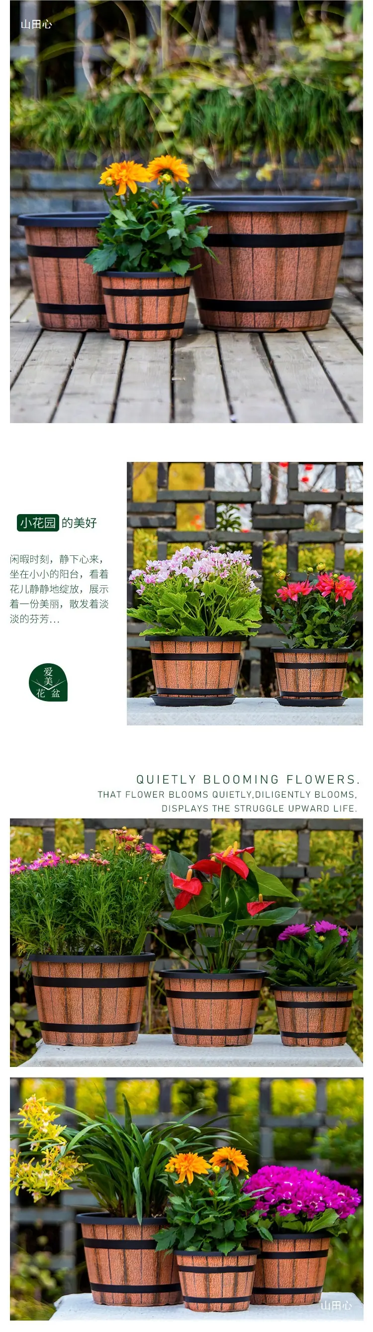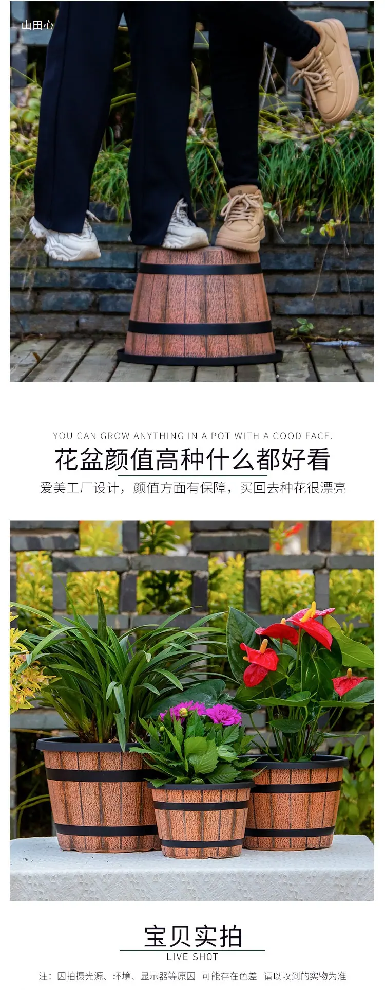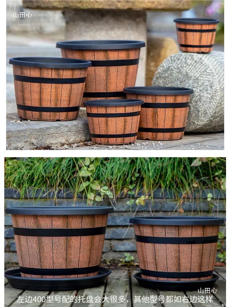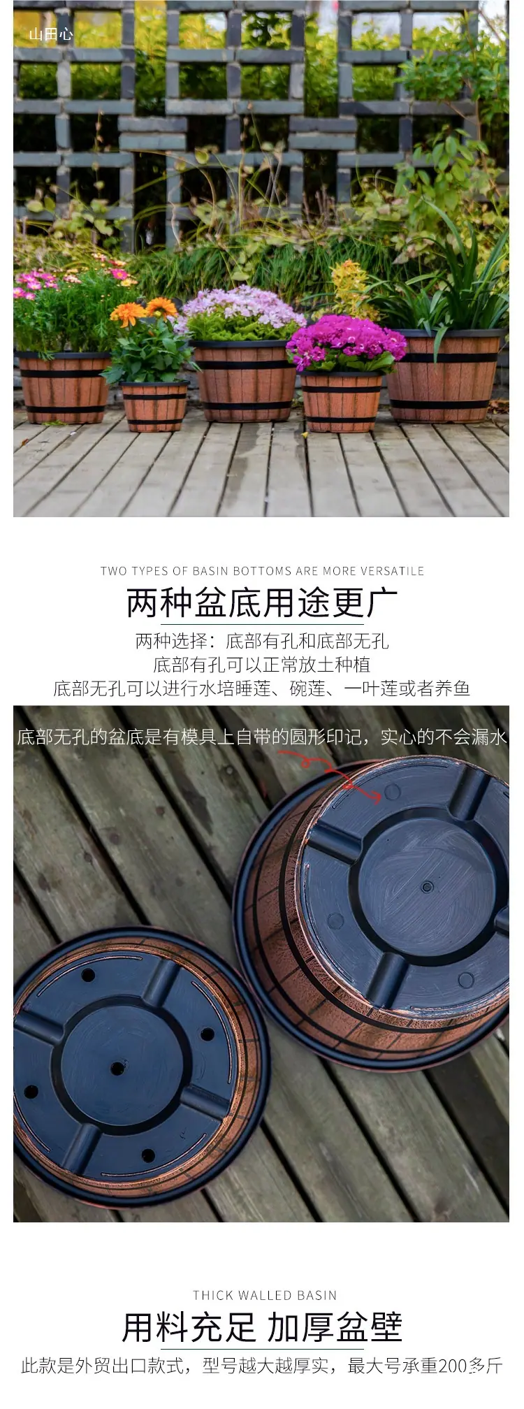 Maceta de Loto de Barril de Vino Extra Grande Engrosada Imitación Moneda de Cobre Maceta de Flores Cuenco de Hierba Lirio de Agua Barril de Madera Adecuado para Hidroponía Plástico