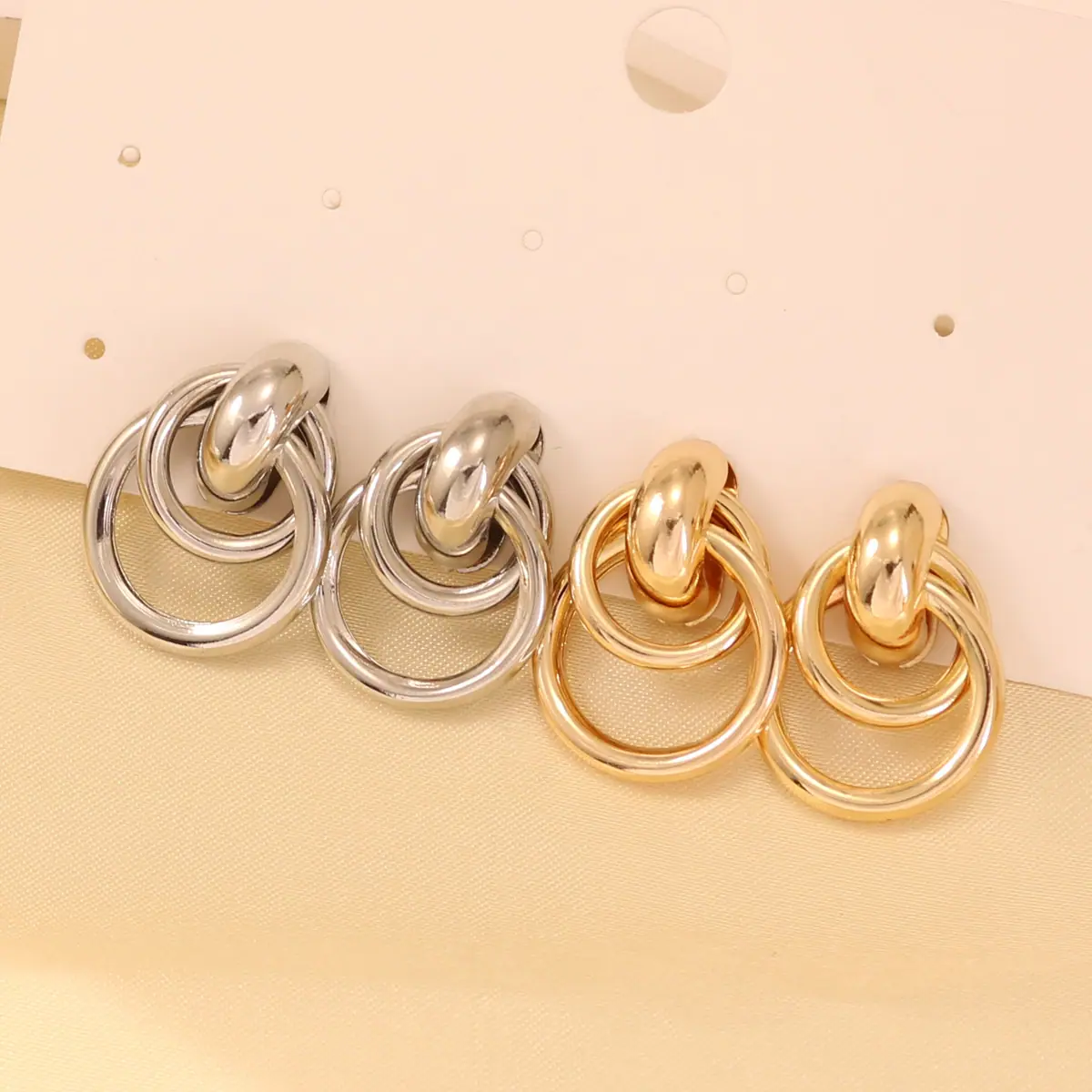 Moda de Comercio Exterior Europea y Americana Transfronteriza Aretes de Aro de Metal Aretes de Clip de Aro Redondo de Metal Aros para Mujer Venta al por Mayor Moda Geométrica