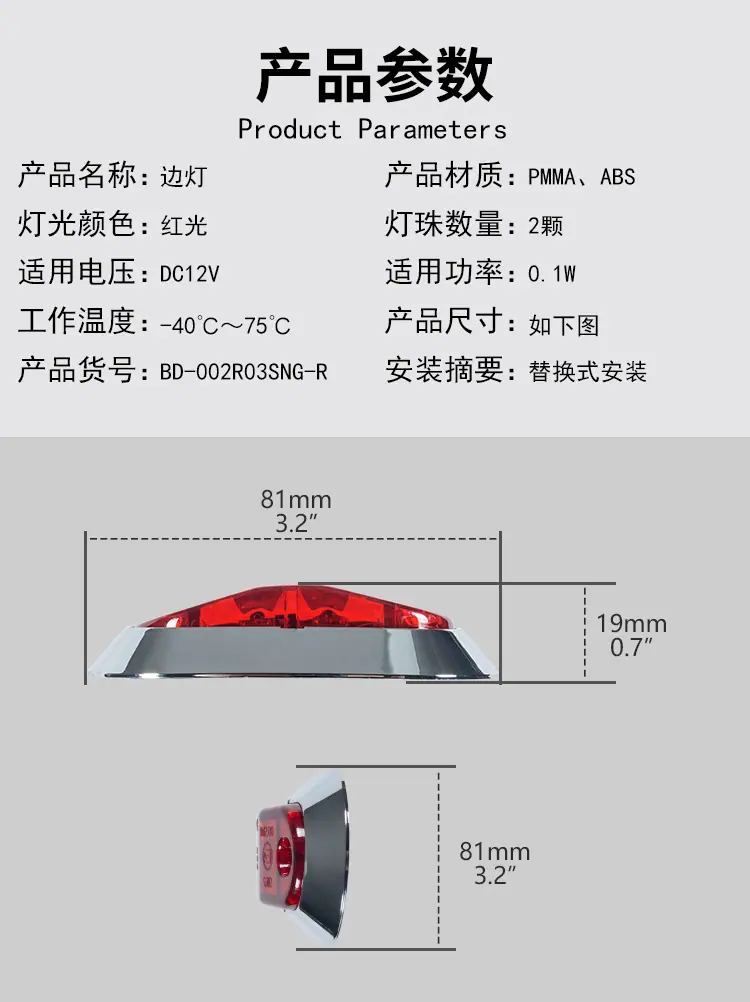 Suministro de fábrica 2 LED Luz Roja Luz Lateral de Camión Luz de Ancho de Camión Indicador Luz de Contorno de Camión