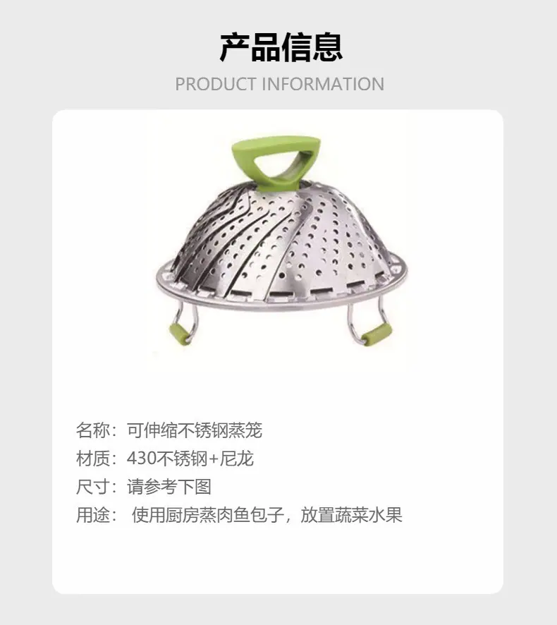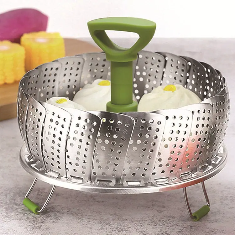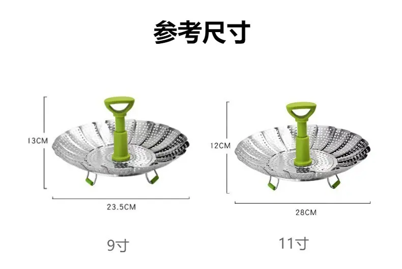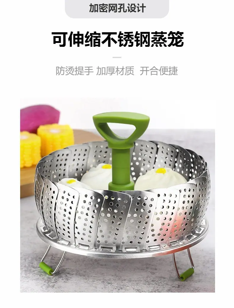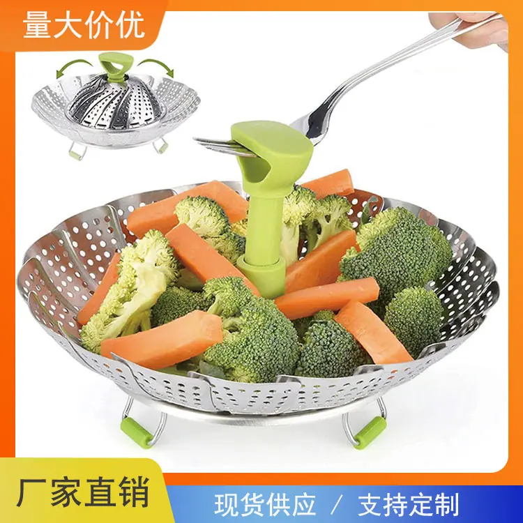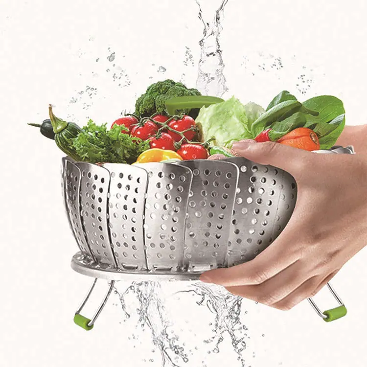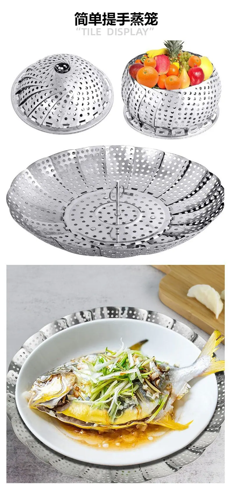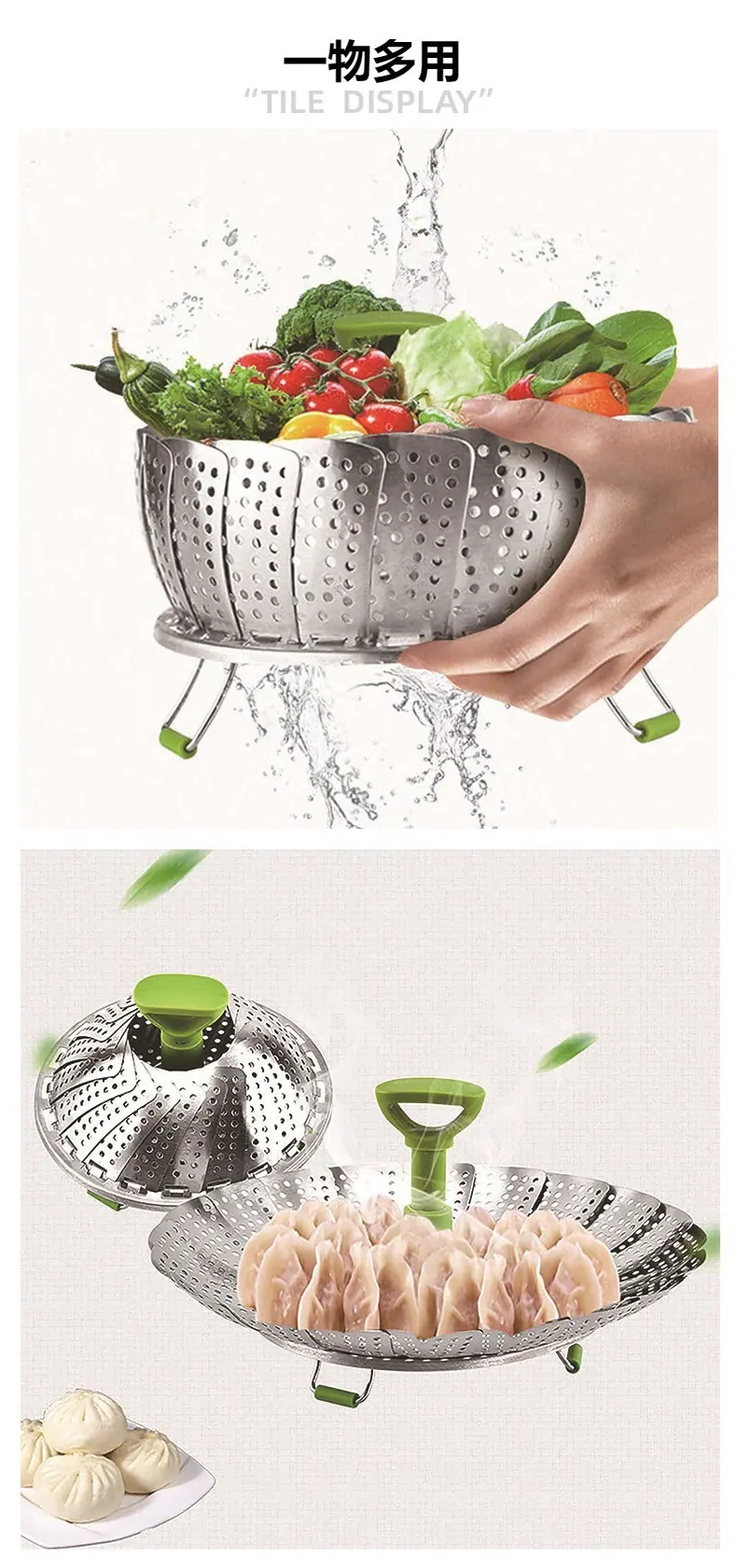 Herramientas de cocina, vaporera de acero inoxidable, bandeja de vapor, vaporera plegable retráctil, bandeja de drenaje para frutas y verduras