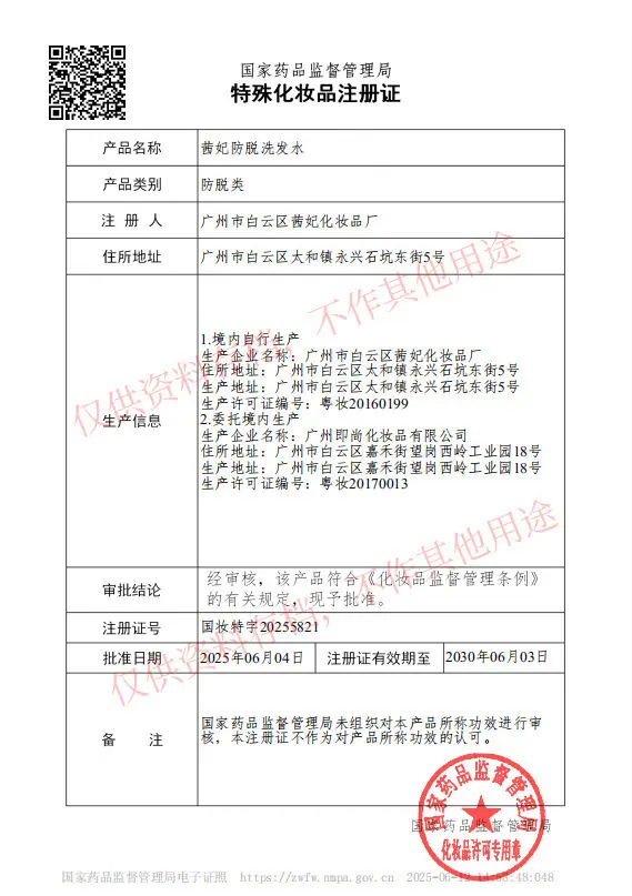 Certificado cosmético de propósito especial No.