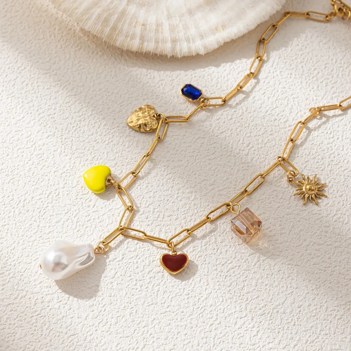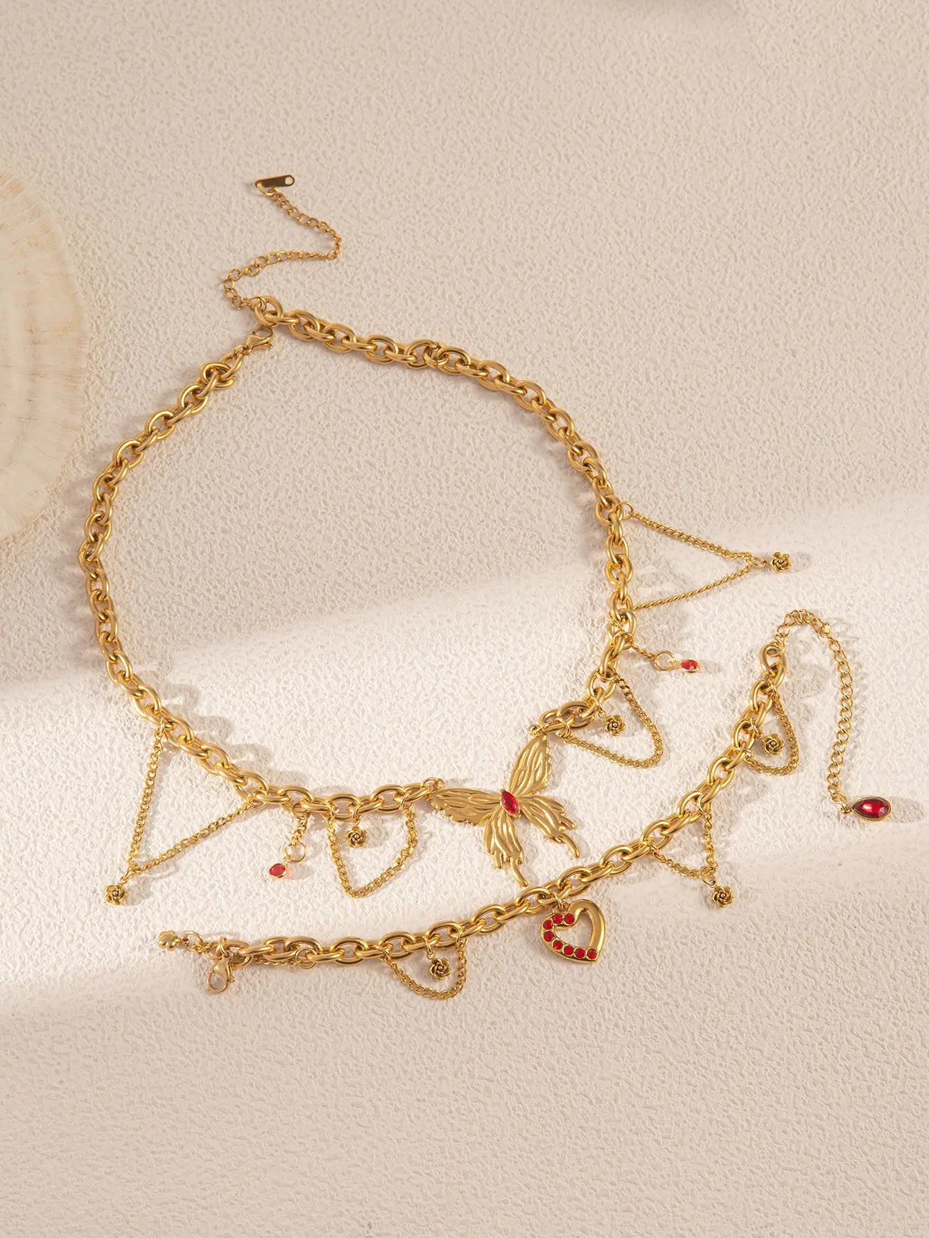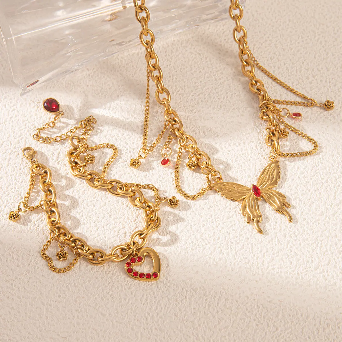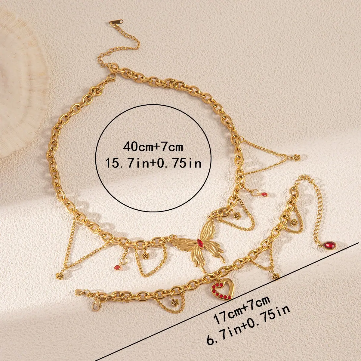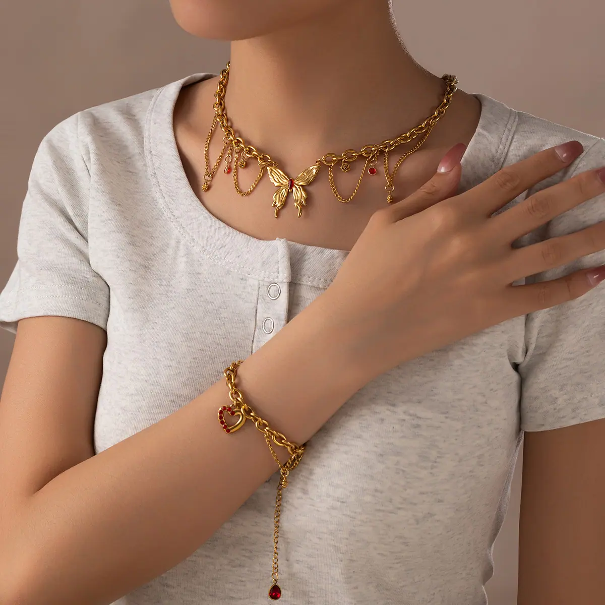 Collar de Mariposa de Acero Inoxidable con Oro de 18K para Mujer Europeo y Americano Transfronterizo Borla en Forma de Corazón Colgante de Acero de Titanio con Conservación de Color Joyería de Alta Gama