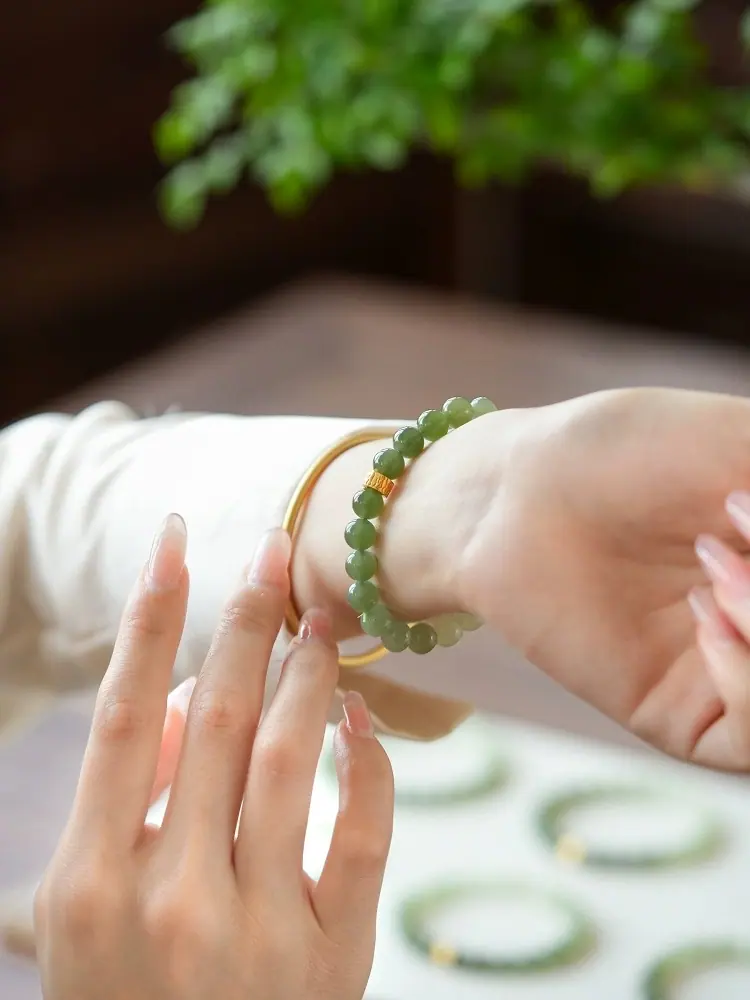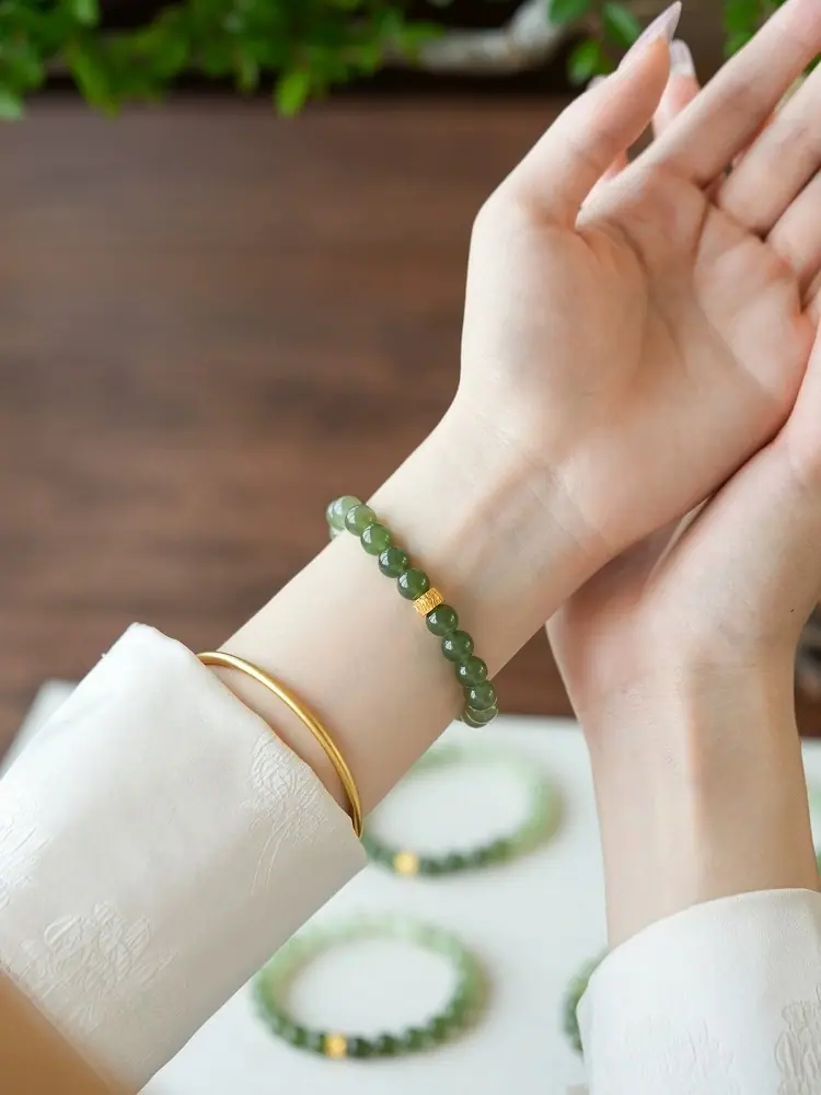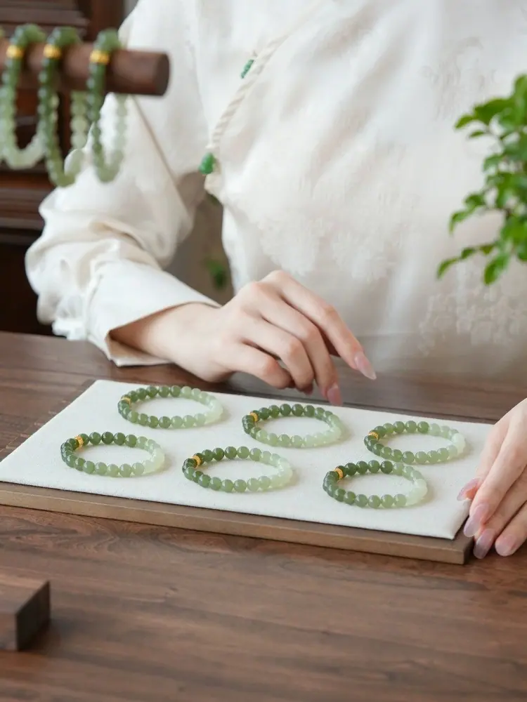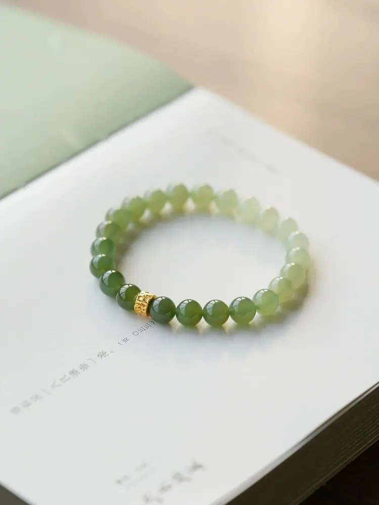 Hetian jade 6mm gradient bracelet, Hetian jade 8mm gradient bracelet