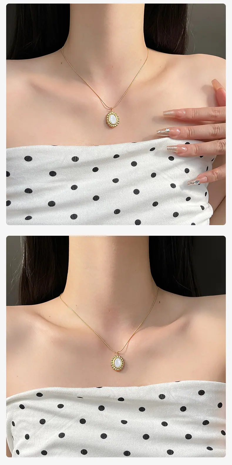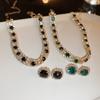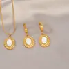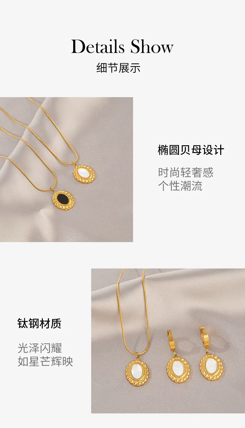 Collar Ovalado de Nácar de Moda de Alta Gama para Mujer Francés Trendy Celebridad de Internet Ins Simple Temperamento Set de Aretes Cadena Clavicular