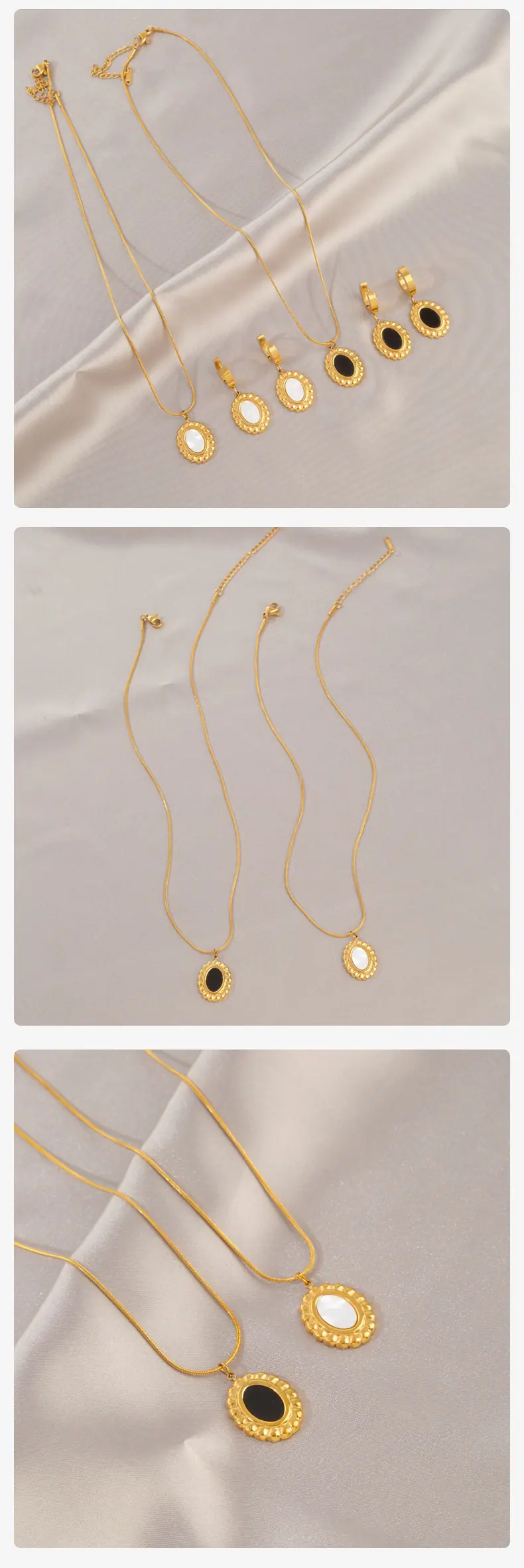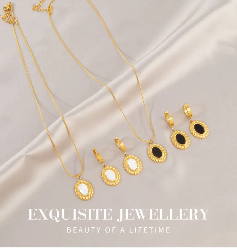 White Mother-of-Pearl Oval Earrings, Black oval earrings, White Mother-of-Pearl Oval Necklace, Black Oval Necklace