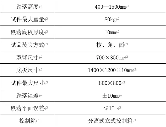 Cumple con estándares nacionales como GB4757.5-84, JISZ0202-87, ISO2248-1972(E), etc. Se utiliza principalmente para evaluar el grado de impacto de las caídas en artículos embalados durante el transporte y la manipulación reales, y para evaluar la resistencia al impacto de los artículos embalados y la racionalidad del diseño del embalaje durante la manipulación.