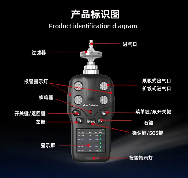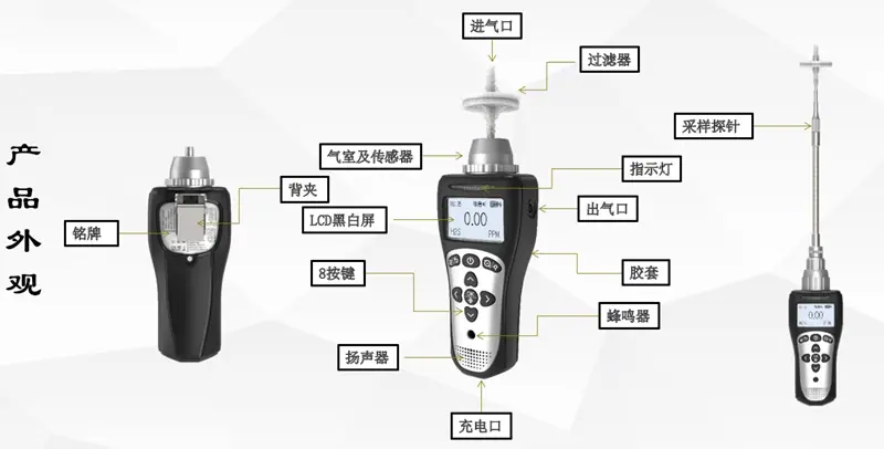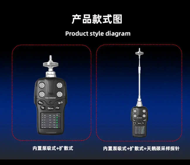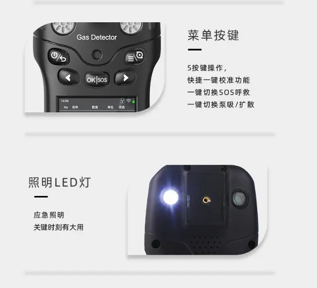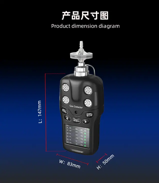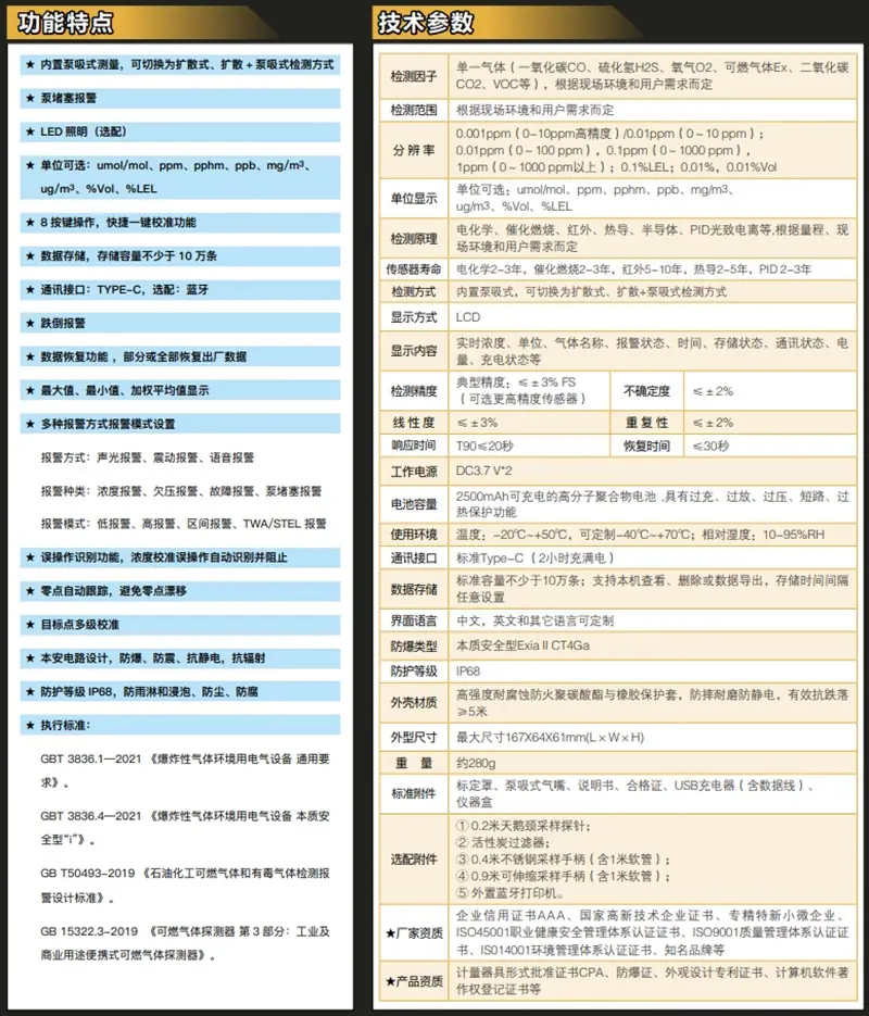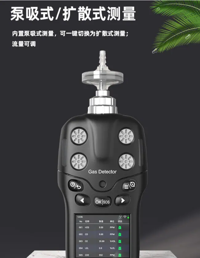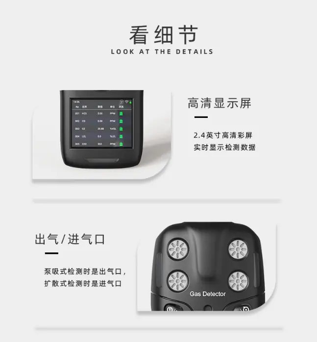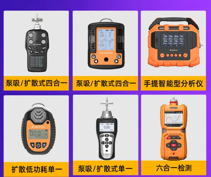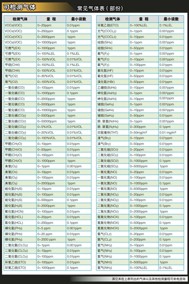 Single gas (carbon monoxide CO, hydrogen sulfide H2S, oxygen O2, combustible gas Ex, carbon dioxide CO2, VOC, etc.)