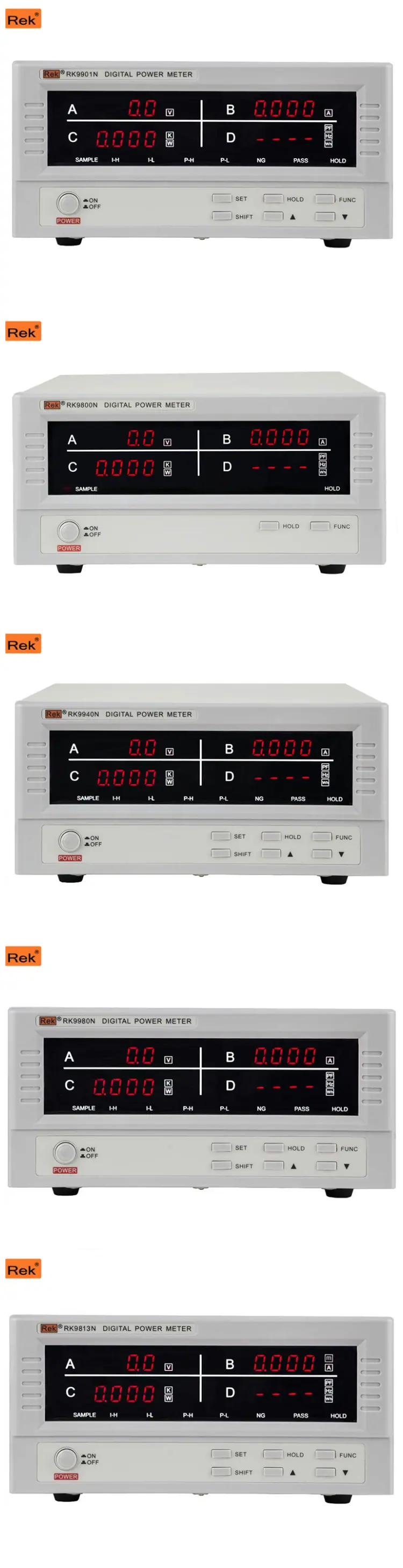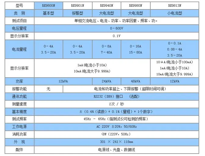 El instrumento inteligente de medición de potencia de la serie RK9800N (medidor de potencia digital), puede medir simultáneamente el voltaje, la corriente, la potencia, el factor de potencia, la frecuencia, la energía, los armónicos y otros parámetros, etc., de equipos de consumo de energía monofásicos y trifásicos, con un rico contenido de medición, amplio rango, alarma preestablecida, retención y funciones de comunicación. Ampliamente utilizado en motores, electrodomésticos, herramientas eléctricas, bombas de agua, transformadores, fuentes de alimentación, iluminación, energía eléctrica y otros campos.